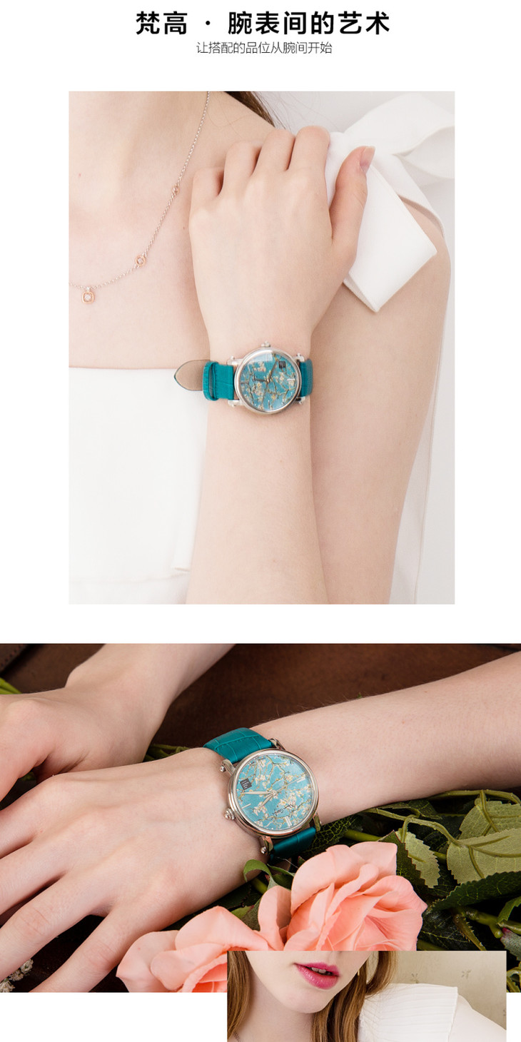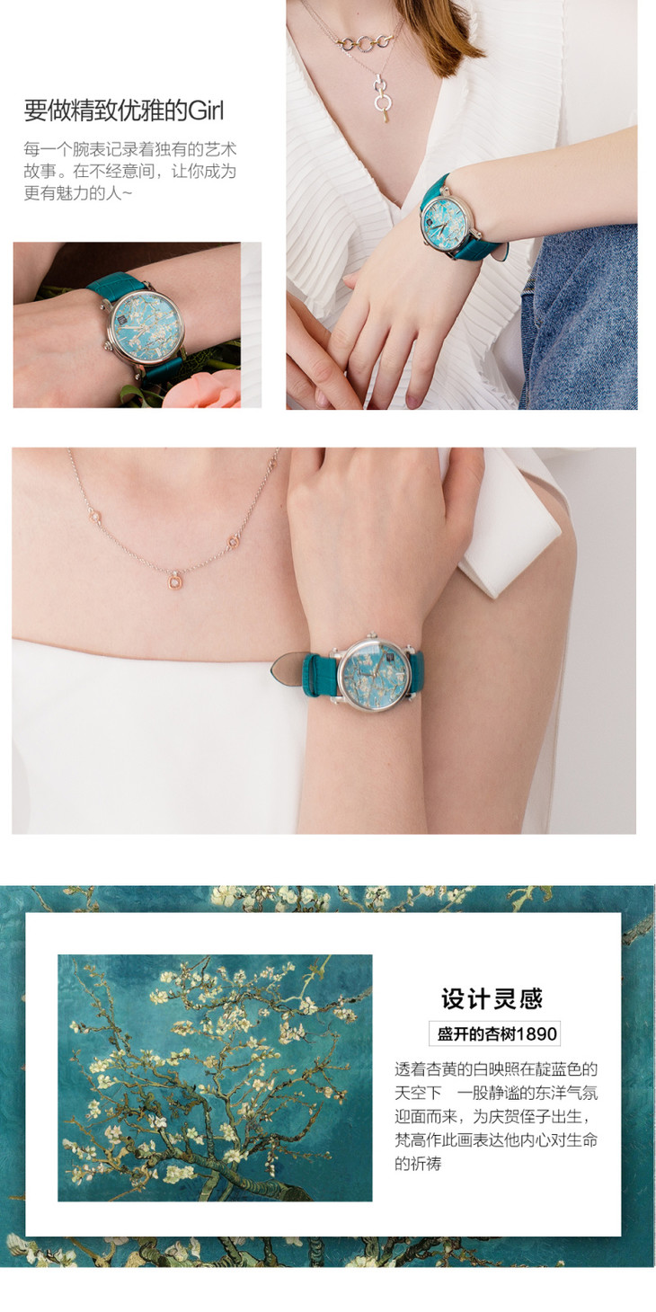 梵高(VanGogh)瑞士女士石英手表 3D打印油画表面个性网红潮牌博物馆正版原装进口女表 盛开的杏树Lady 09-M