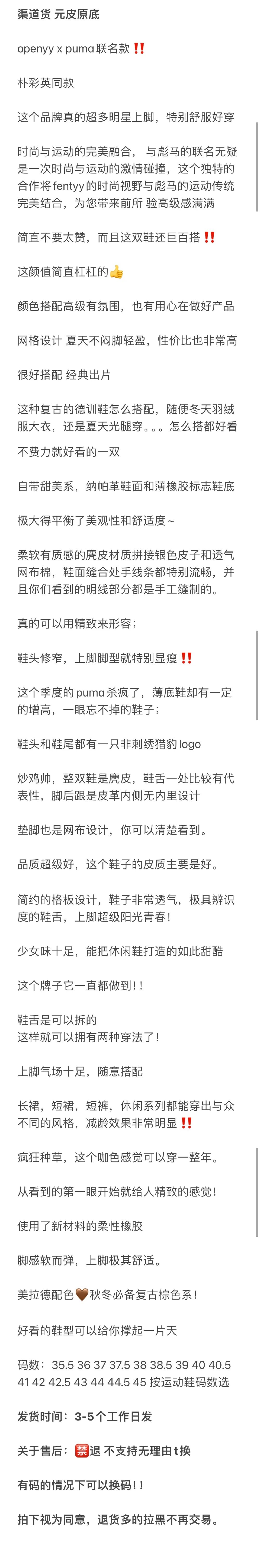 重磅推荐 puma联名款德训 openyy合作款 美拉德运动鞋