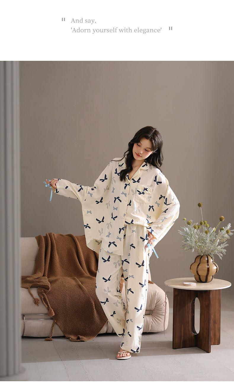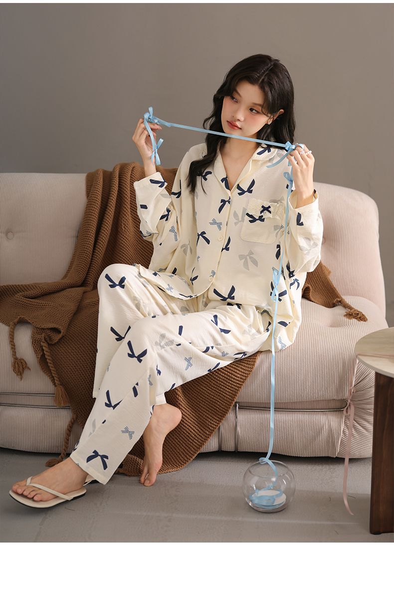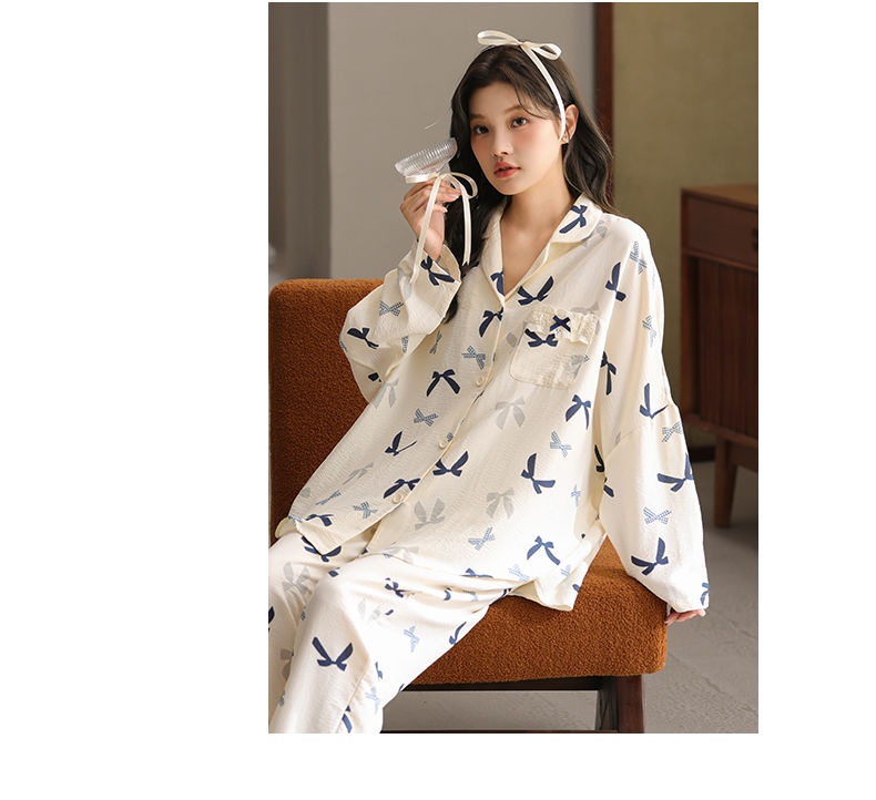 可人儿新款纯棉睡衣女士春秋季长袖时尚开衫开衫可外出家居服套装