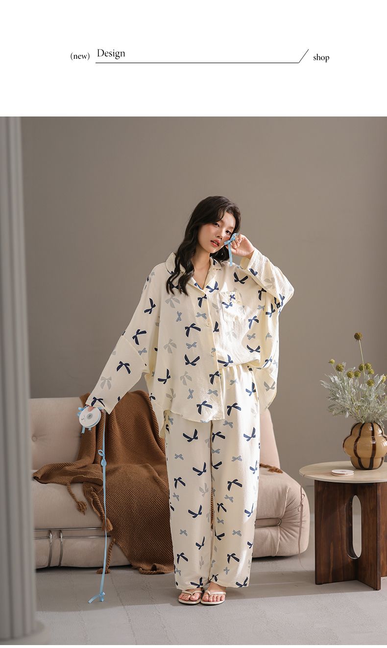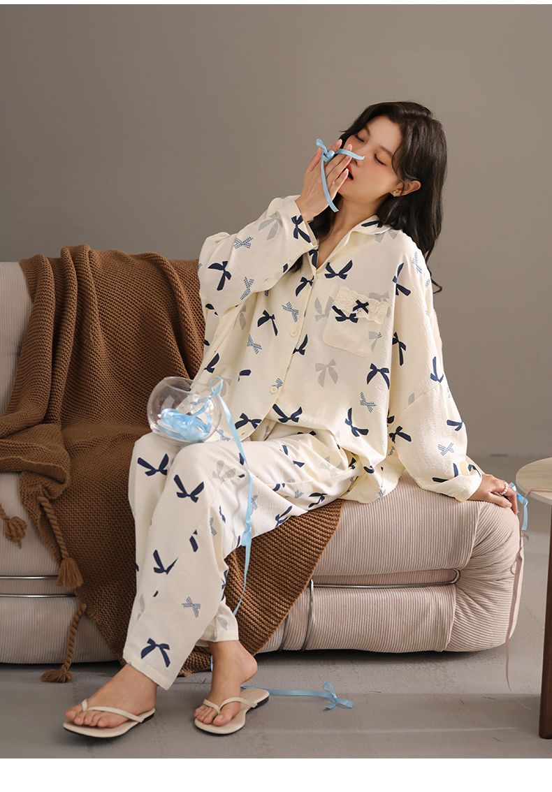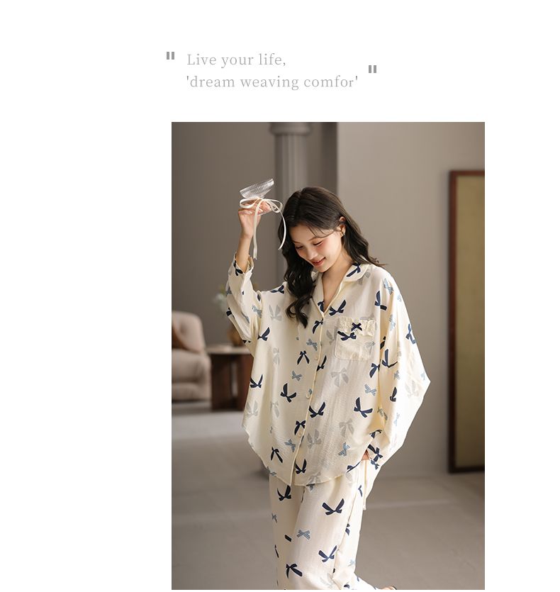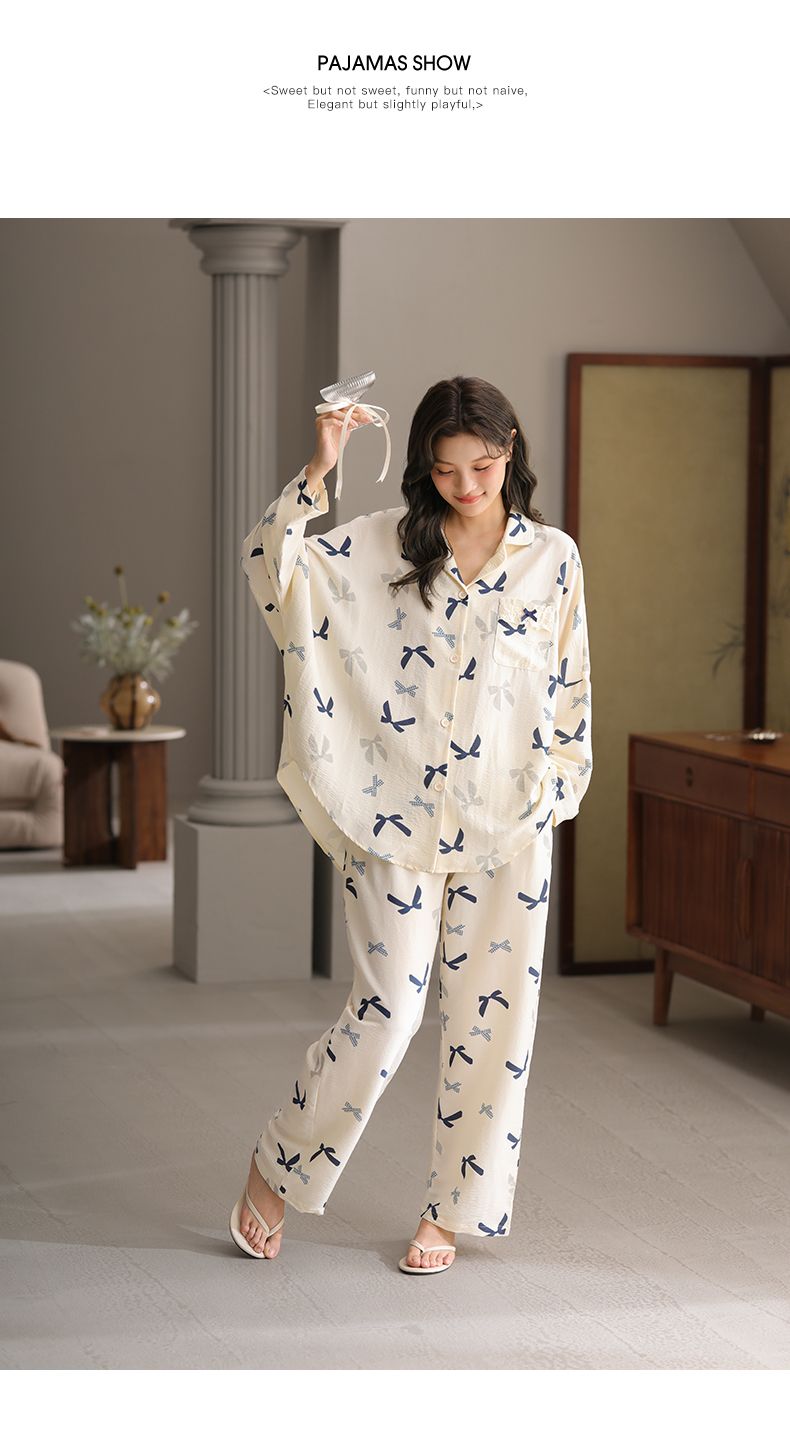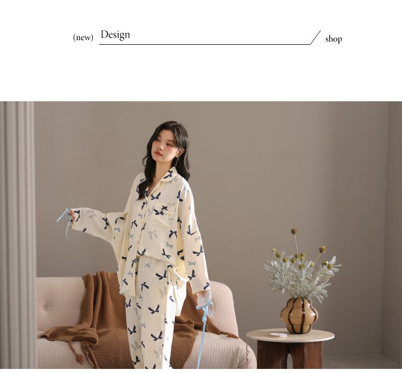 可人儿小众设计师新款奥力绵女士睡衣春秋长袖时尚可外出家居服