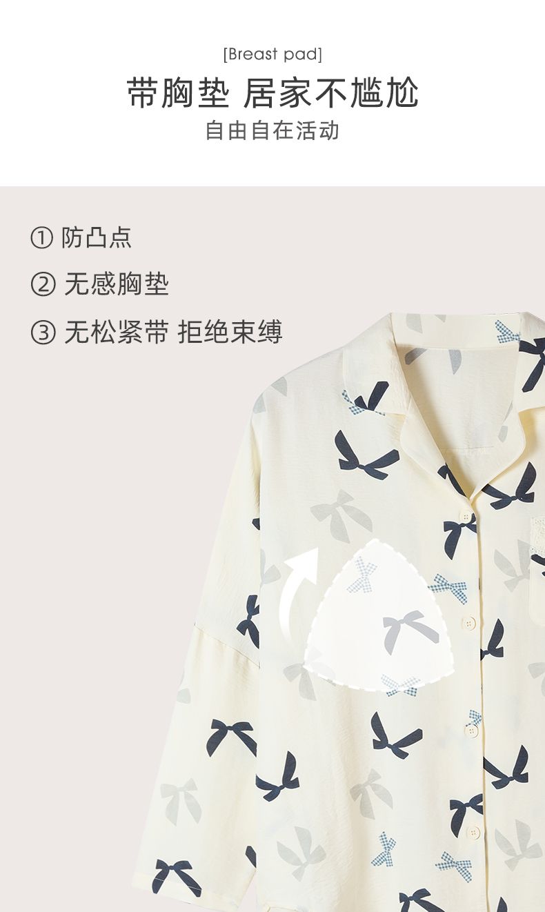 可人儿春秋季带bra泡泡绵女士长袖长裤睡衣可外出小众家居服套装