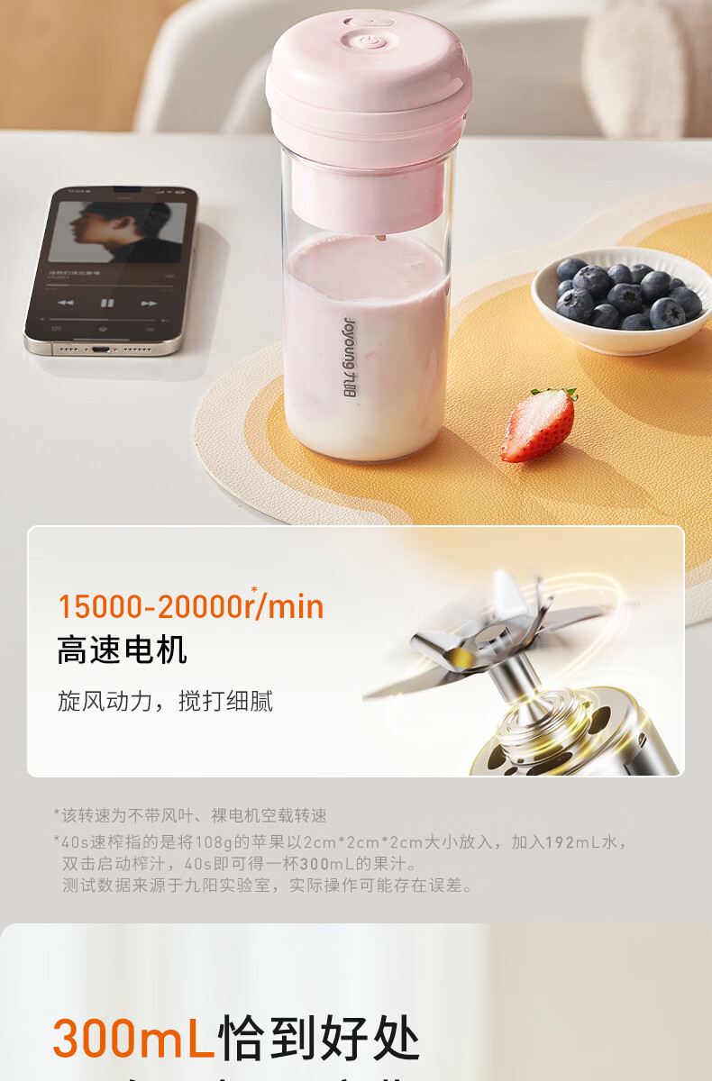九阳便携榨汁机300ml L3-C61(新老包装随机发货哦~)【分仓直发,72小时发货,周末节假日不发货】