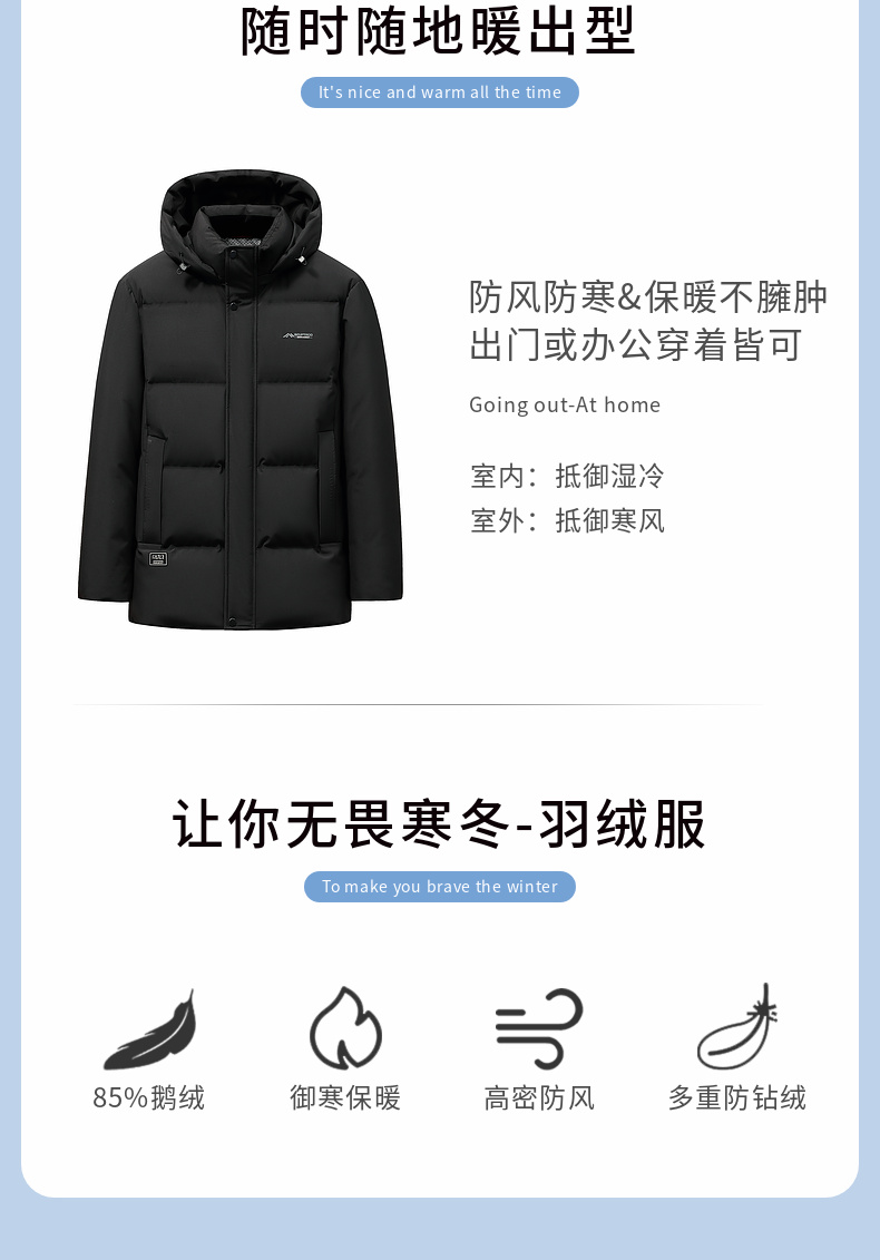 【含鸭绒】圣得西男士保暖加厚羽绒服2025秋新款可拆卸防风男外套