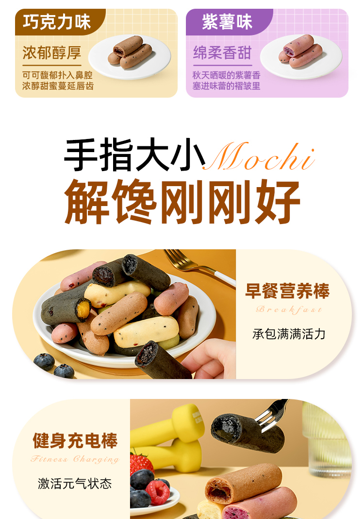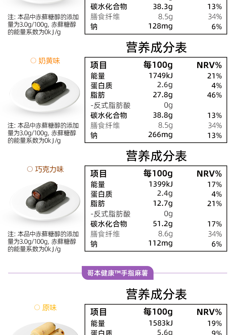 【退酮过渡】【生酮不可】【短保产品不支持无理由退货】哥本™黑金流心手指麻薯(黑芝麻味/巧克力味/奶黄味)100g 哥本健康™手指麻薯(原味/抹茶味/巧克力味/紫薯味)50克/袋