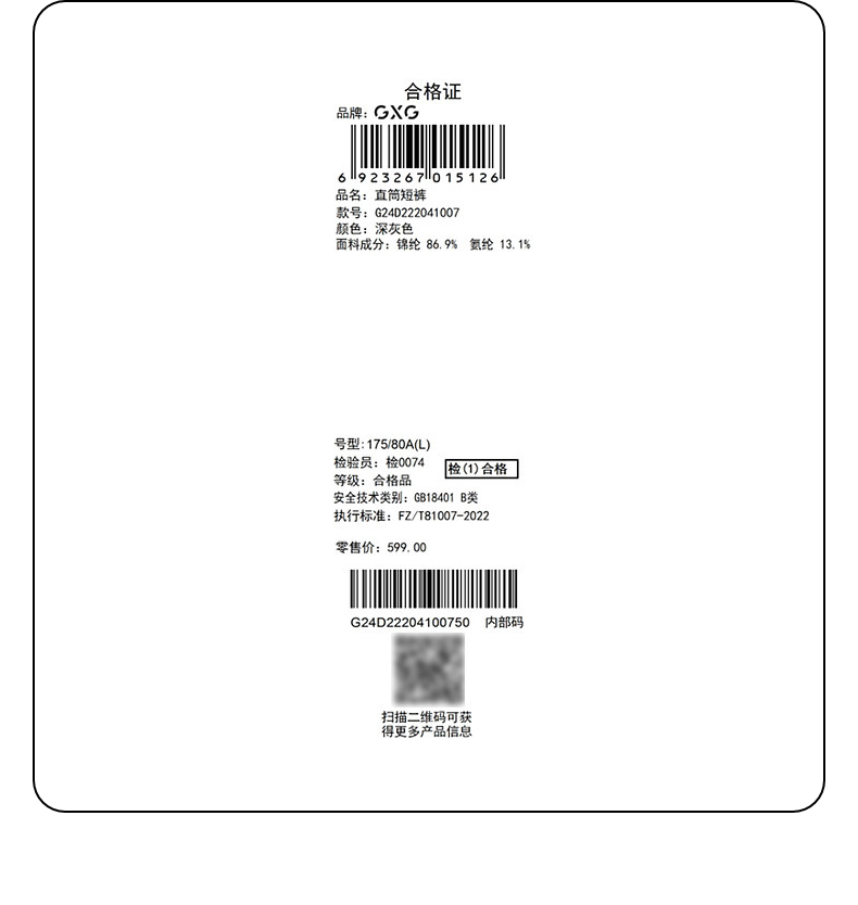 GXG夏季简约男式休闲直筒五分裤短裤男