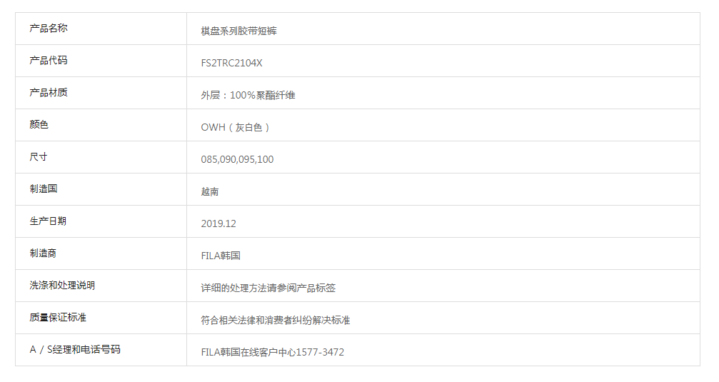 韩国F家斐乐韩国棋盘系列胶带短裤FS2TRC2104X_OWHJPY带授权招加盟代理