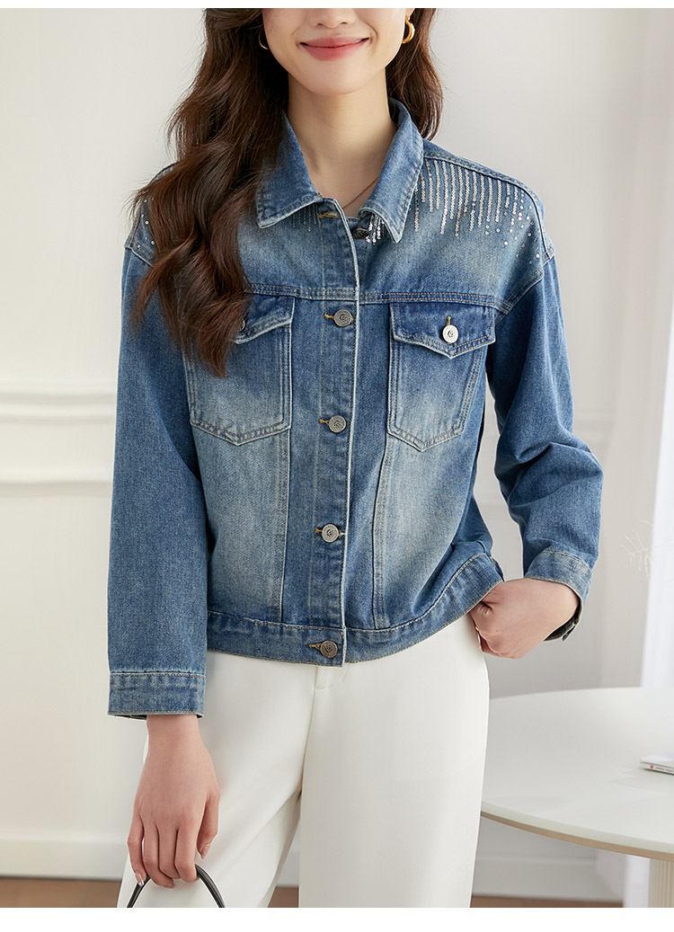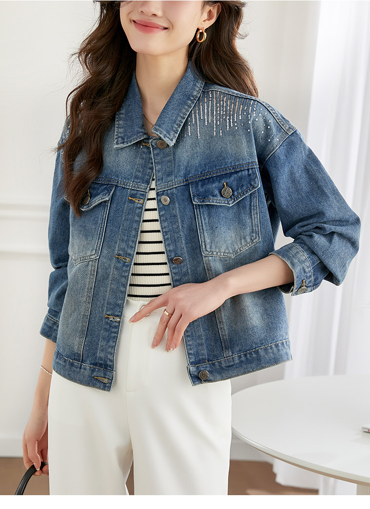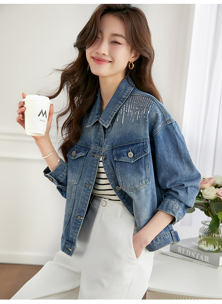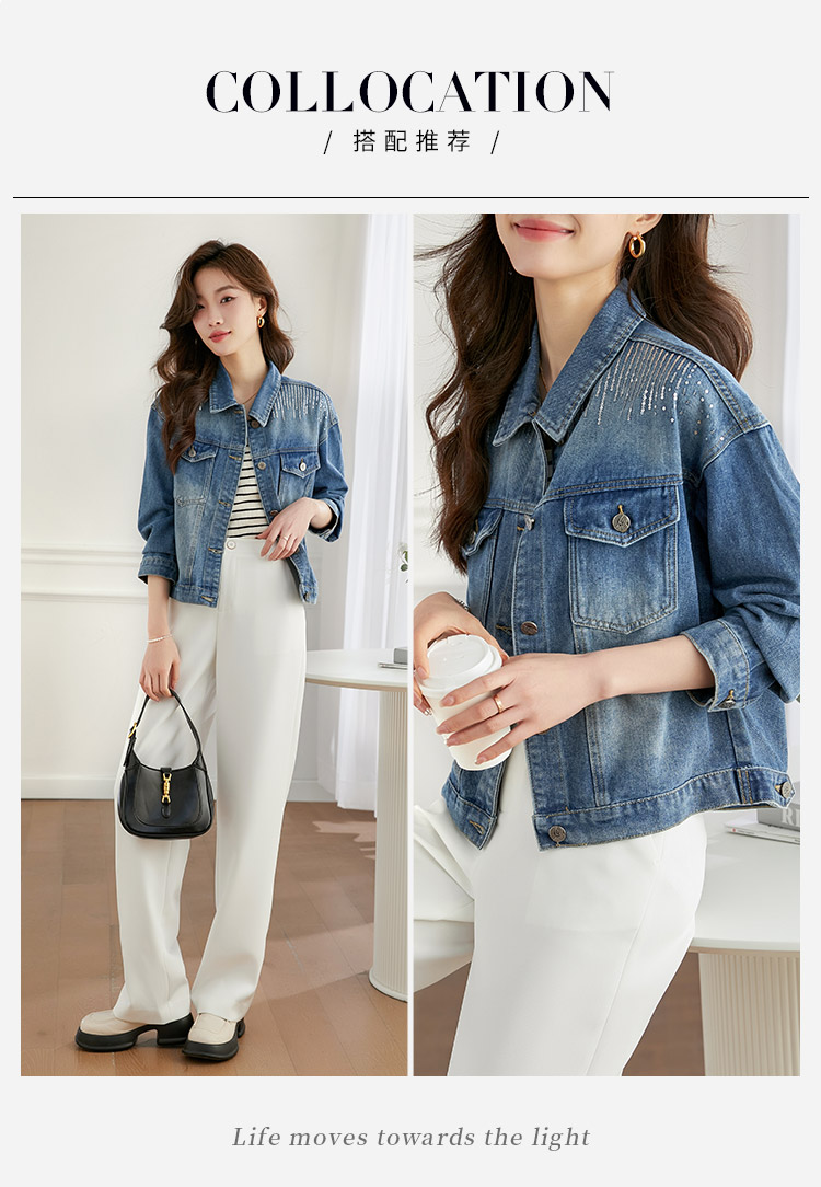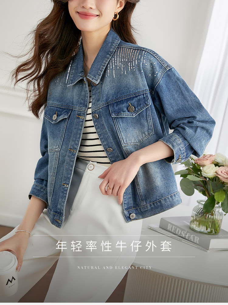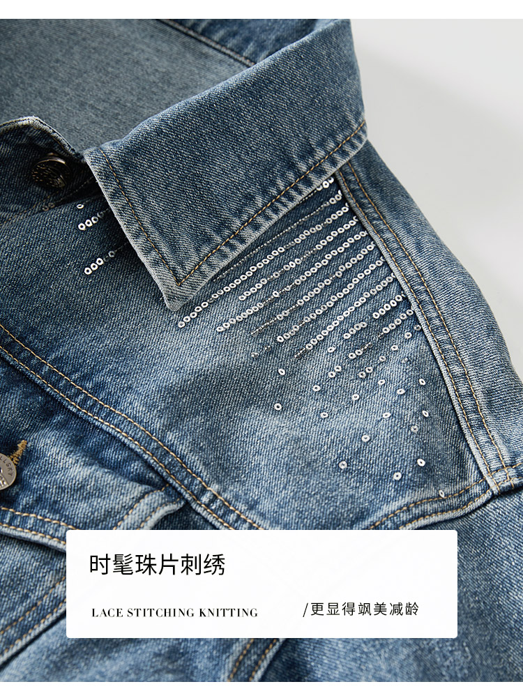 【熙世界】熙世界牛仔外套女ins潮2024春秋款珠片刺绣休闲复古bf风夹克上衣