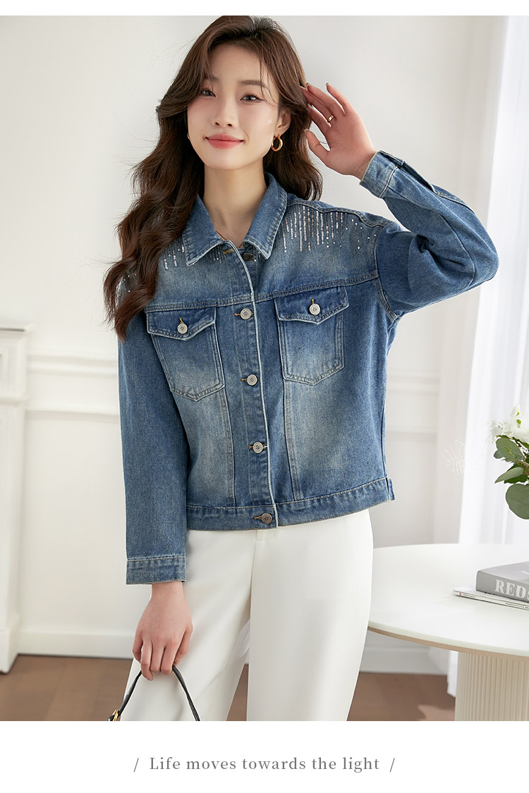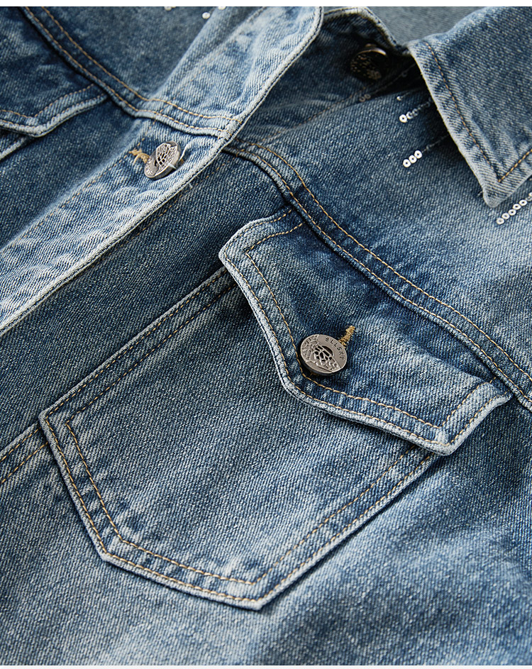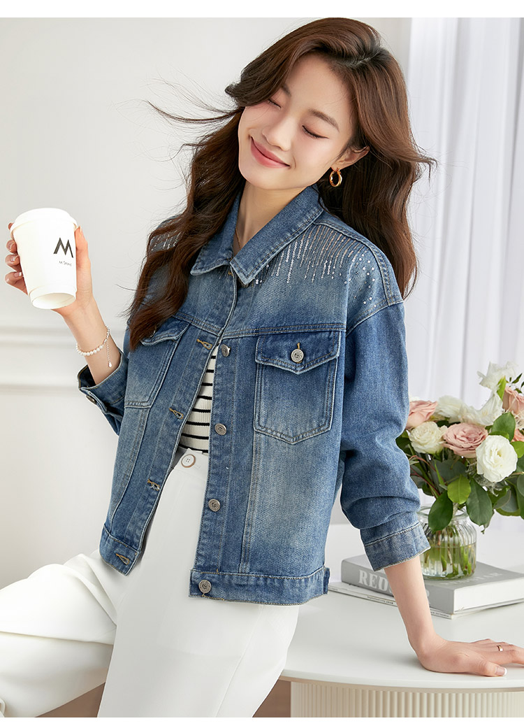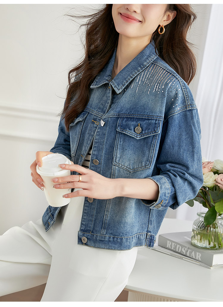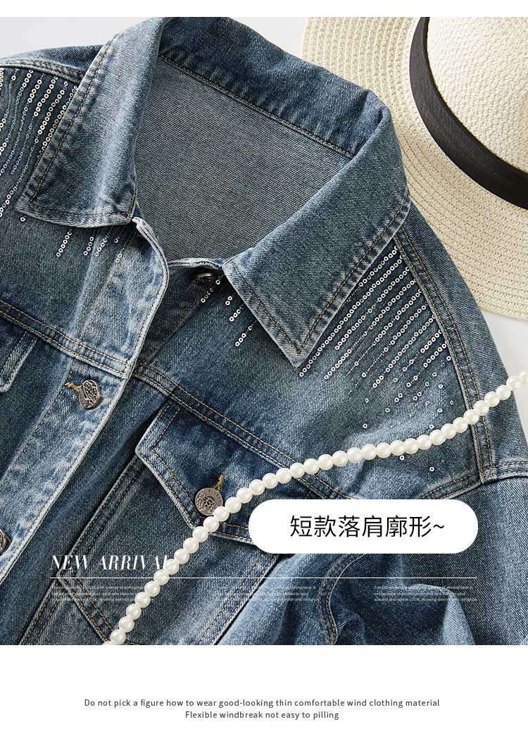 【熙世界】熙世界牛仔外套女ins潮2024春秋款珠片刺绣休闲复古bf风夹克上衣