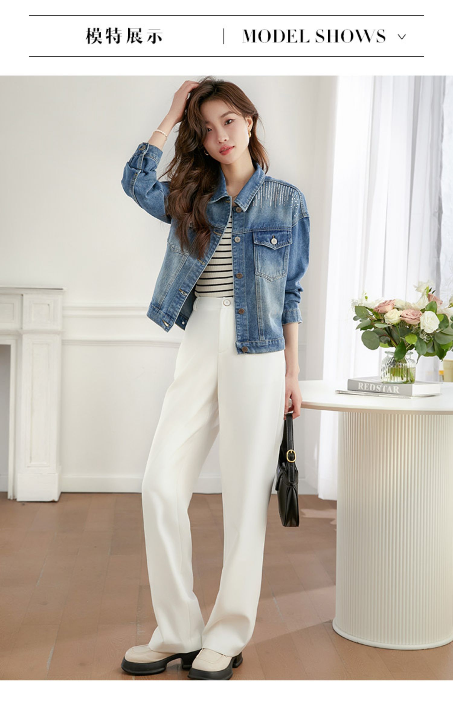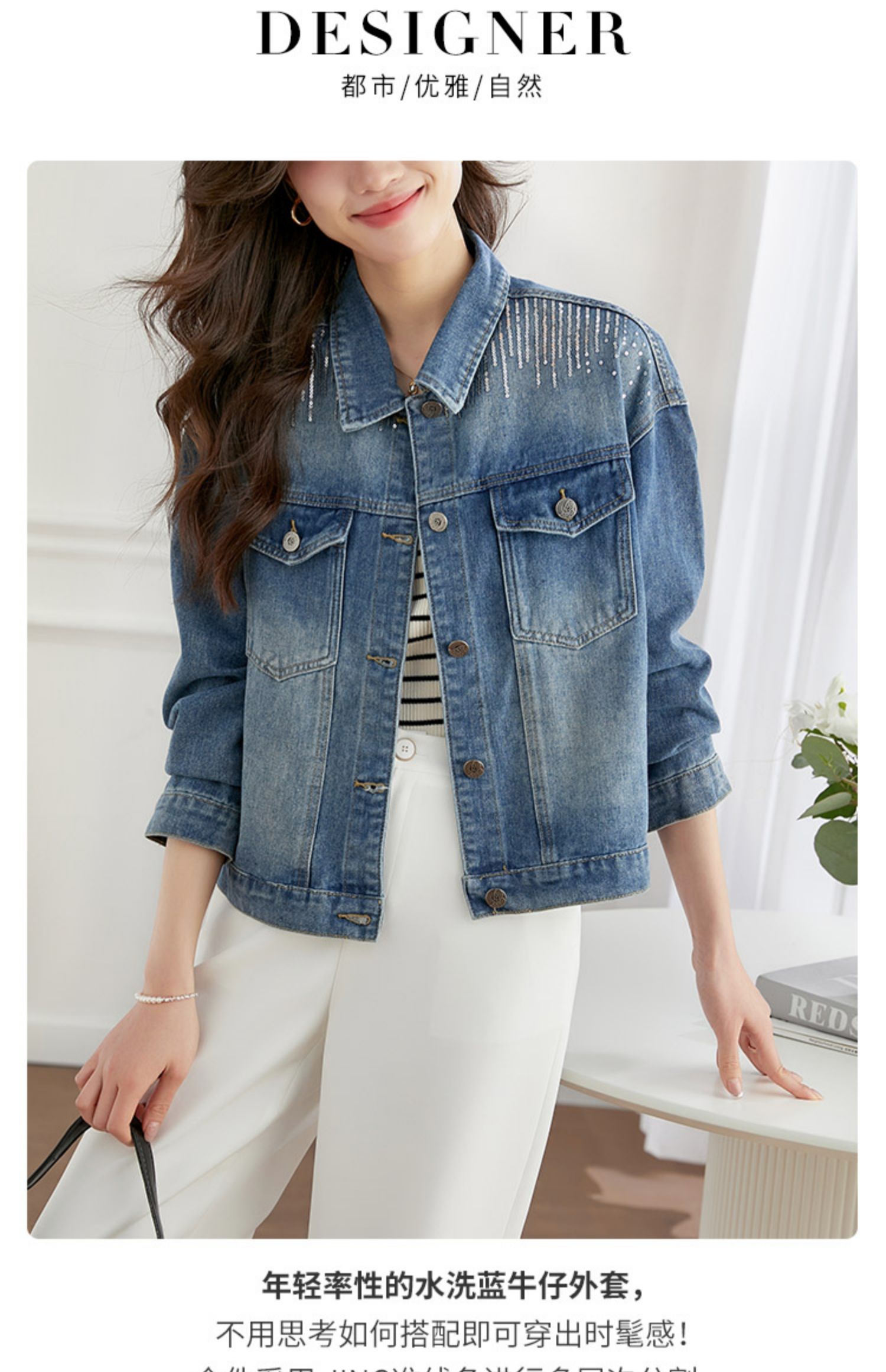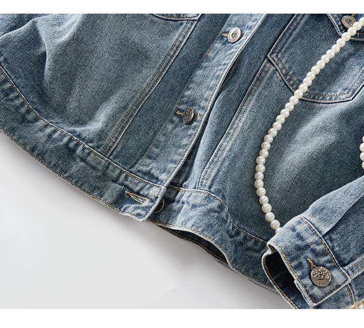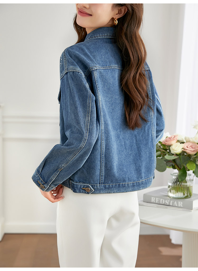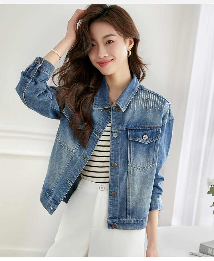【熙世界】熙世界牛仔外套女ins潮2024春秋款珠片刺绣休闲复古bf风夹克上衣