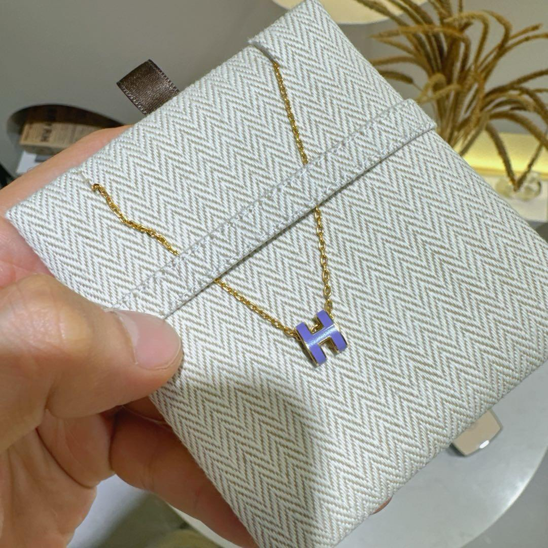 【商品詳情】正品二手 爱马仕 pop H 丁香紫 mini 珐琅 金色 项链🍬 98新 周长38cm 配件:盒子 防尘袋 袋子。专柜成色 整体嘎嘎新