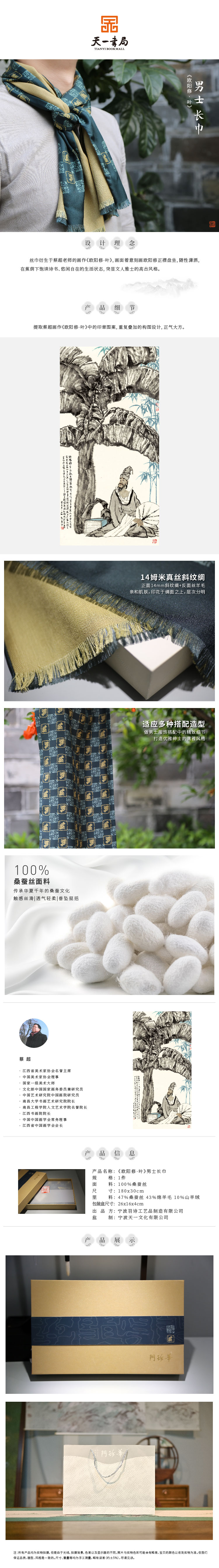 羽诗制造出品 蔡超衍生真丝桑蚕丝橄榄绿印章男士长巾礼盒套装