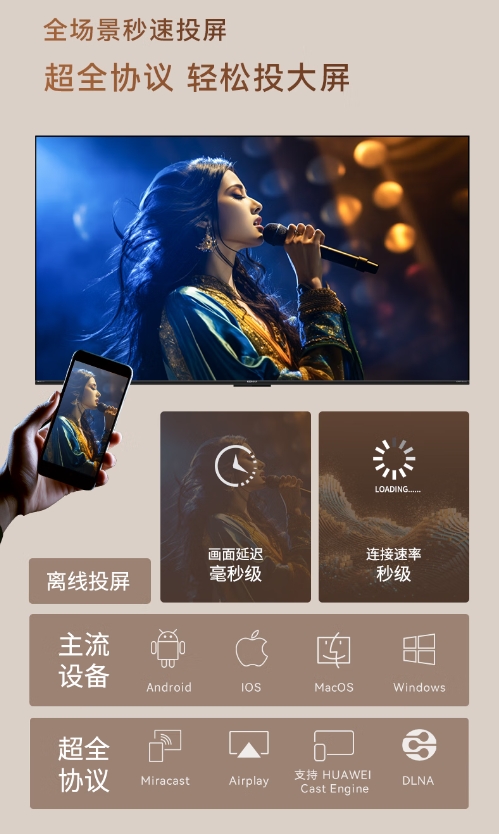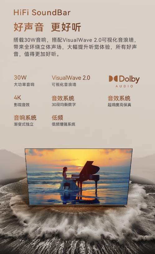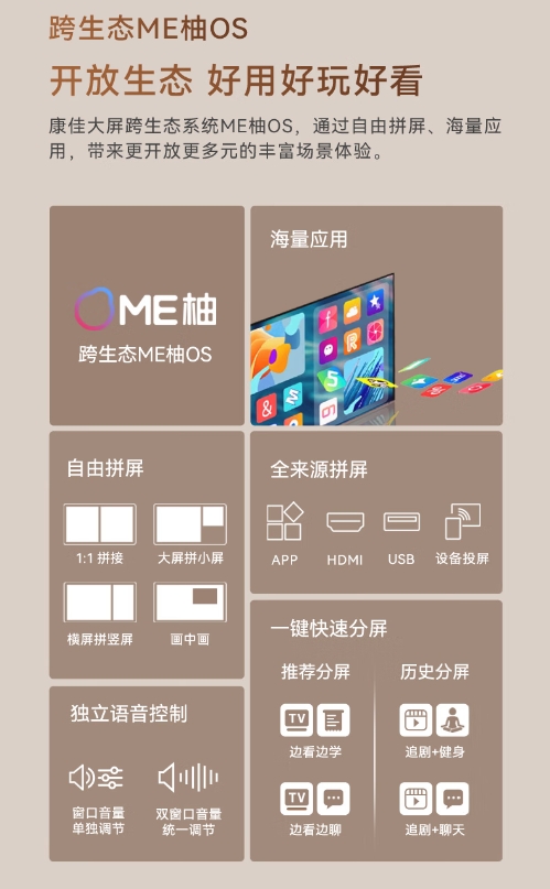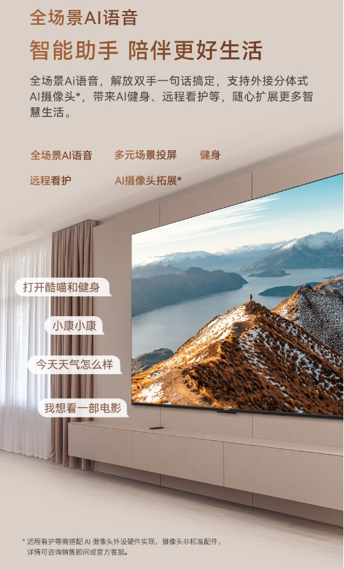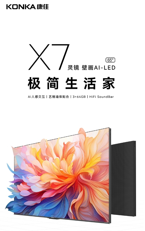康佳电视 S+定制 65X7 65英寸 144Hz高刷游戏电视 纯平贴合壁纸系列 二级能效 智能电视会议电视