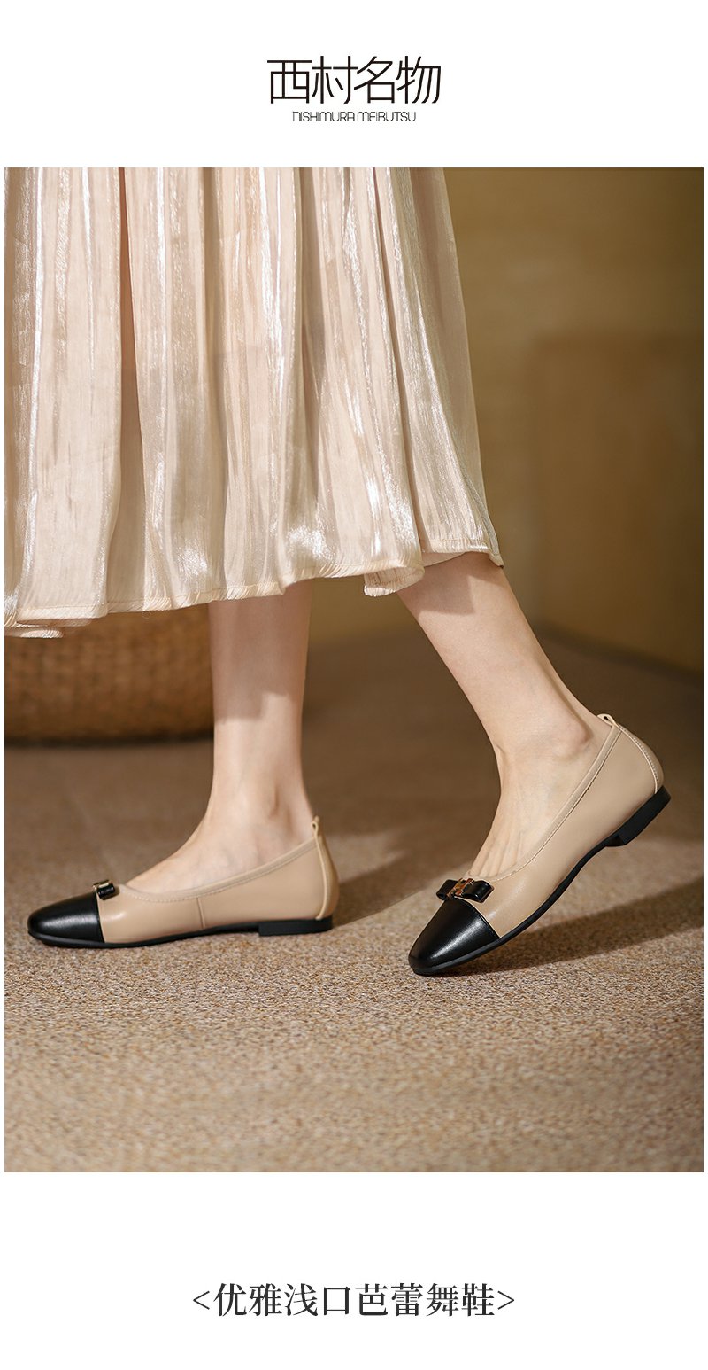 西村名物2022春季新款浅口蝴蝶结玛丽珍鞋拼色法式复古简约T22AE17631