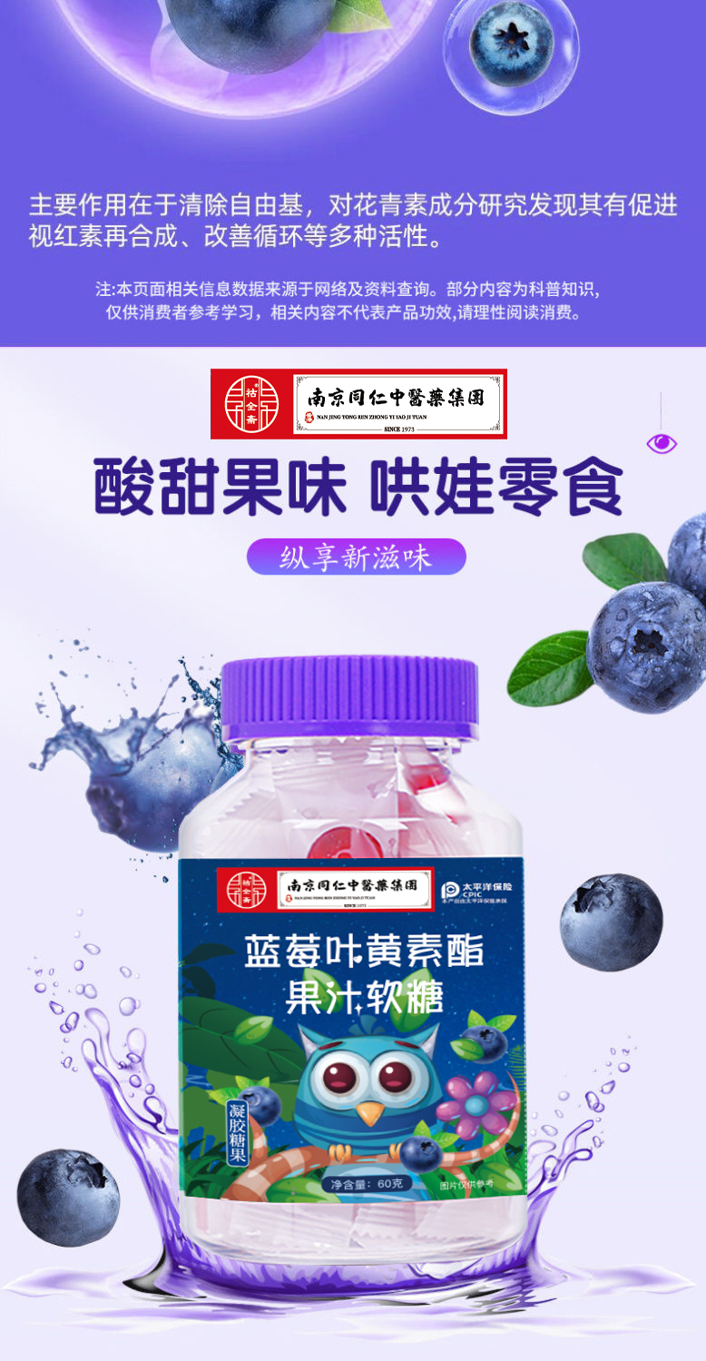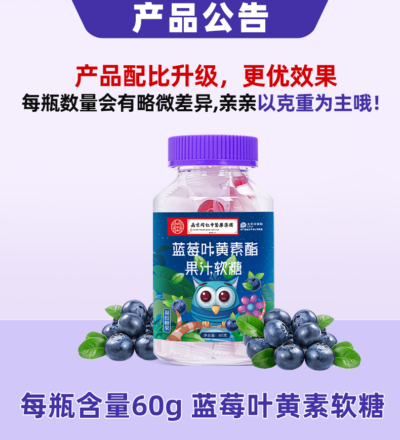 【19.9元3瓶!】大人小孩都可以吃 蓝莓叶黄素酯果汁软糖 丰富花青素护眼休闲零嘴凝胶糖果