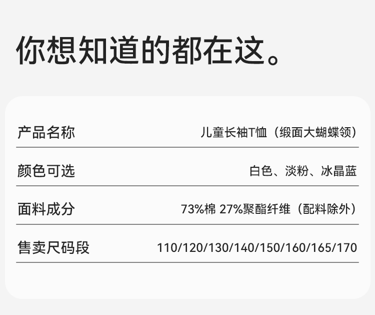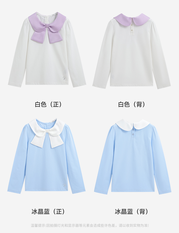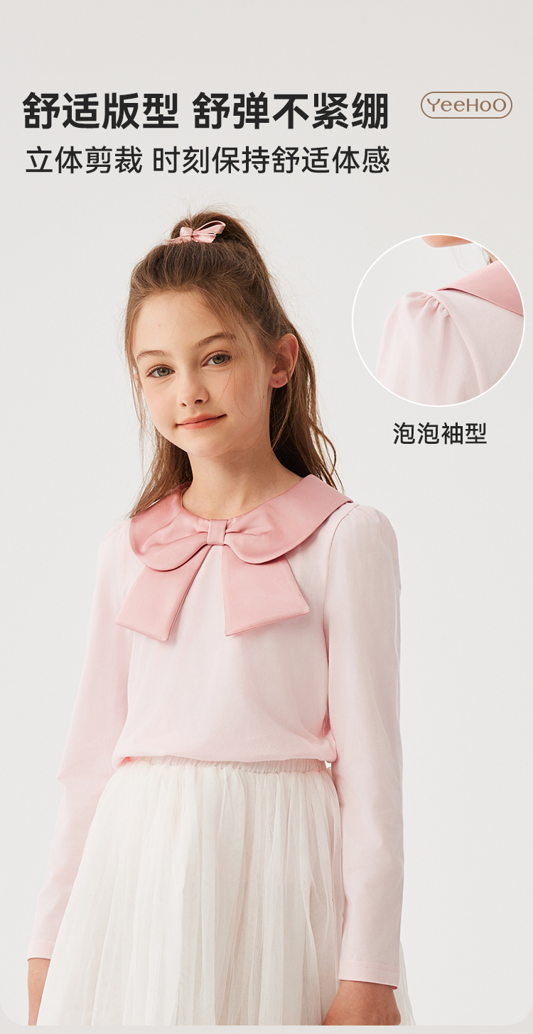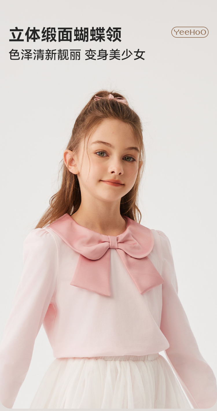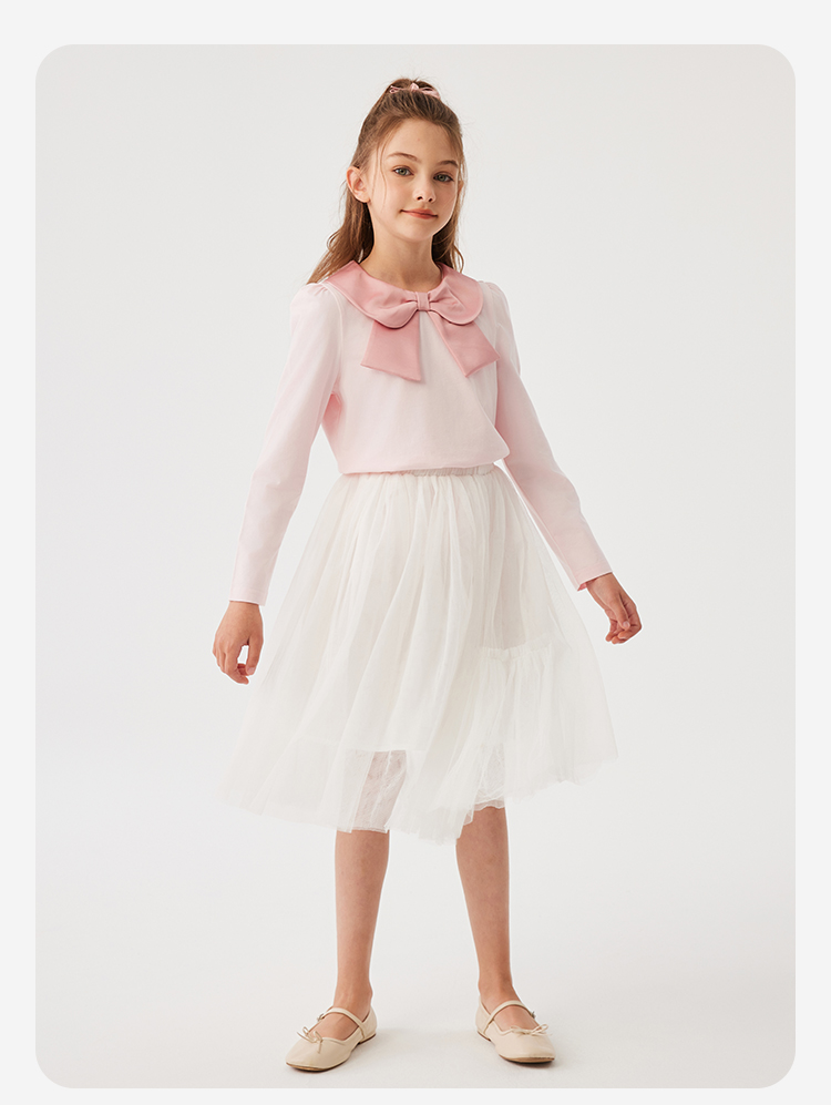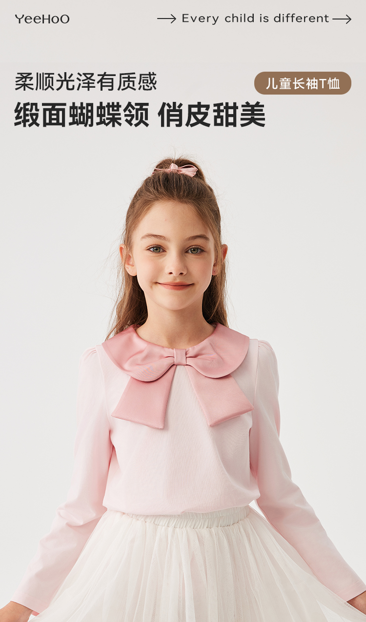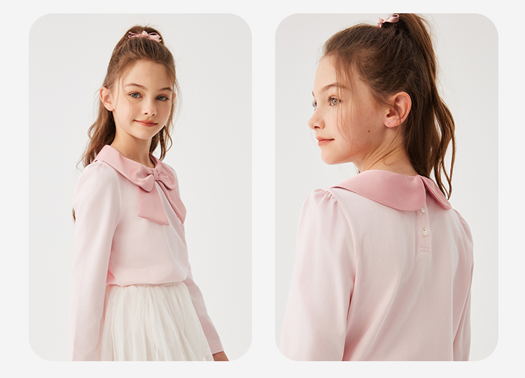 【英氏】【缎面大蝴蝶领】【110-170】女童长袖T恤