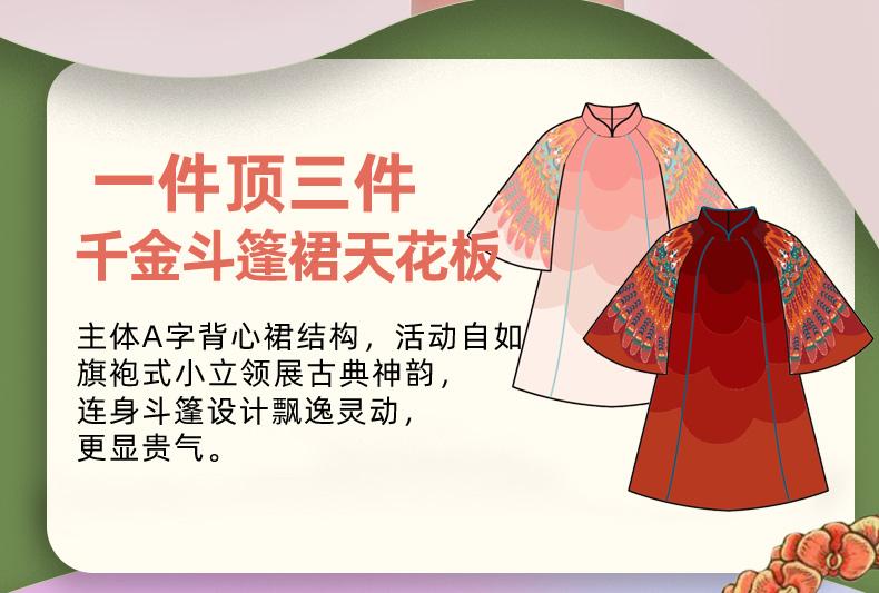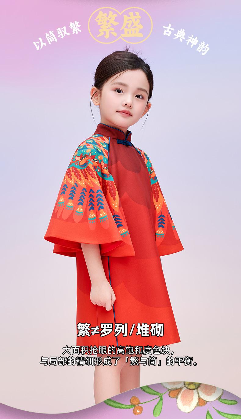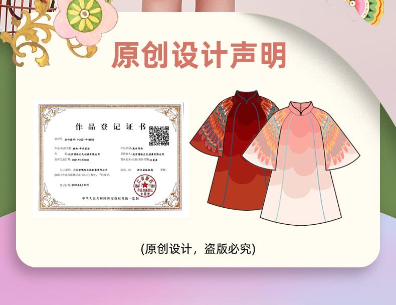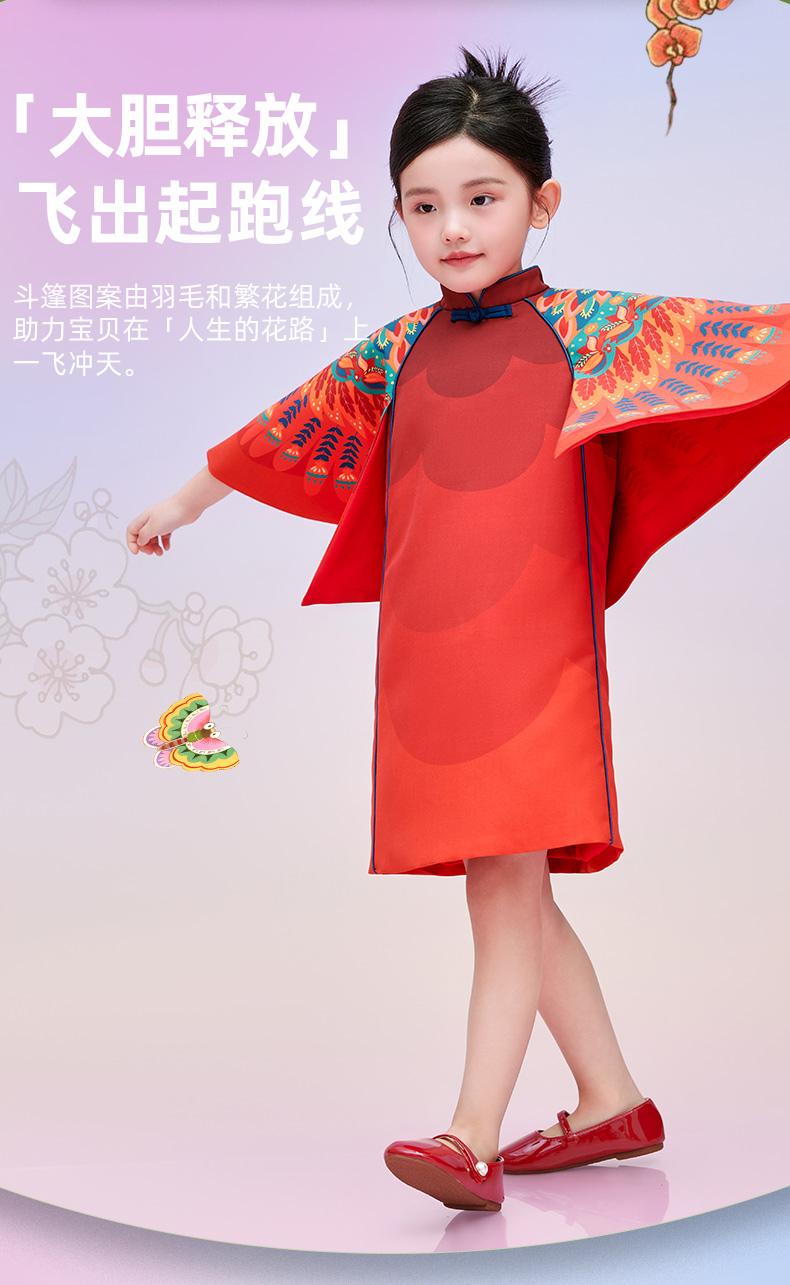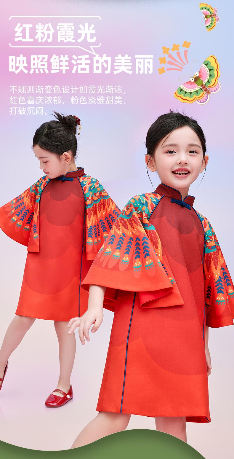 【霞光初上】年衣女孩裙子旗袍连衣裙古风新款中国风公主裙G红色1