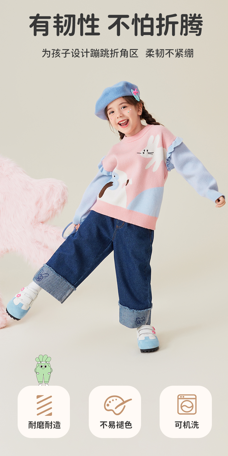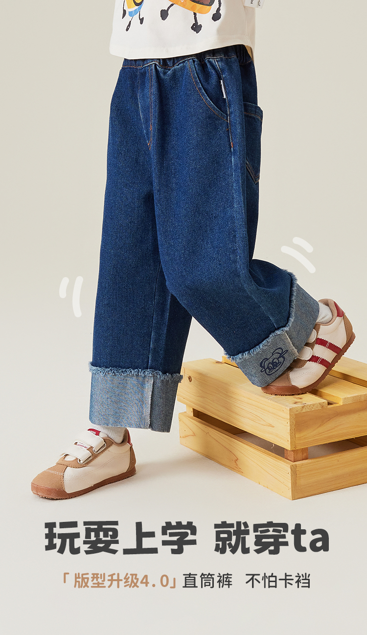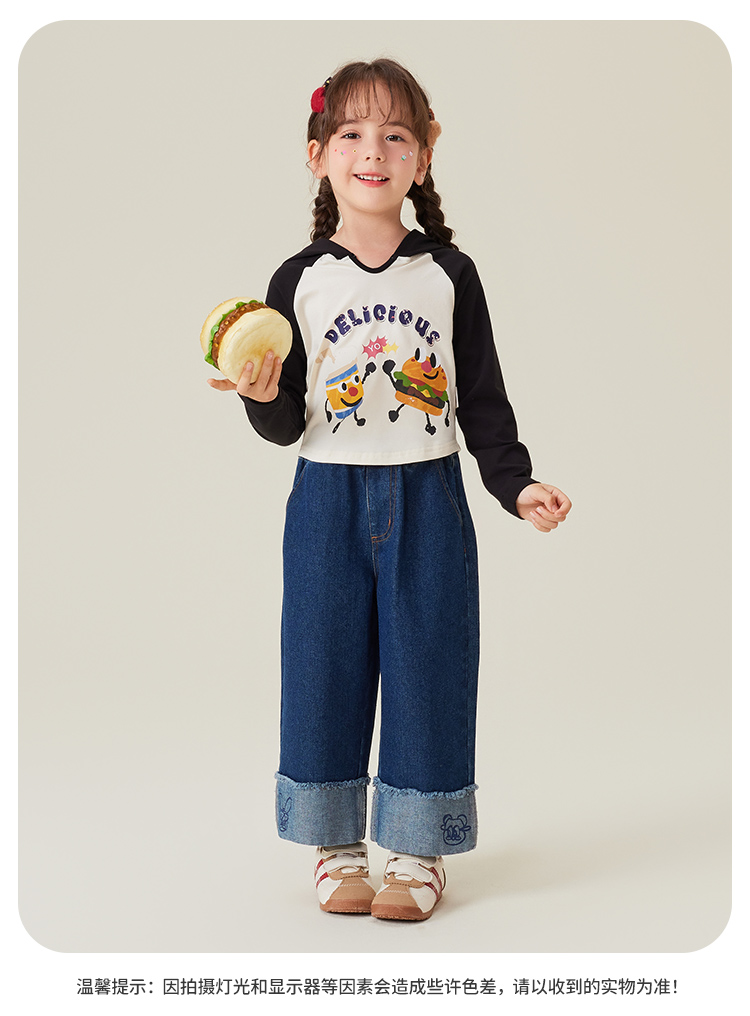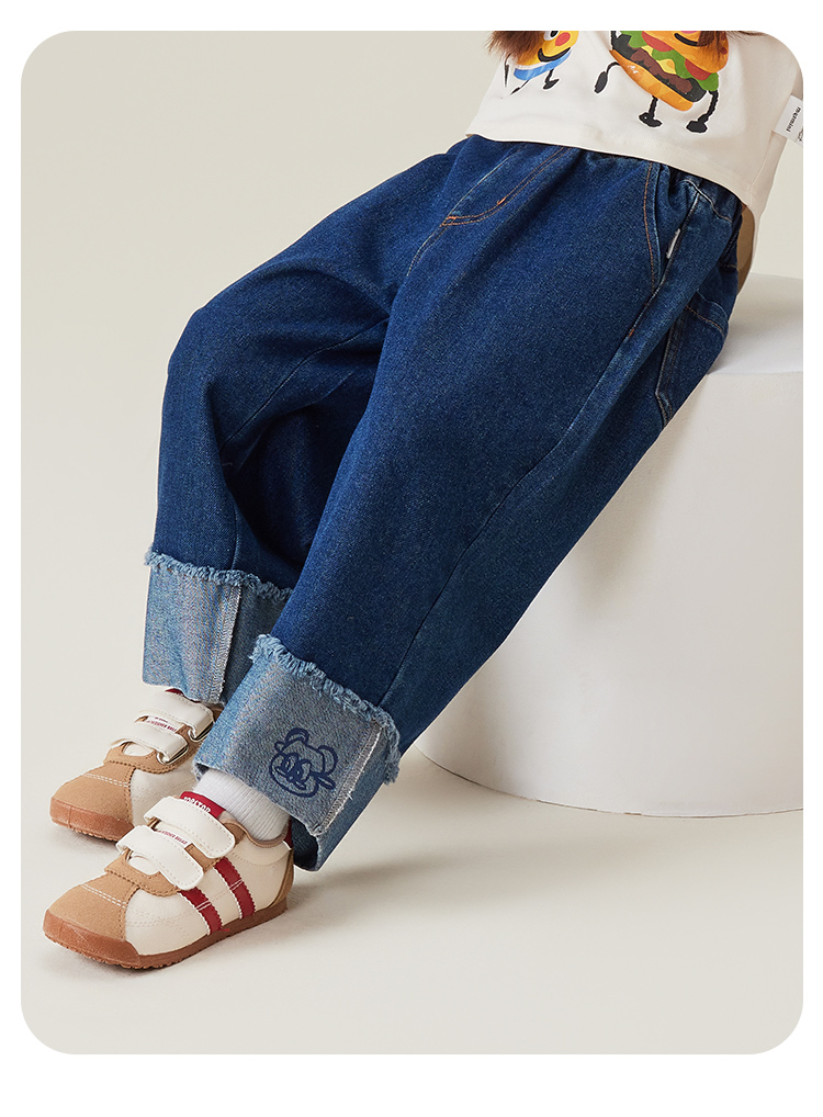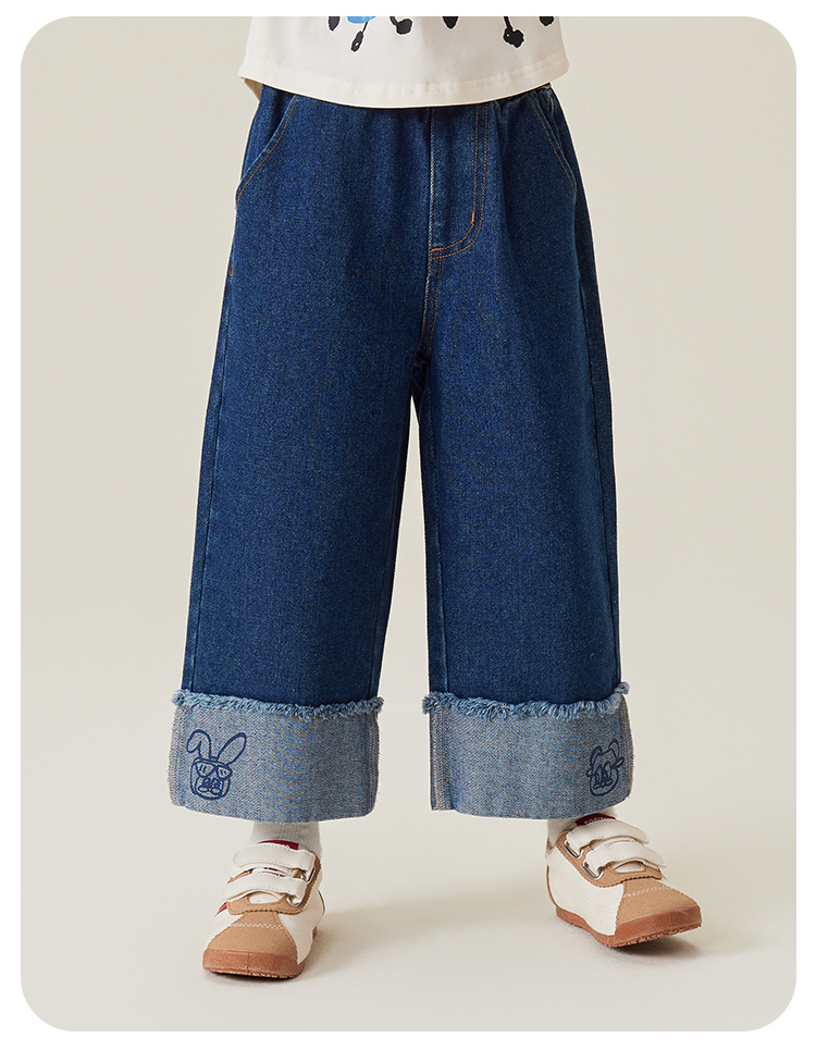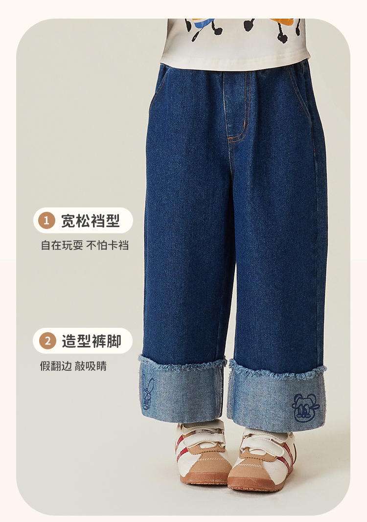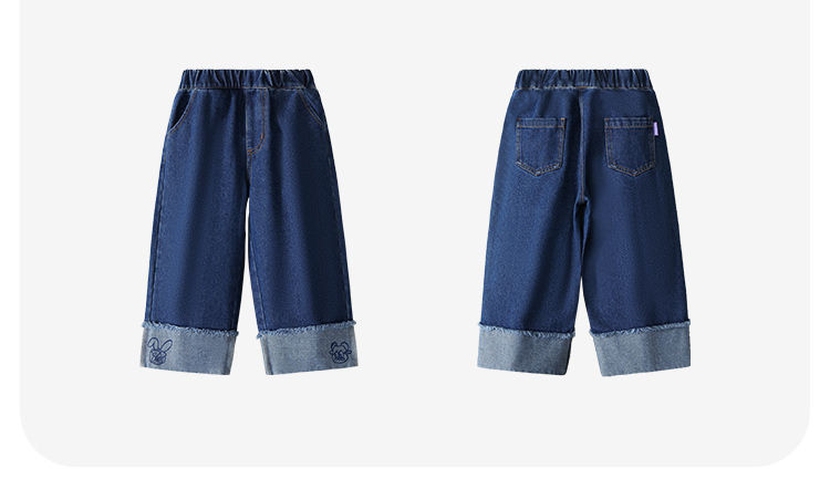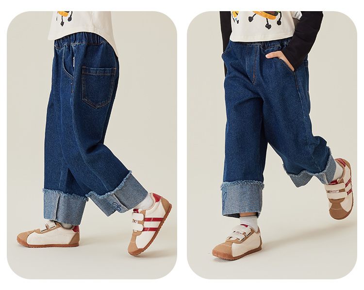 【110-140】【MQDmini】女童春秋裤阔腿翻边牛仔裤