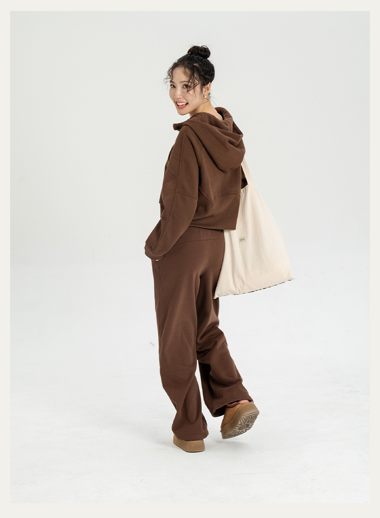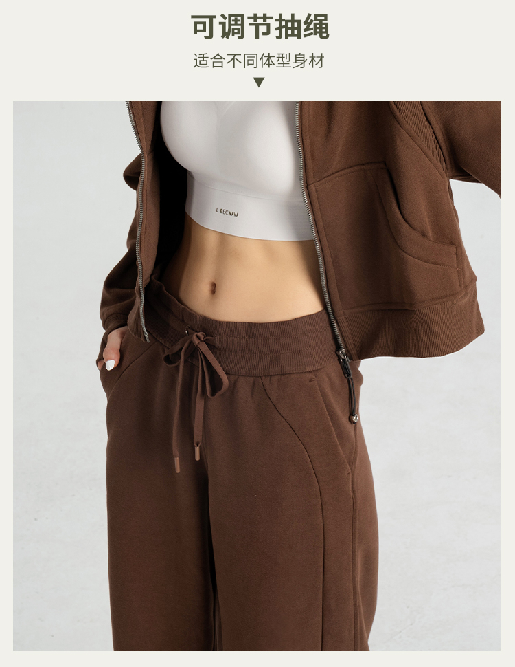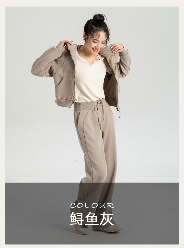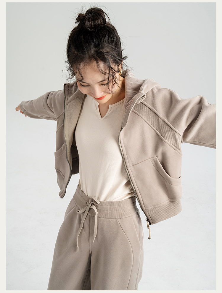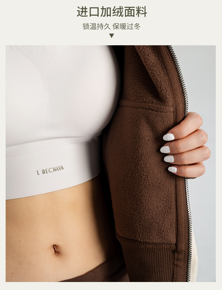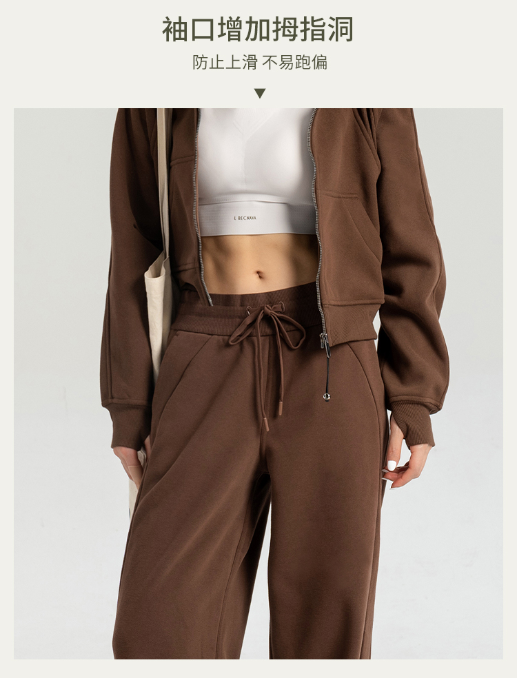 L RECNAVA 显高显瘦加绒卫衣卫裤 短款拉链连帽外套 腰部螺纹松紧抽绳直筒卫裤休闲套装