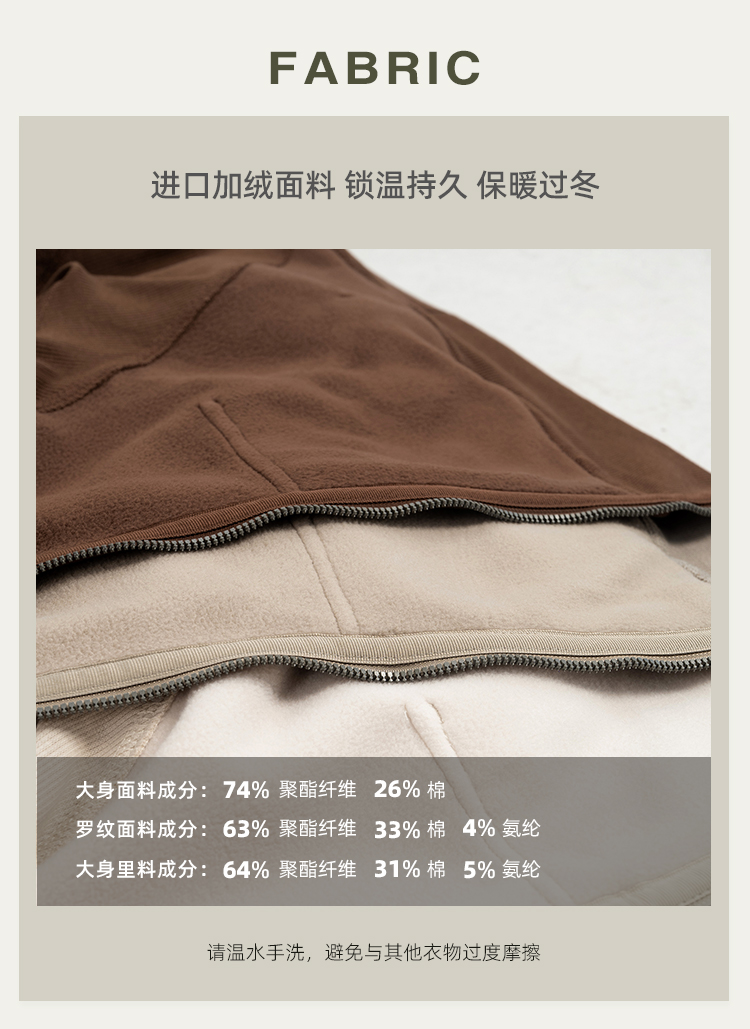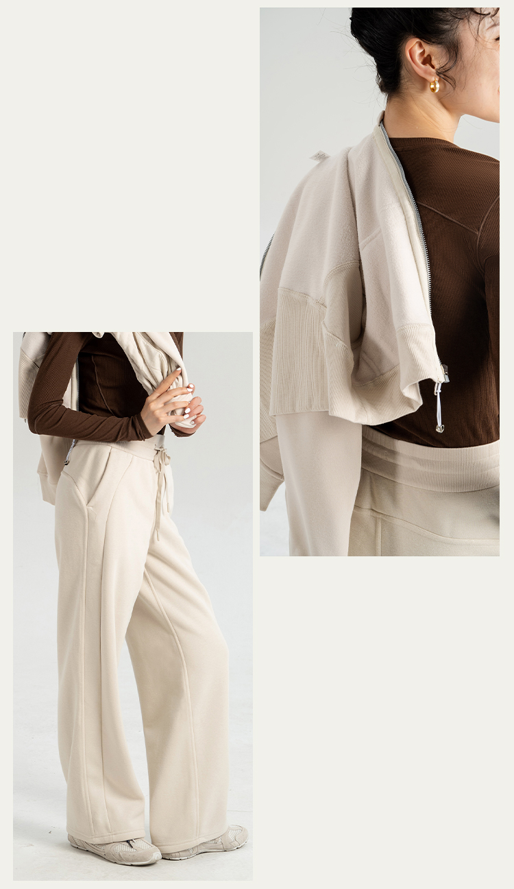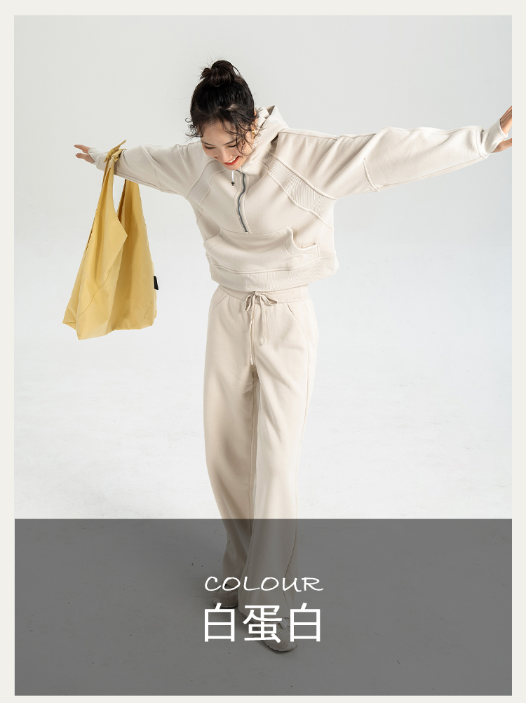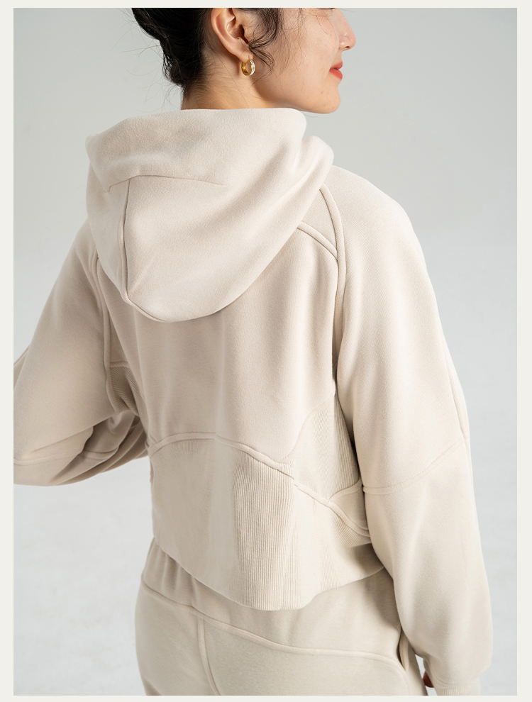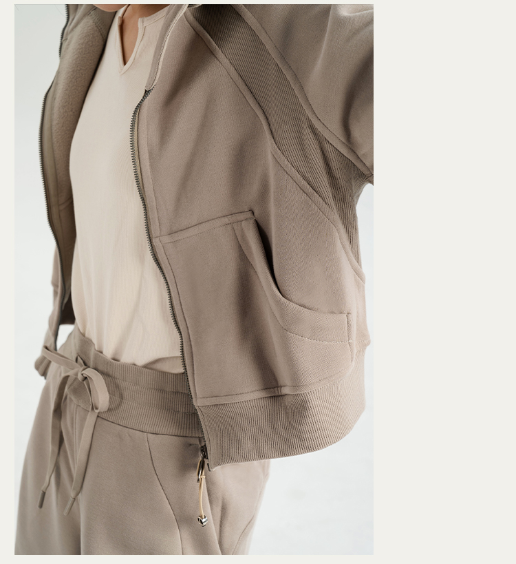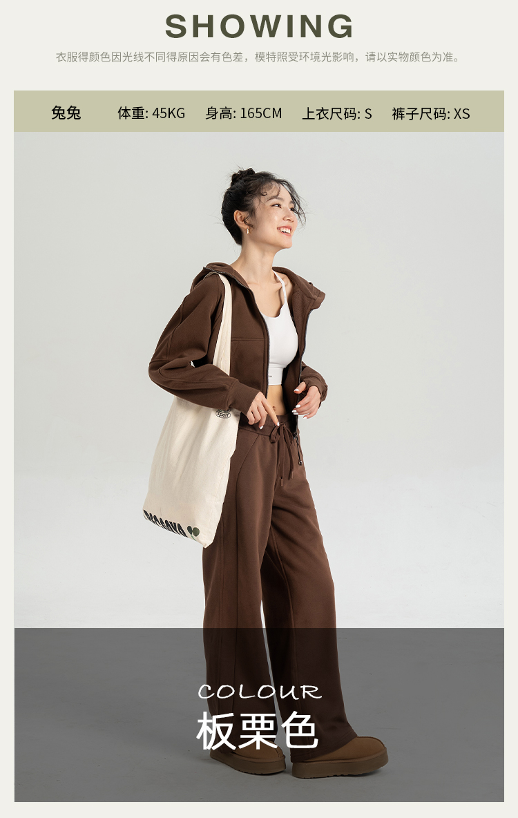 L RECNAVA 显高显瘦加绒卫衣卫裤 短款拉链连帽外套 腰部螺纹松紧抽绳直筒卫裤休闲套装