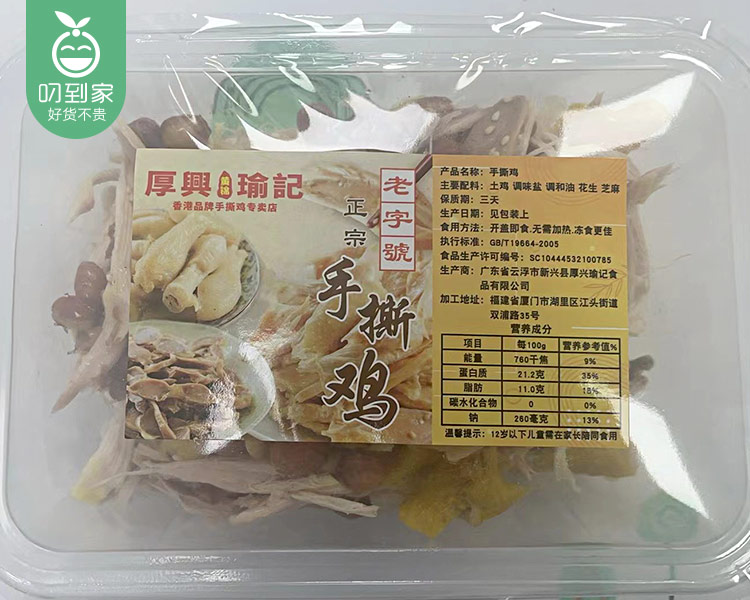 厚兴瑜记盐焗手撕鸡(450g±50g/盒)生产日期:4月16日 保质期:冷藏3天