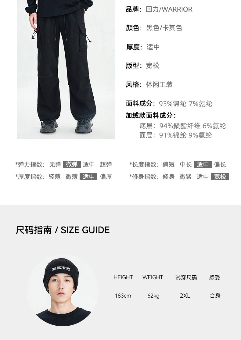 回力工装裤子男秋冬款直筒伞兵机能登山春秋美式加绒冲锋休闲长裤183