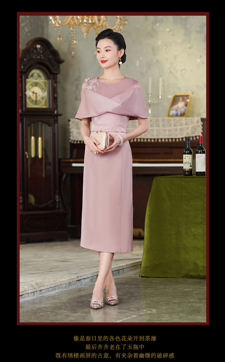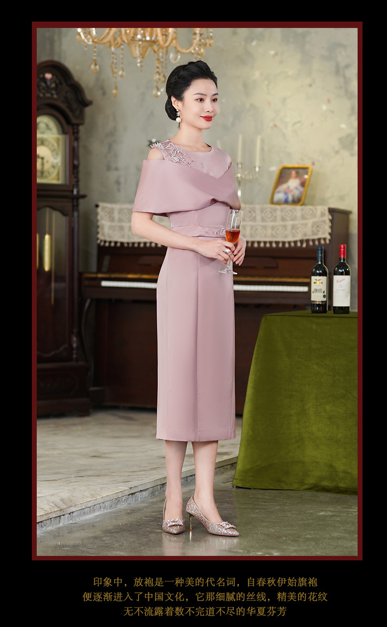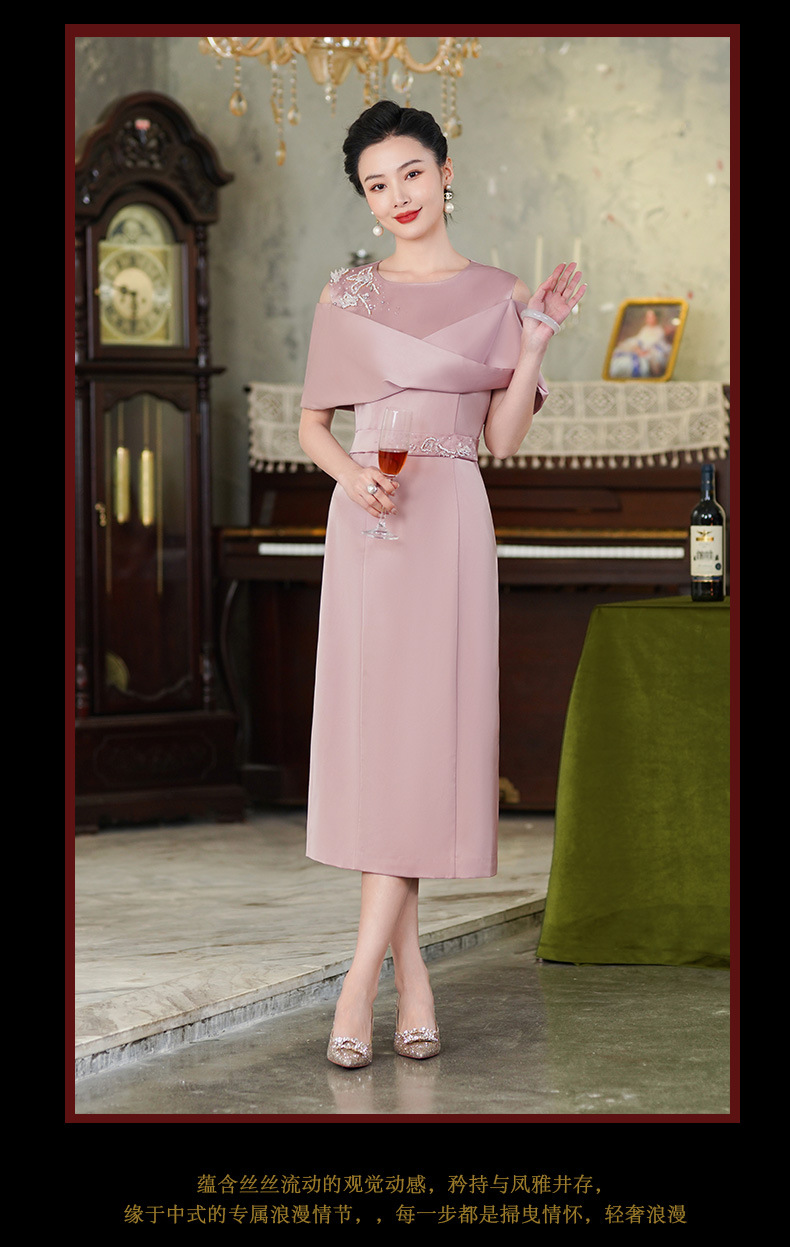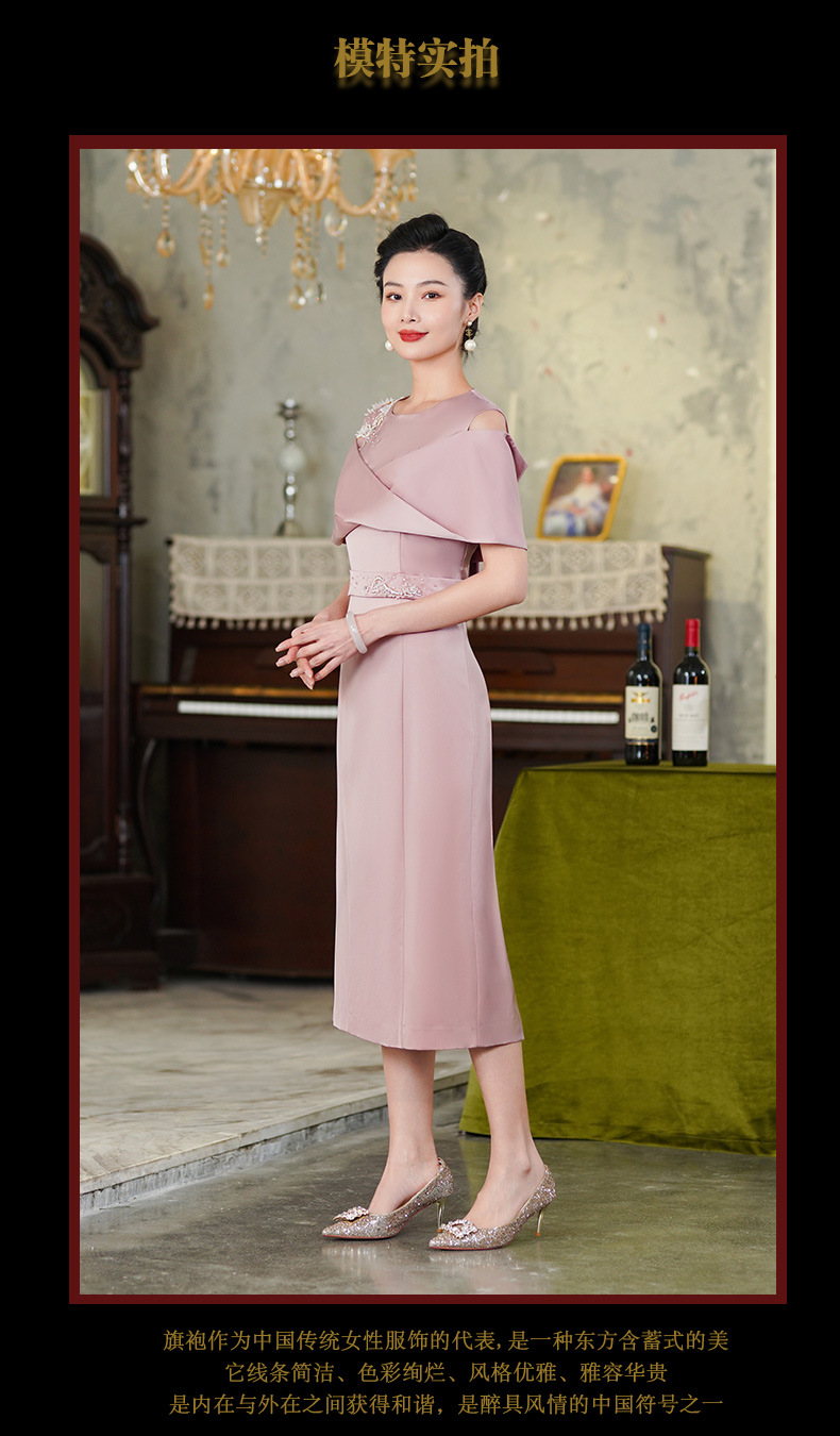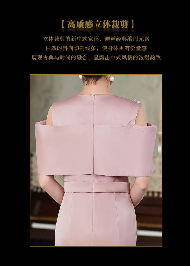 高端结婚妈妈装,粉色新中式旗袍年轻喜婆婆婚宴礼服裙HH-9951