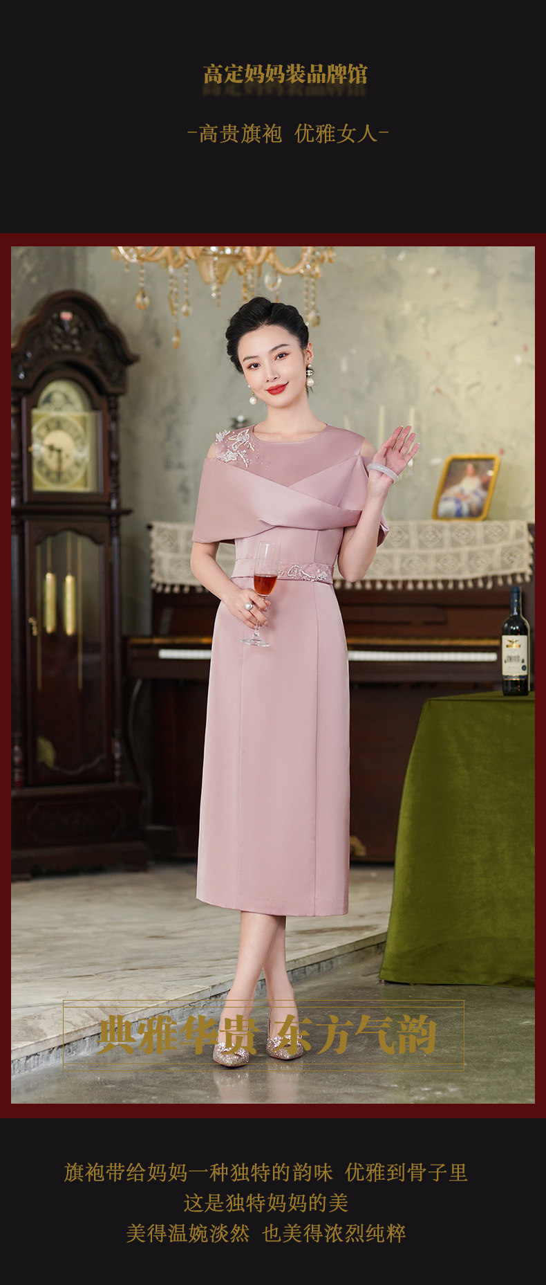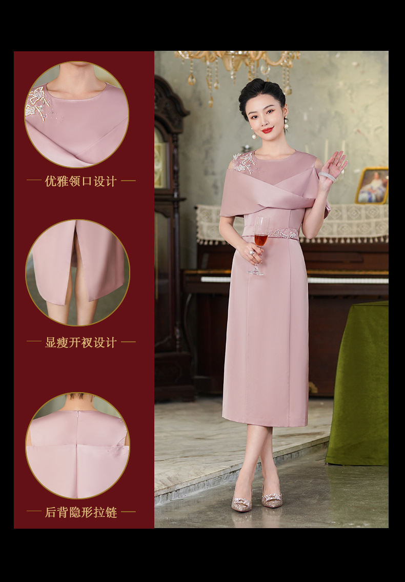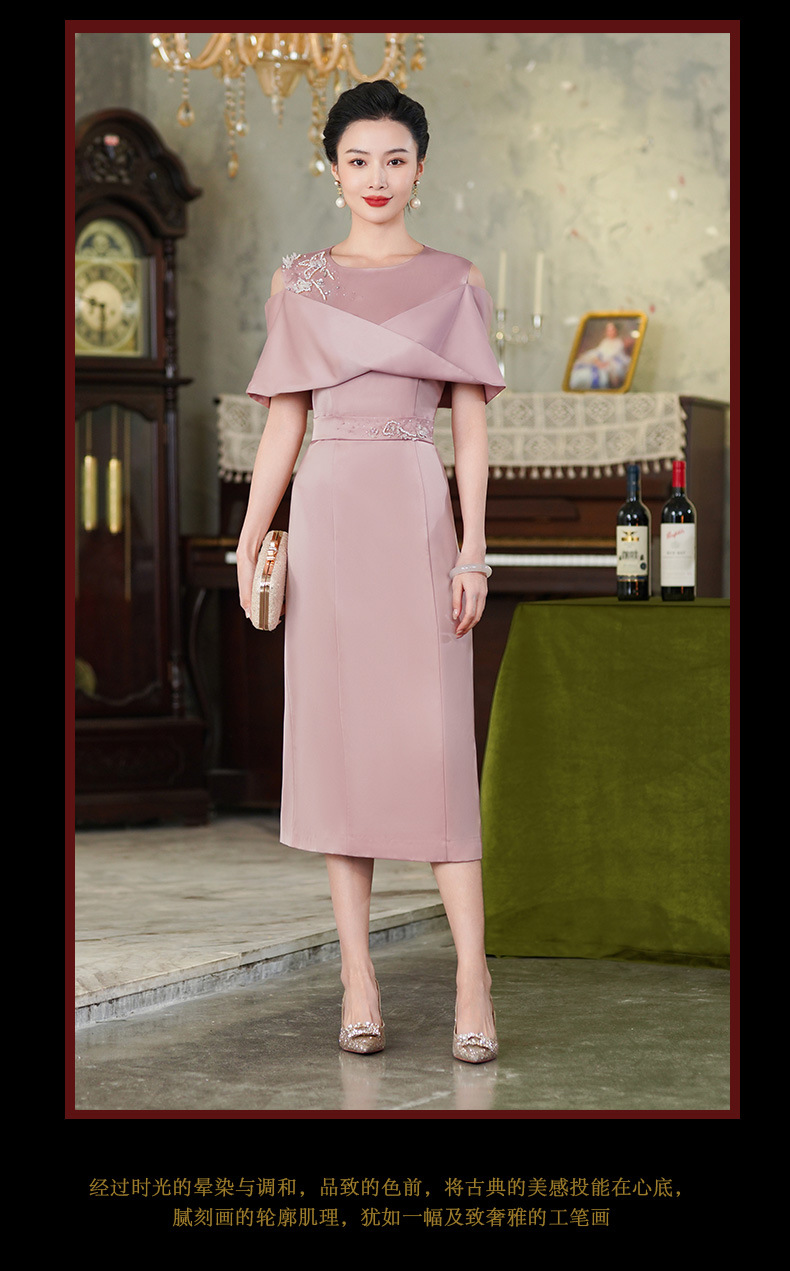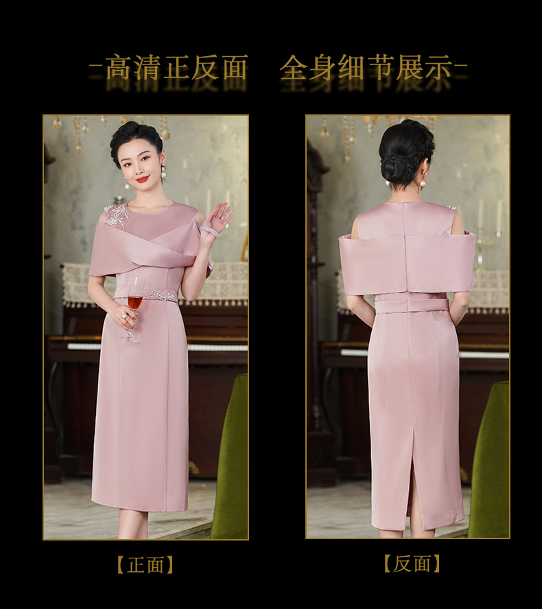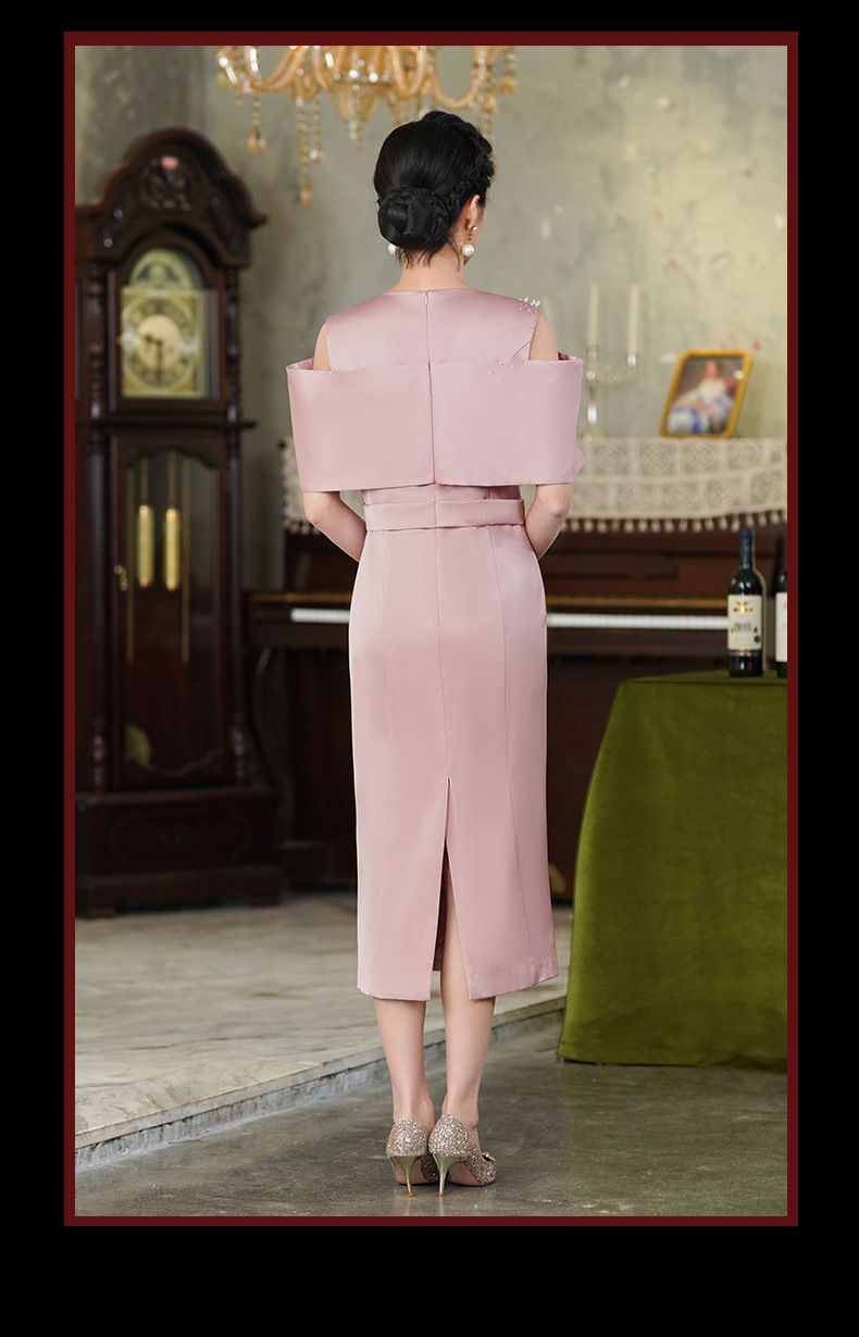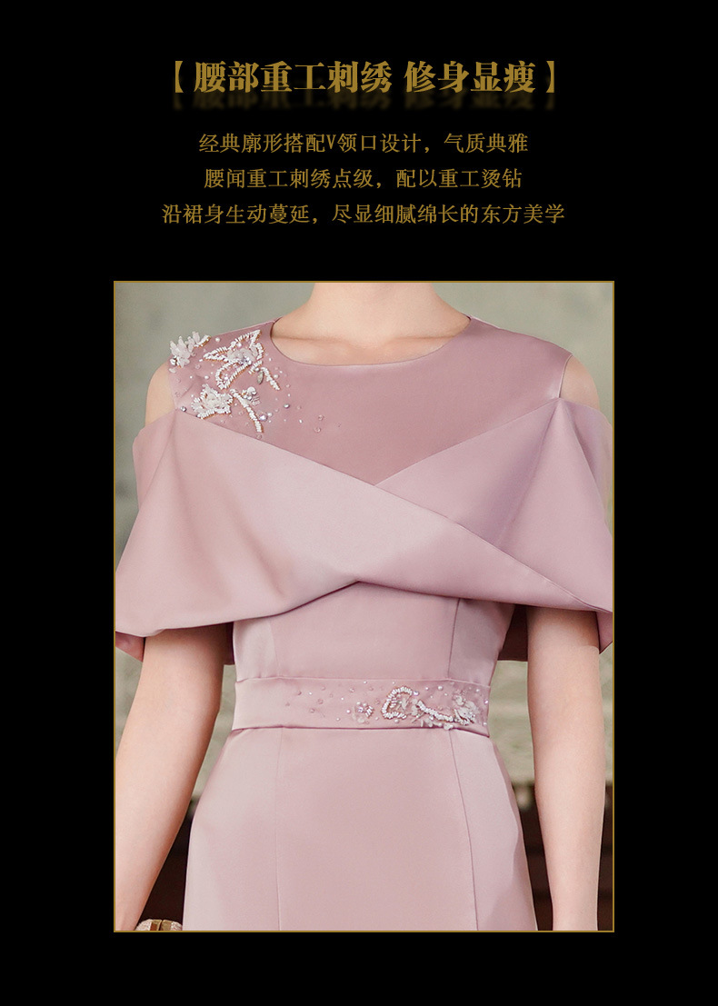 高端结婚妈妈装,粉色新中式旗袍年轻喜婆婆婚宴礼服裙HH-9951