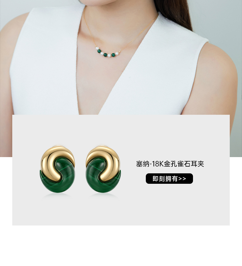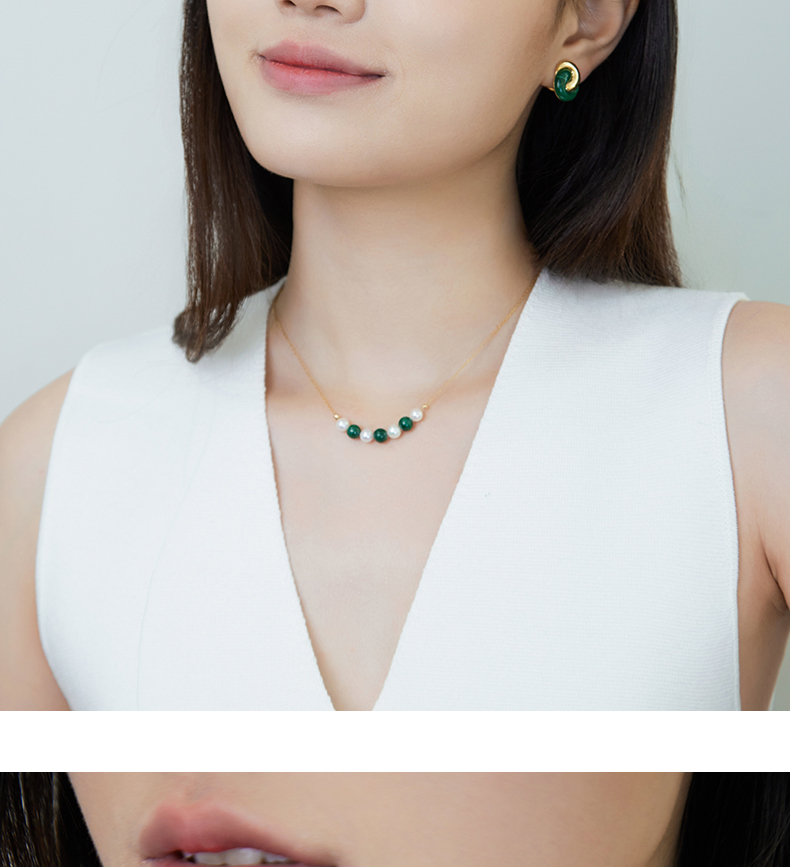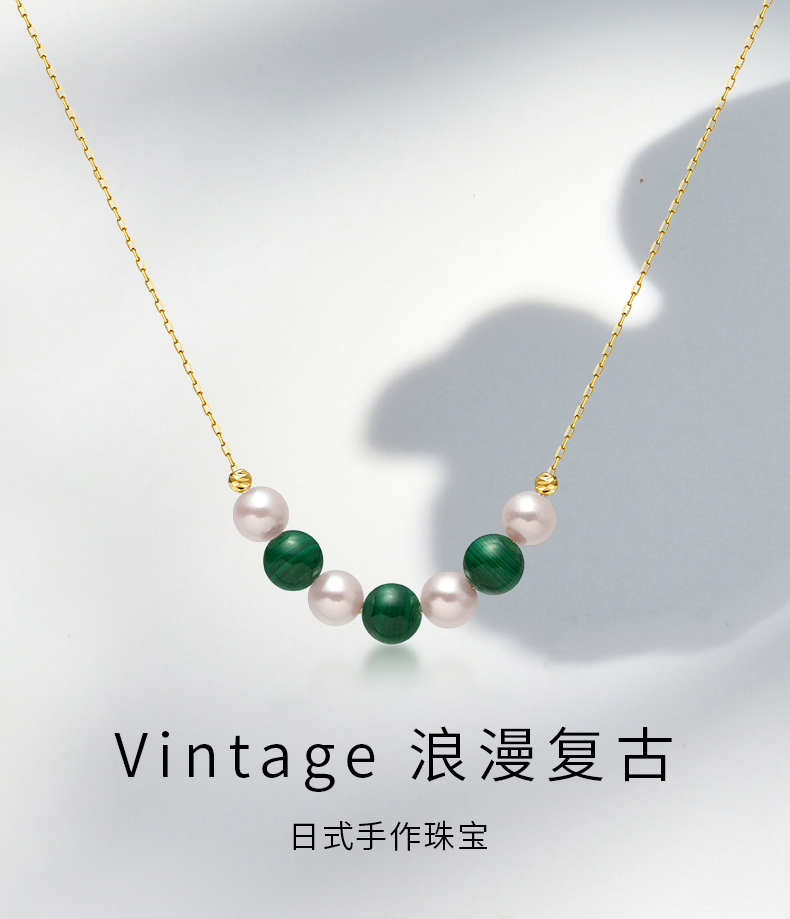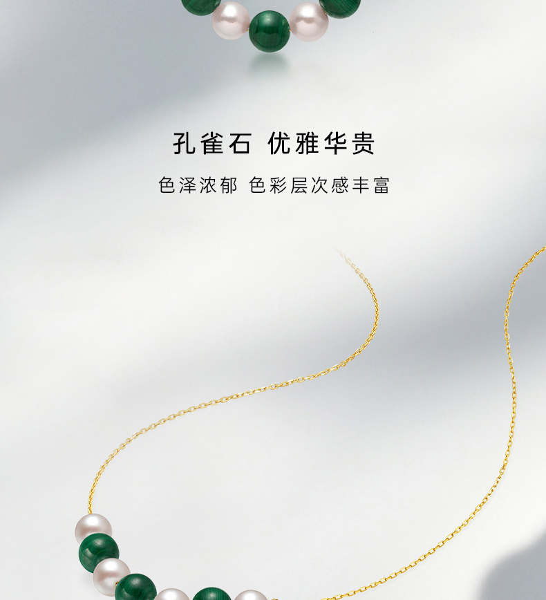 【天猫同款】悦甄 18k金Akoya珍珠孔雀石项链 smile