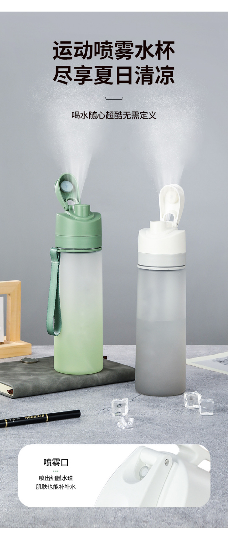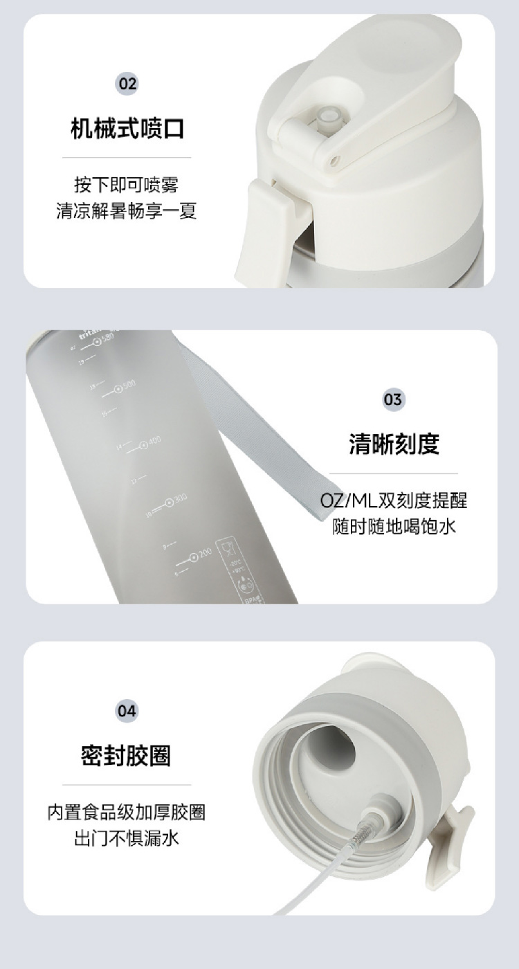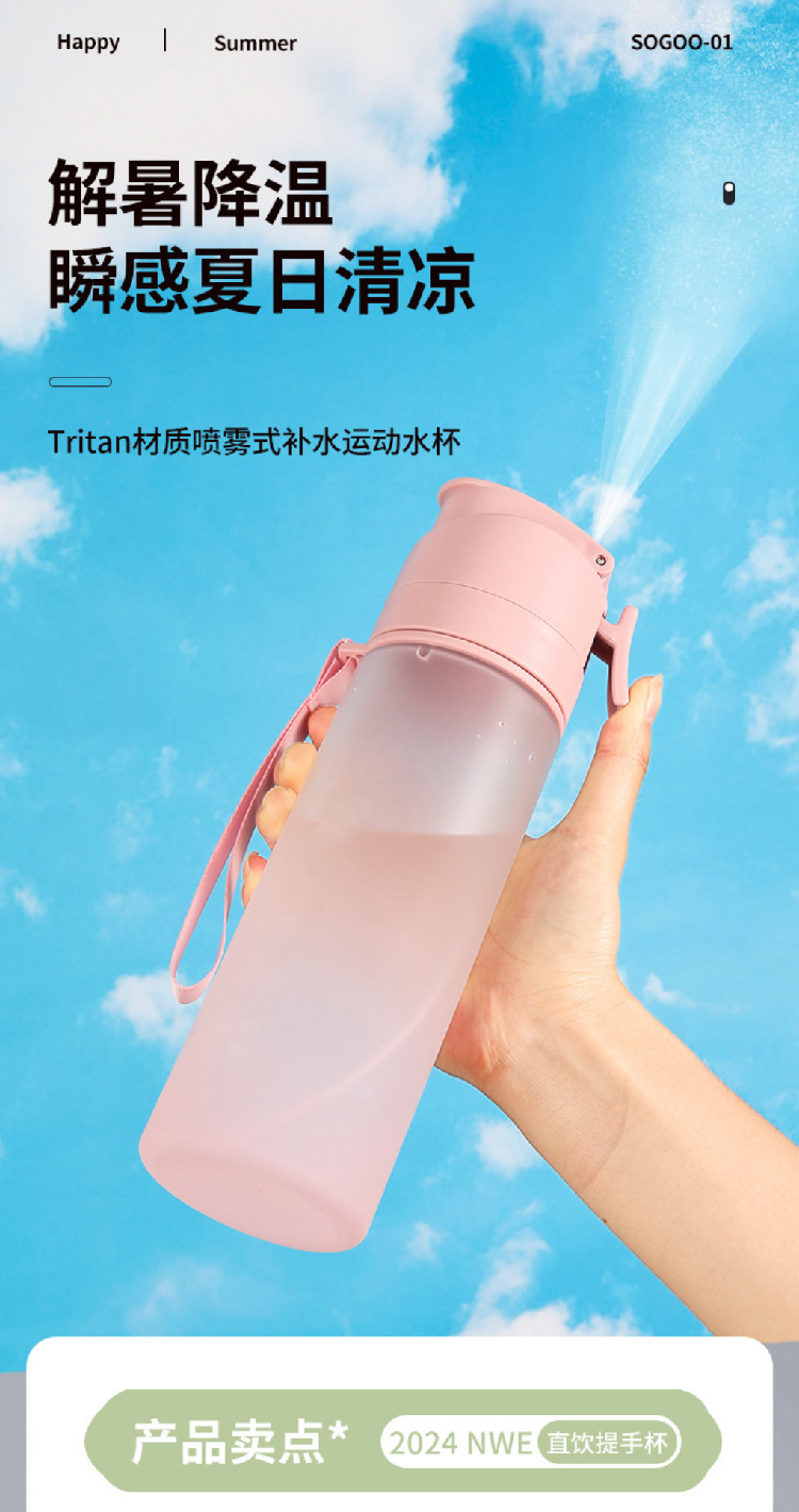 【水杯喷雾二合一】高颜值网红tritan喷雾水杯便携学生随手杯 夏天食品级塑料运动水壶