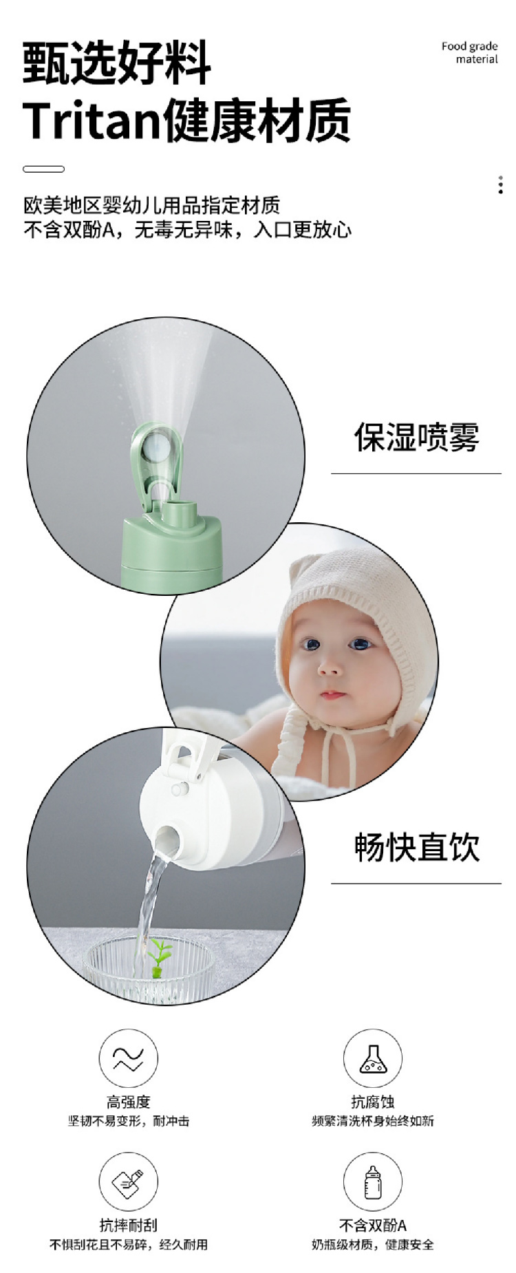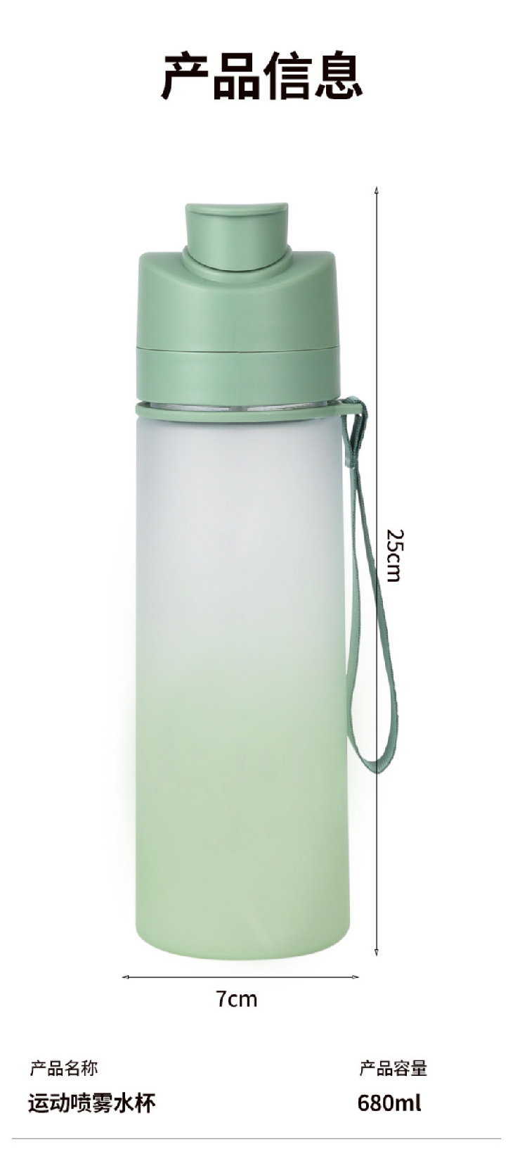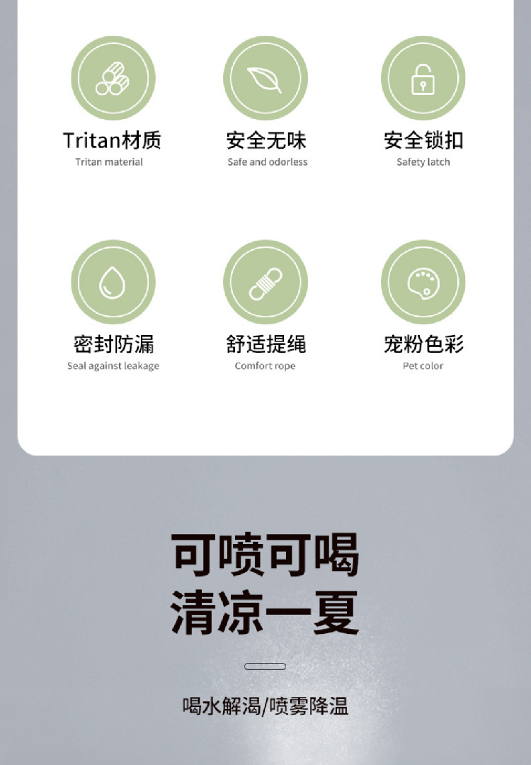 【水杯喷雾二合一】高颜值网红tritan喷雾水杯便携学生随手杯 夏天食品级塑料运动水壶