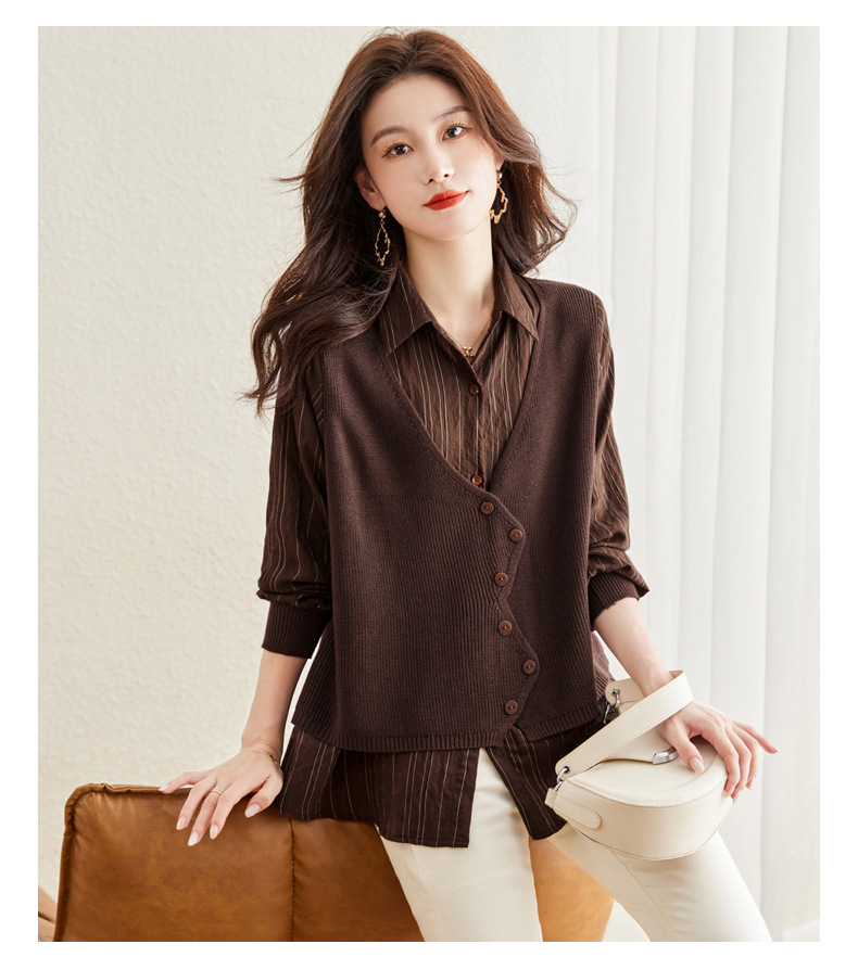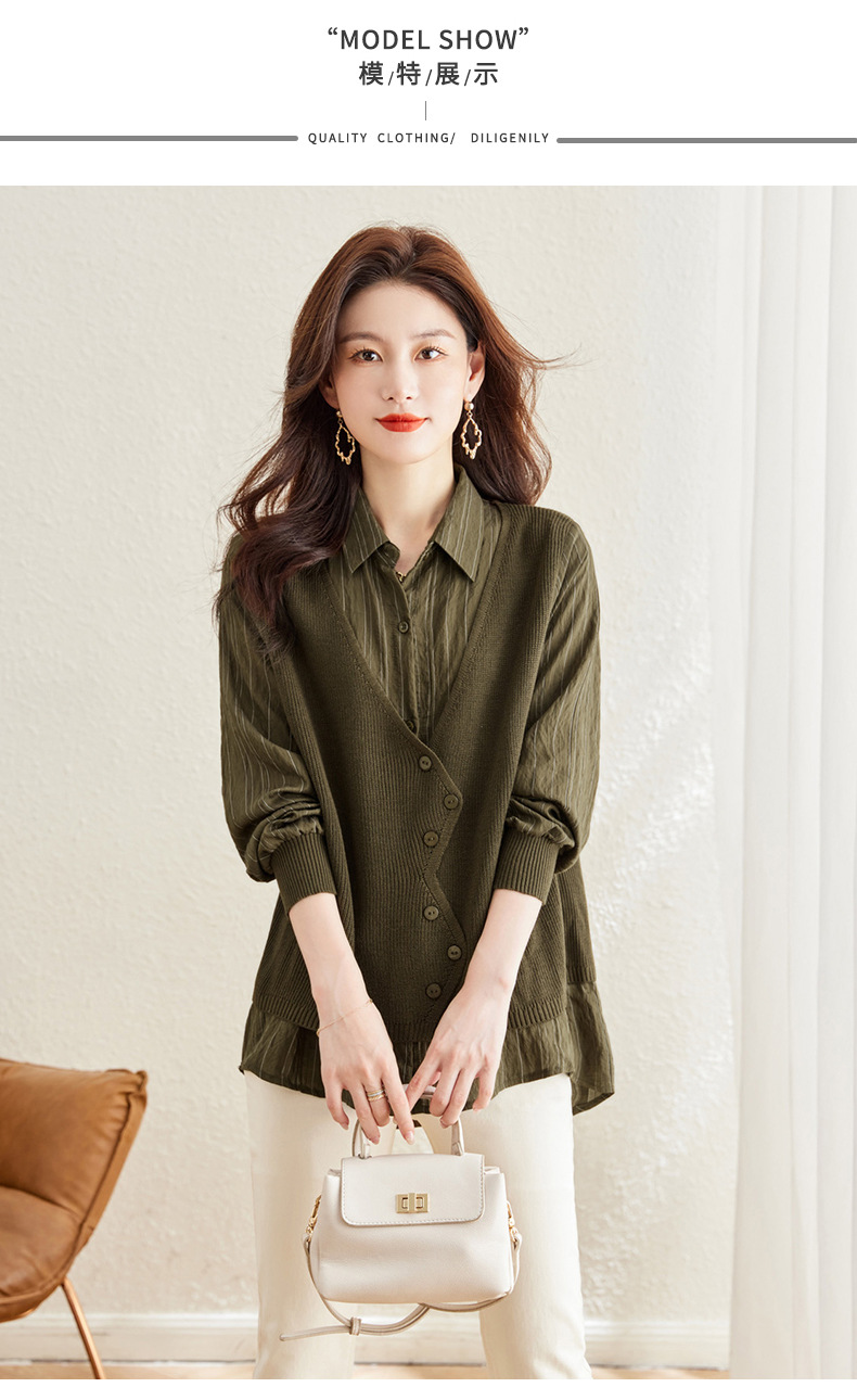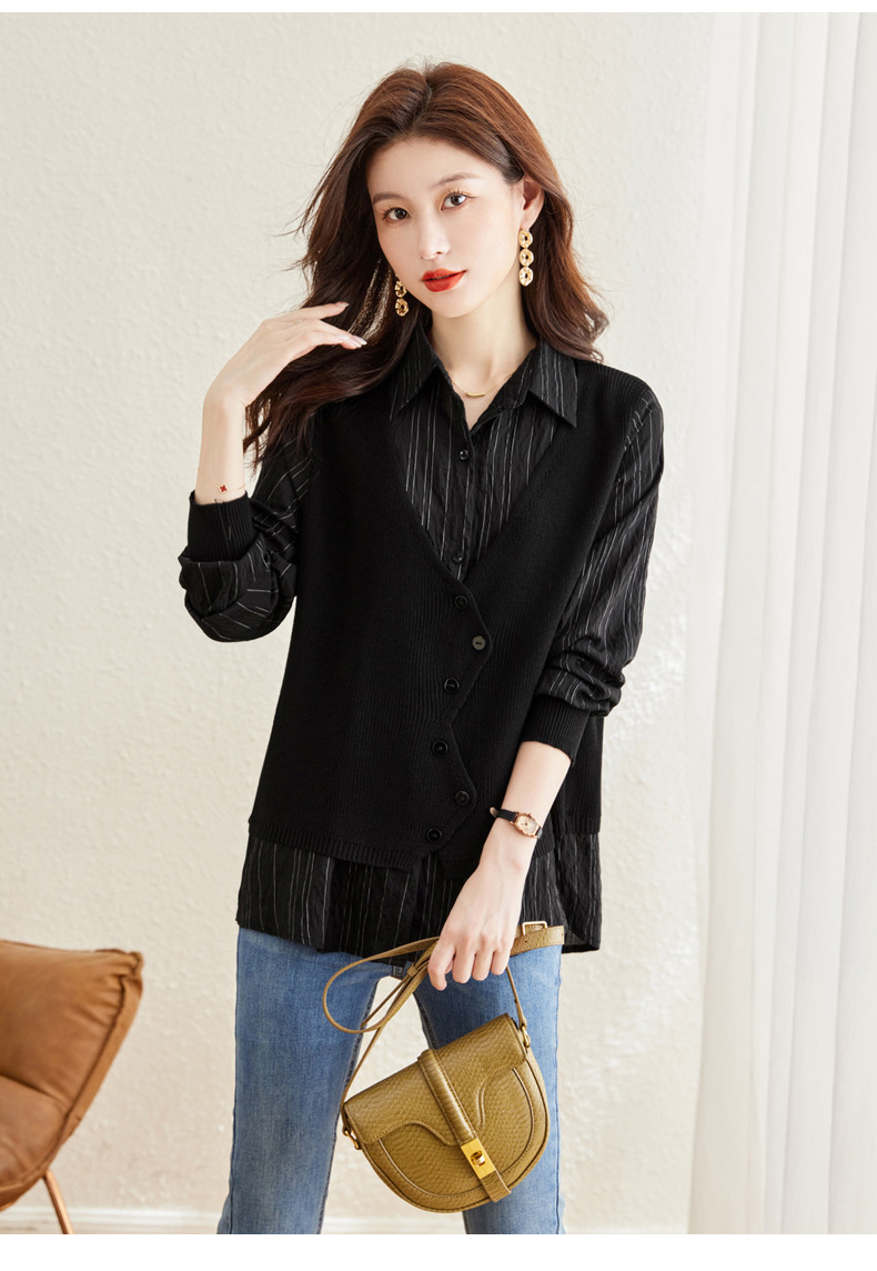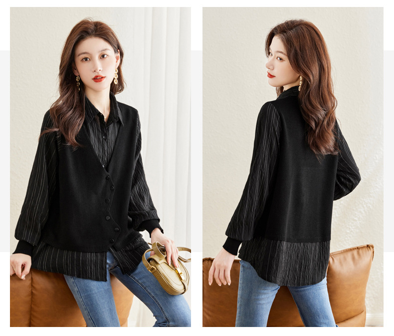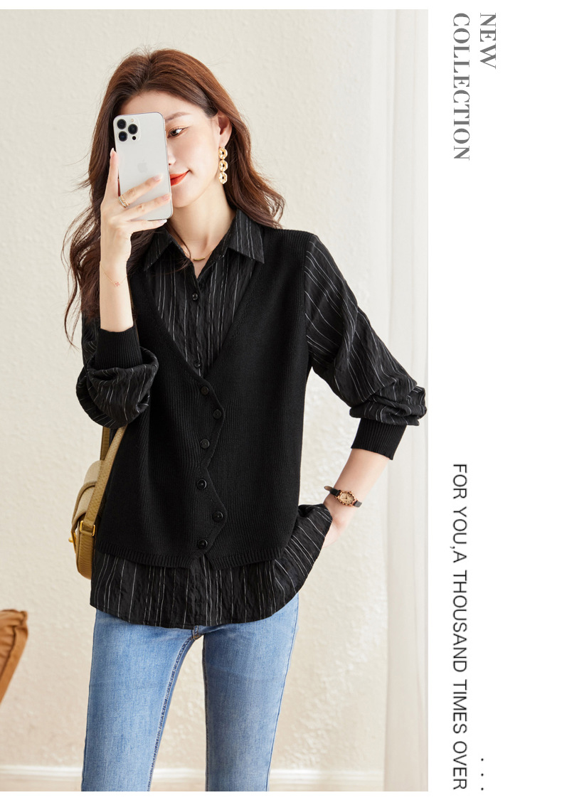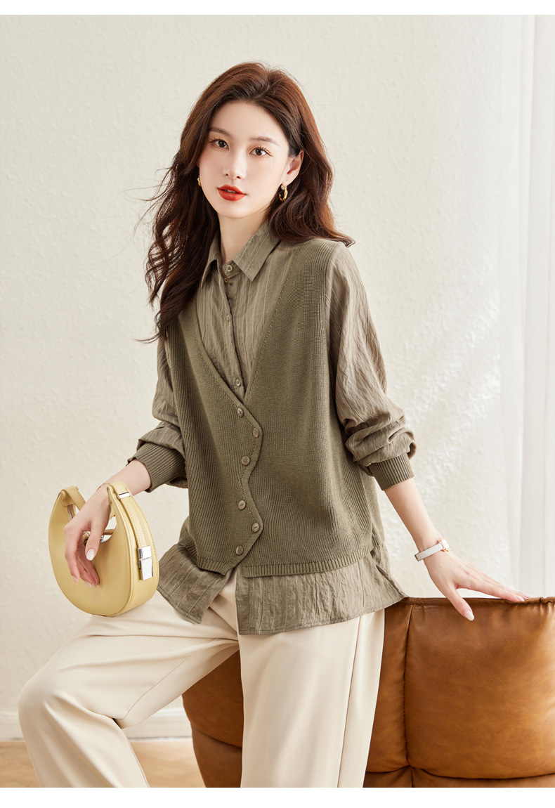 秋季新款,女装针织拼接衬衣春秋洋气时尚假两件女上衣长袖衬衫CC-16-2380
