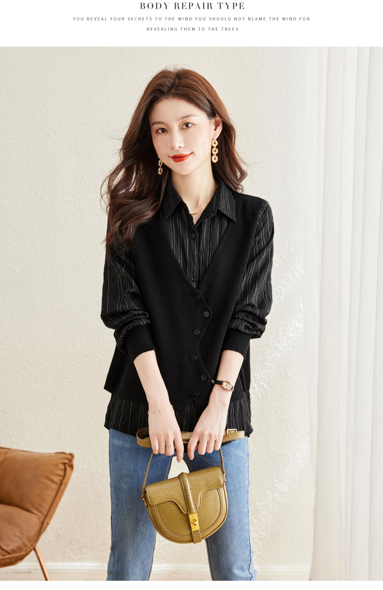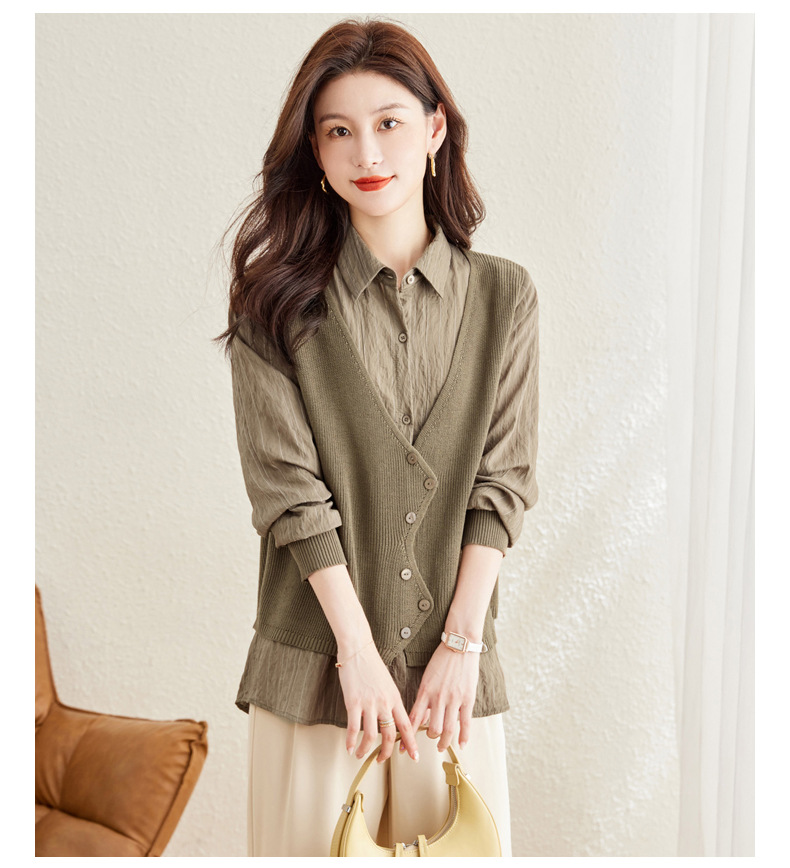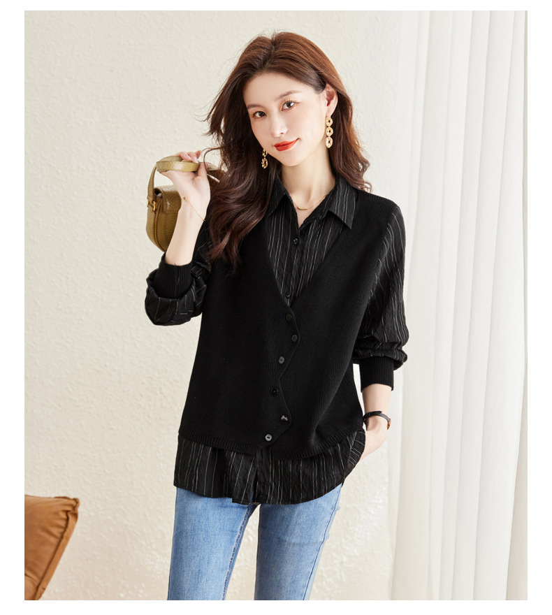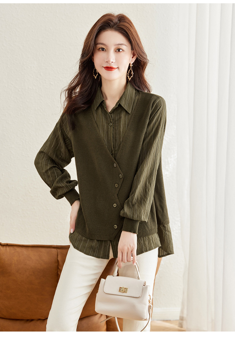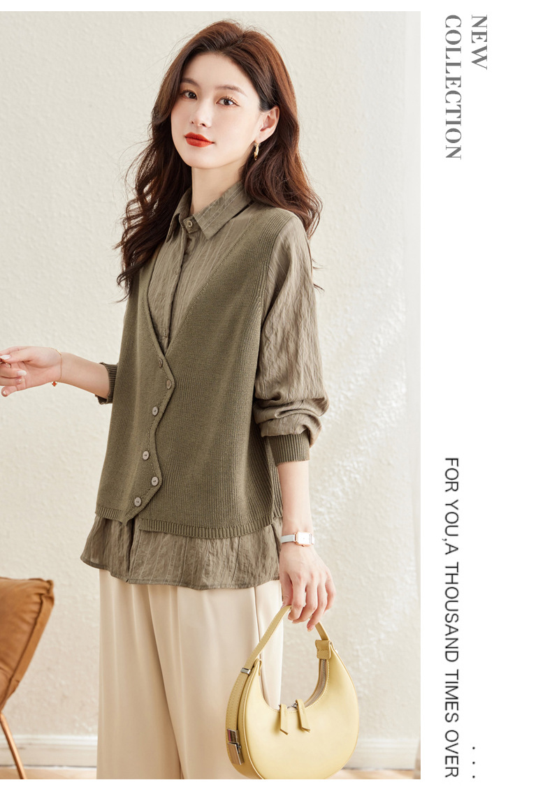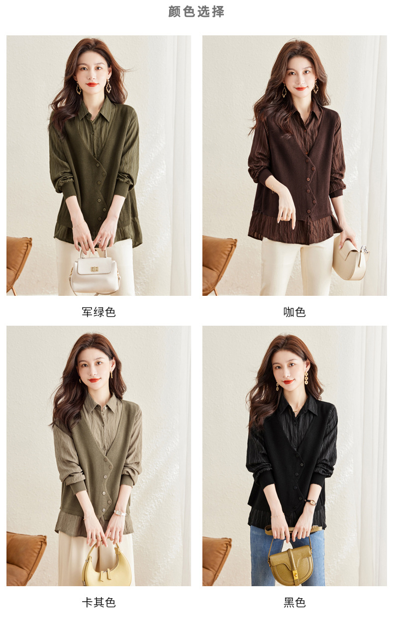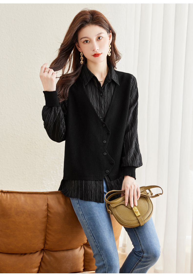 秋季新款,女装针织拼接衬衣春秋洋气时尚假两件女上衣长袖衬衫CC-16-2380