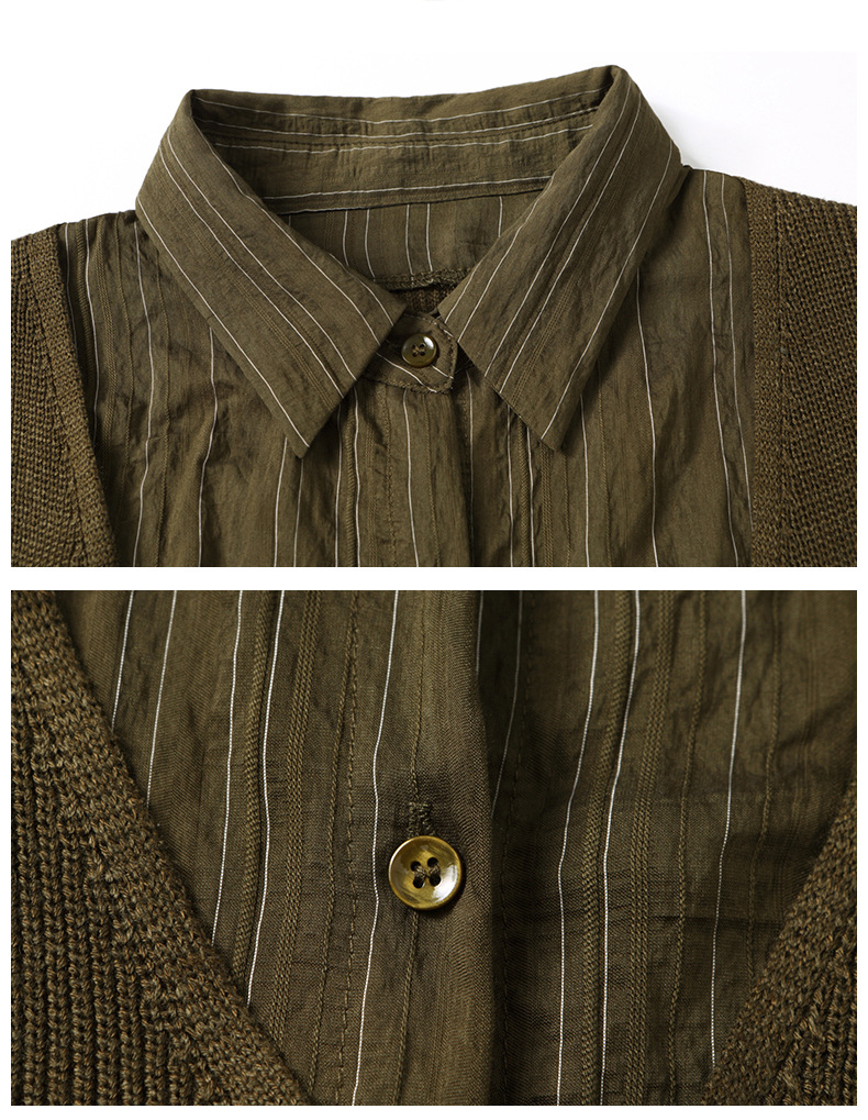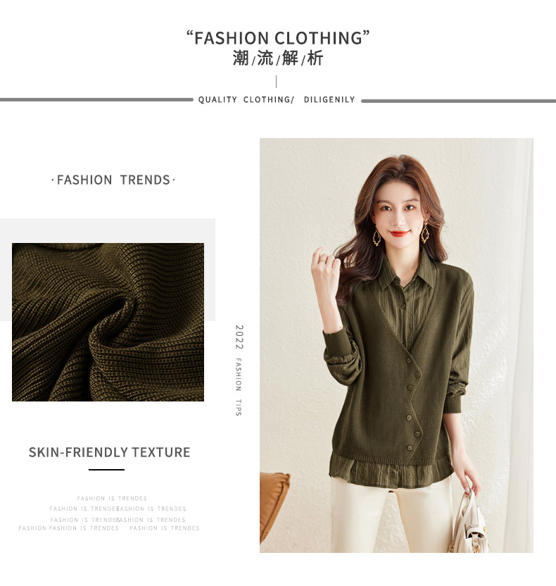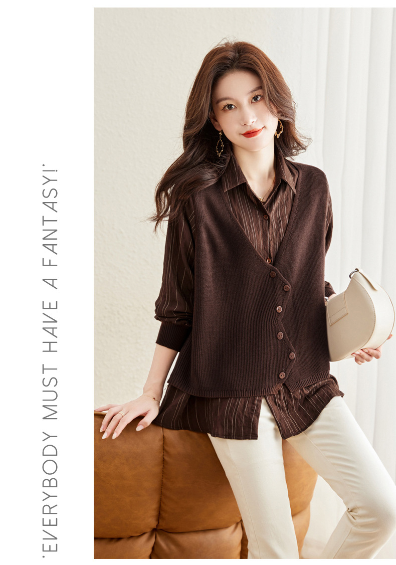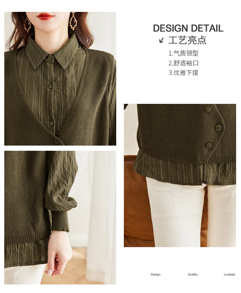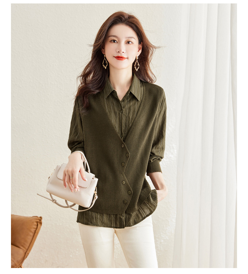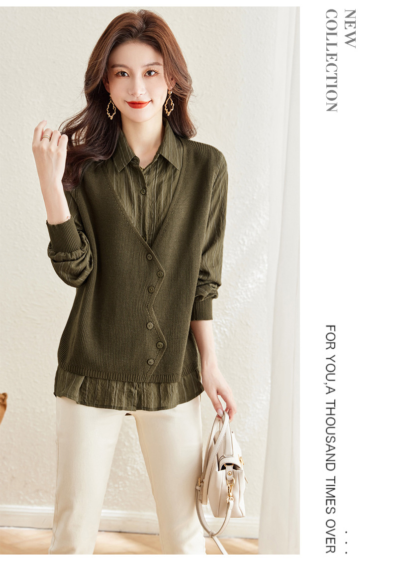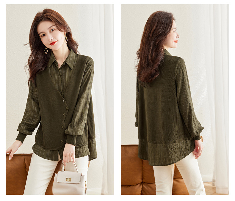 秋季新款,女装针织拼接衬衣春秋洋气时尚假两件女上衣长袖衬衫CC-16-2380