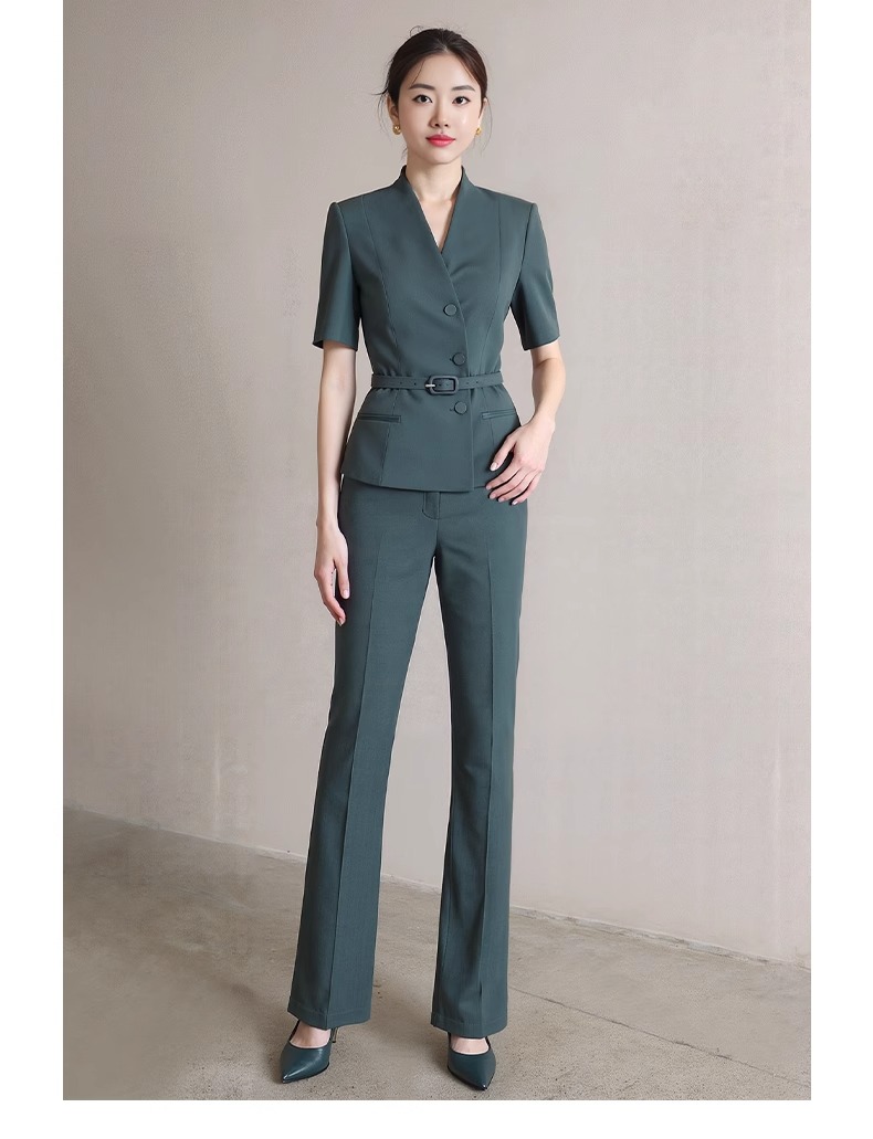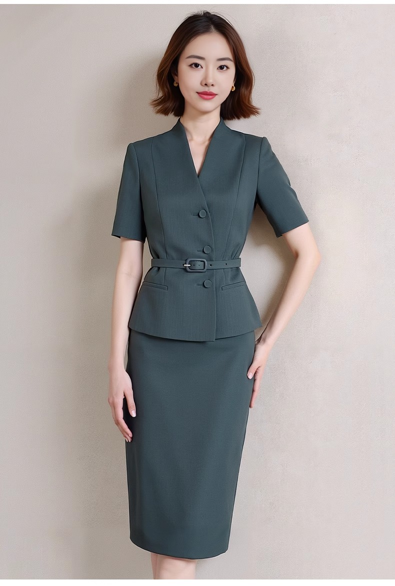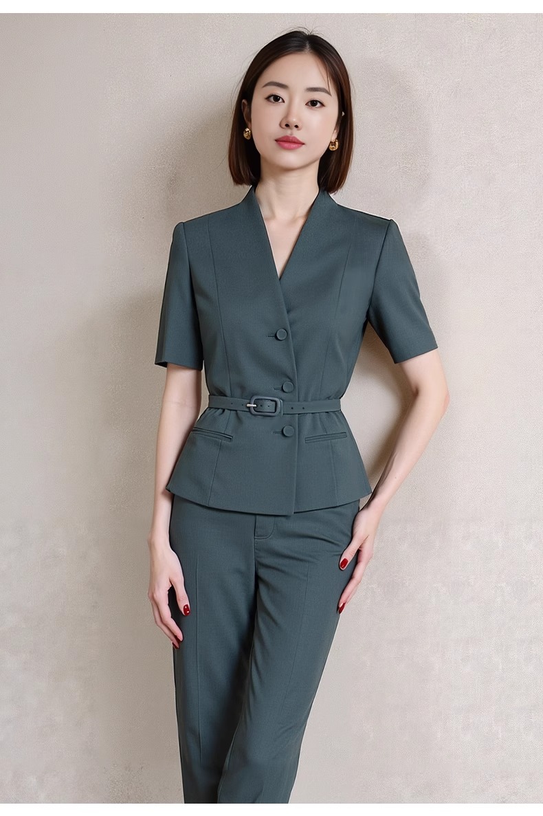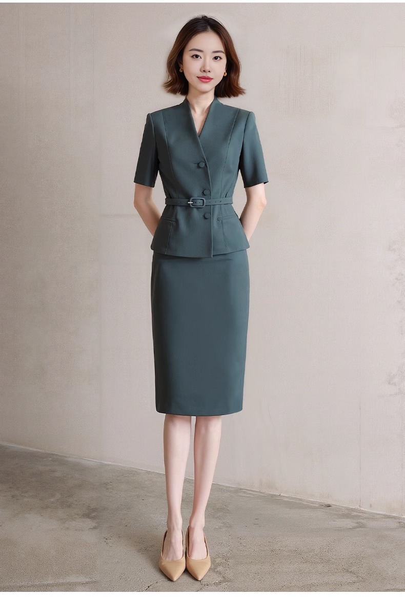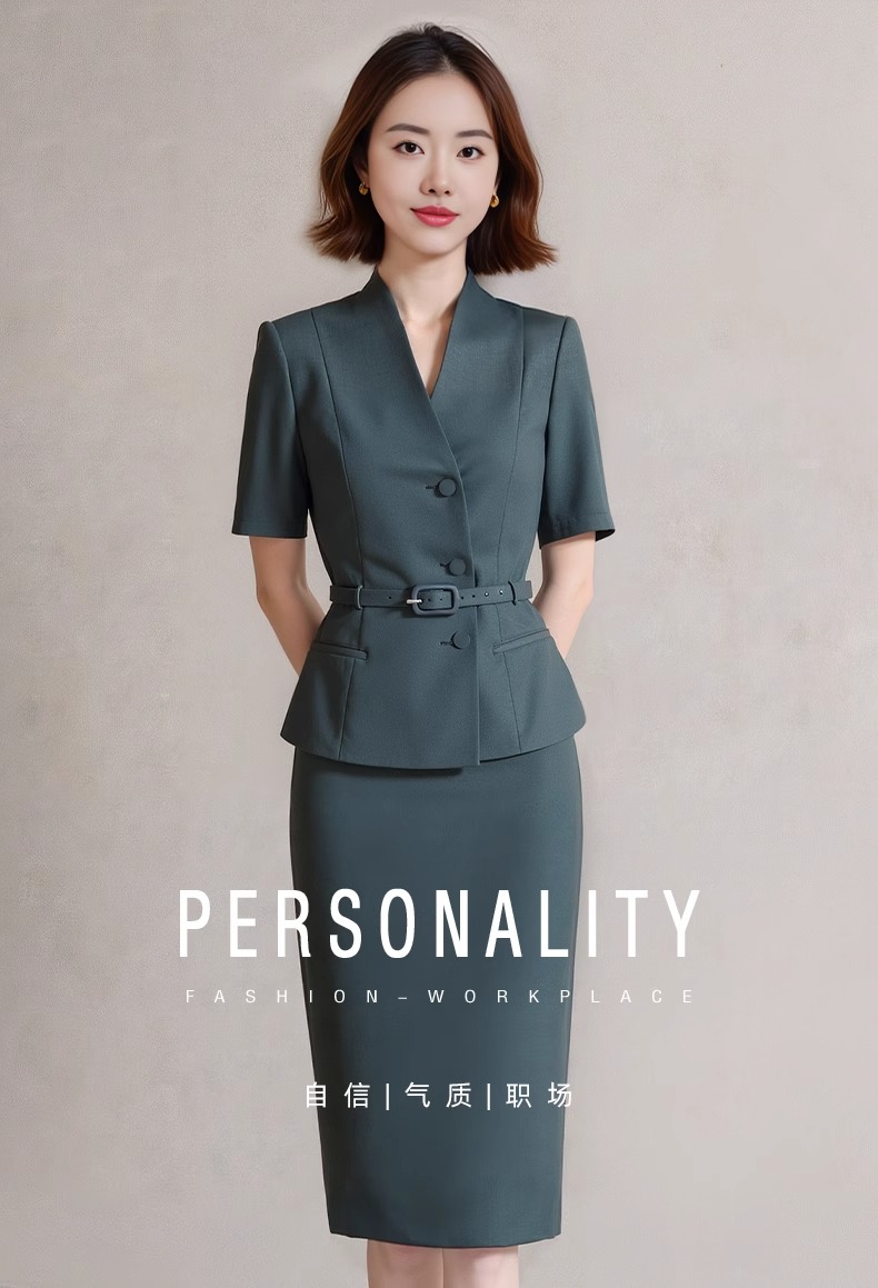 IWY/高智精英套裙_高级感灰绿色西装套装V领显瘦职业套裙女25CPS578