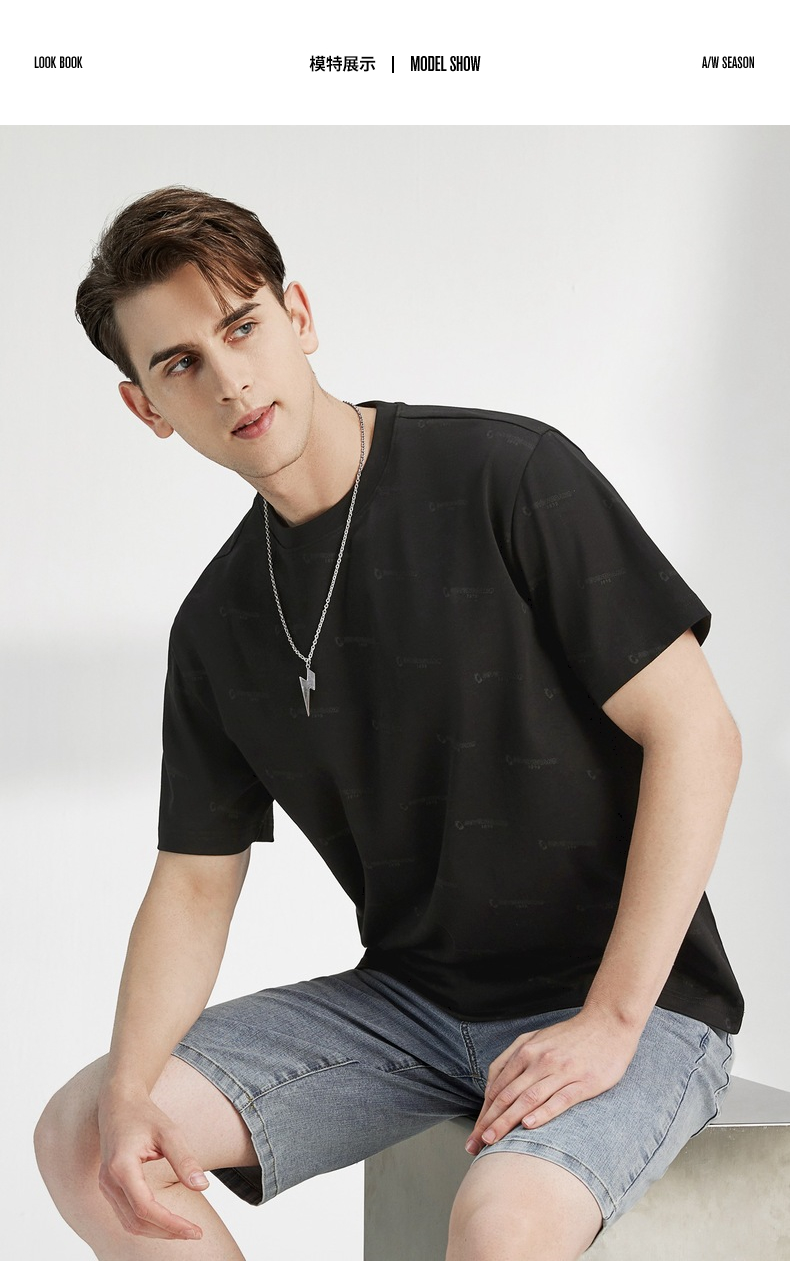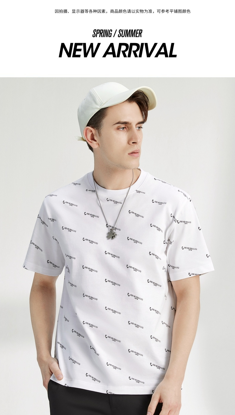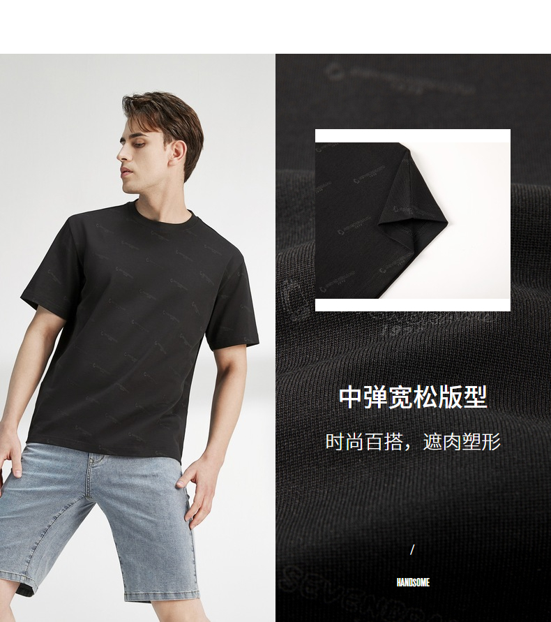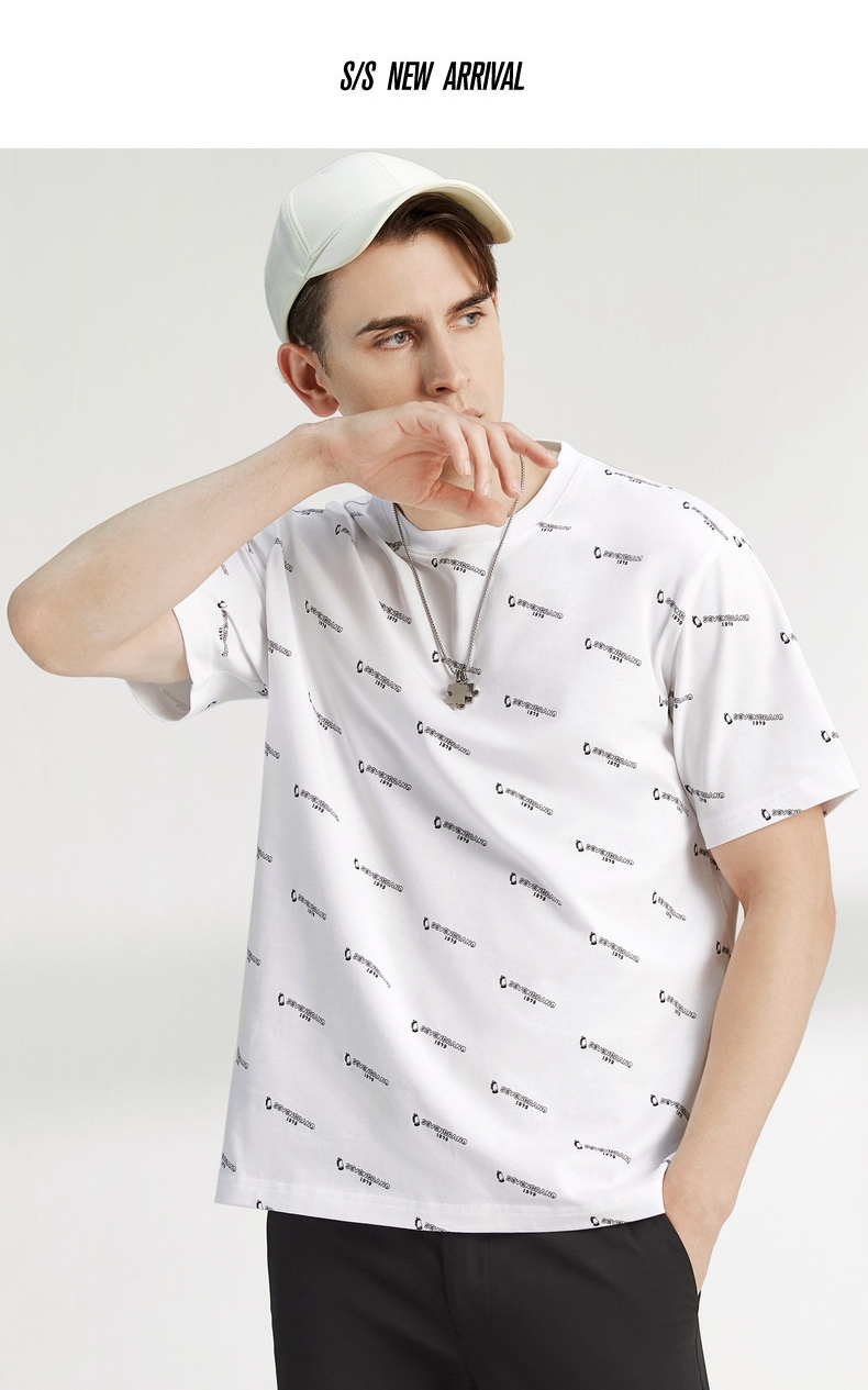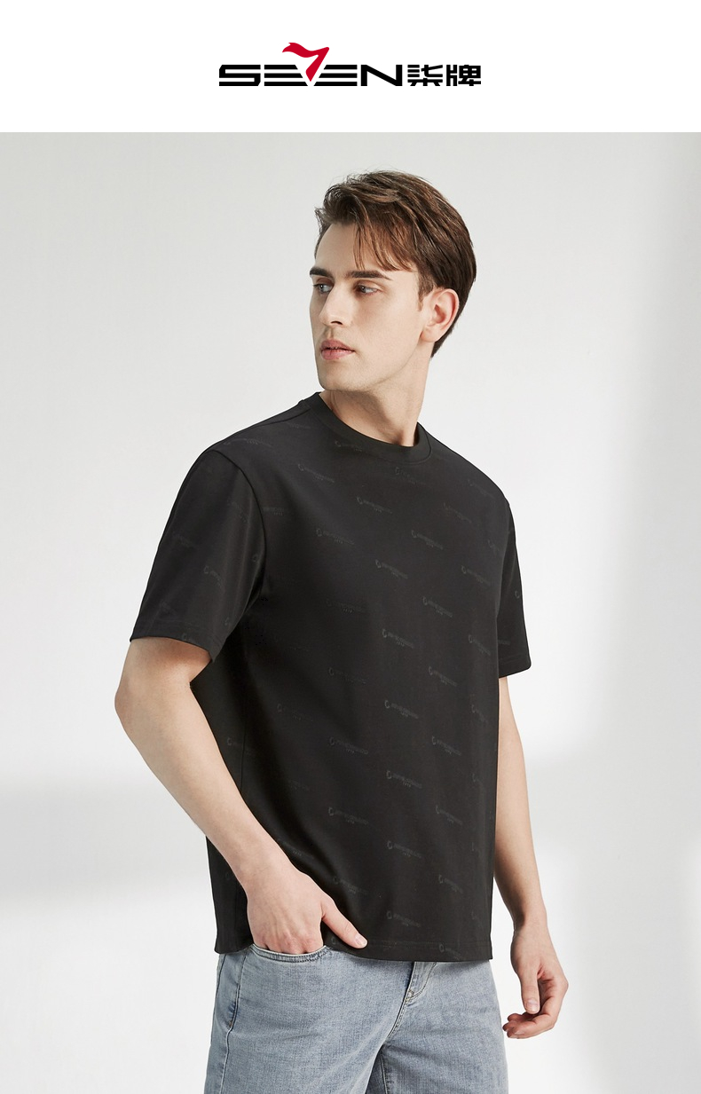 柒牌男装短袖t恤夏季新款纯棉圆领字母满印男休闲百搭宽松体恤衫 122T70970