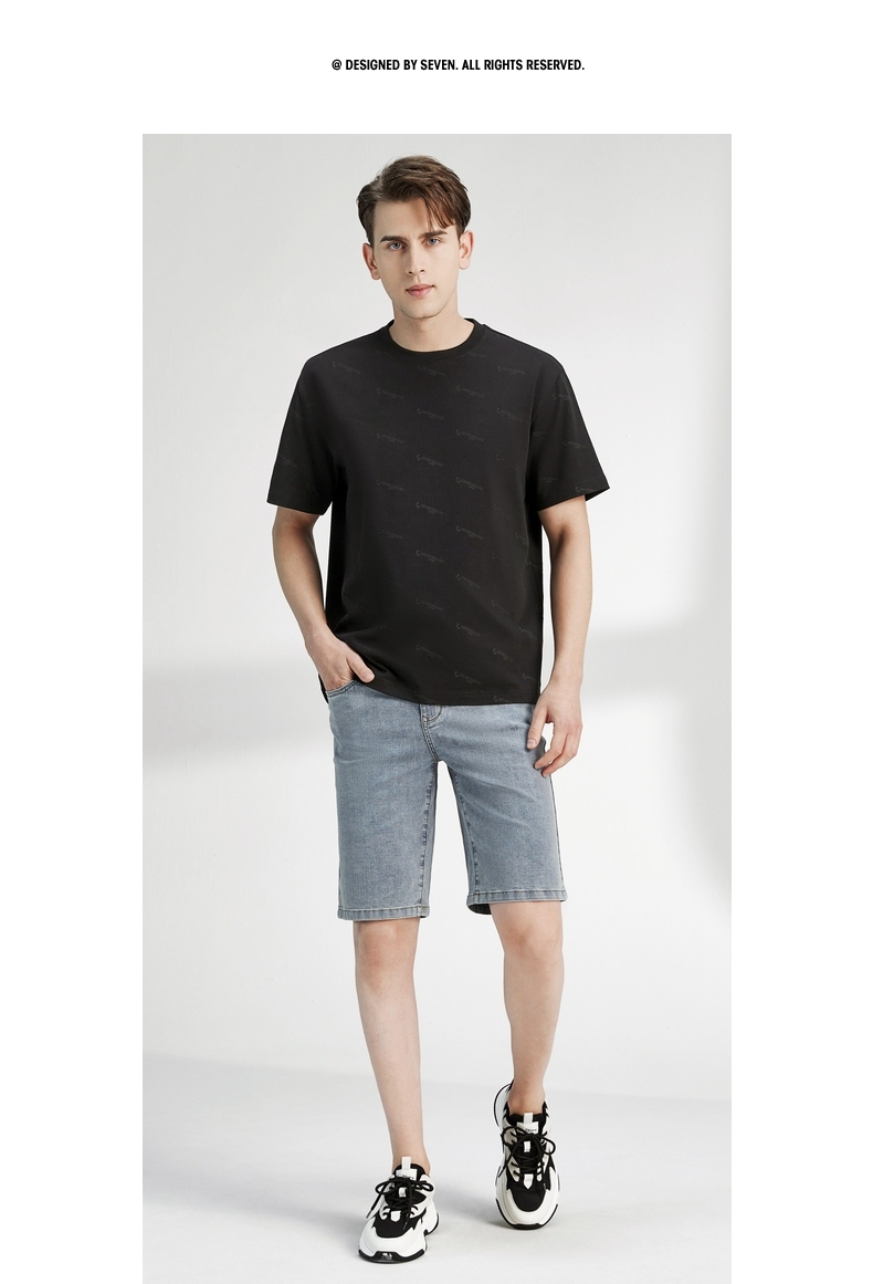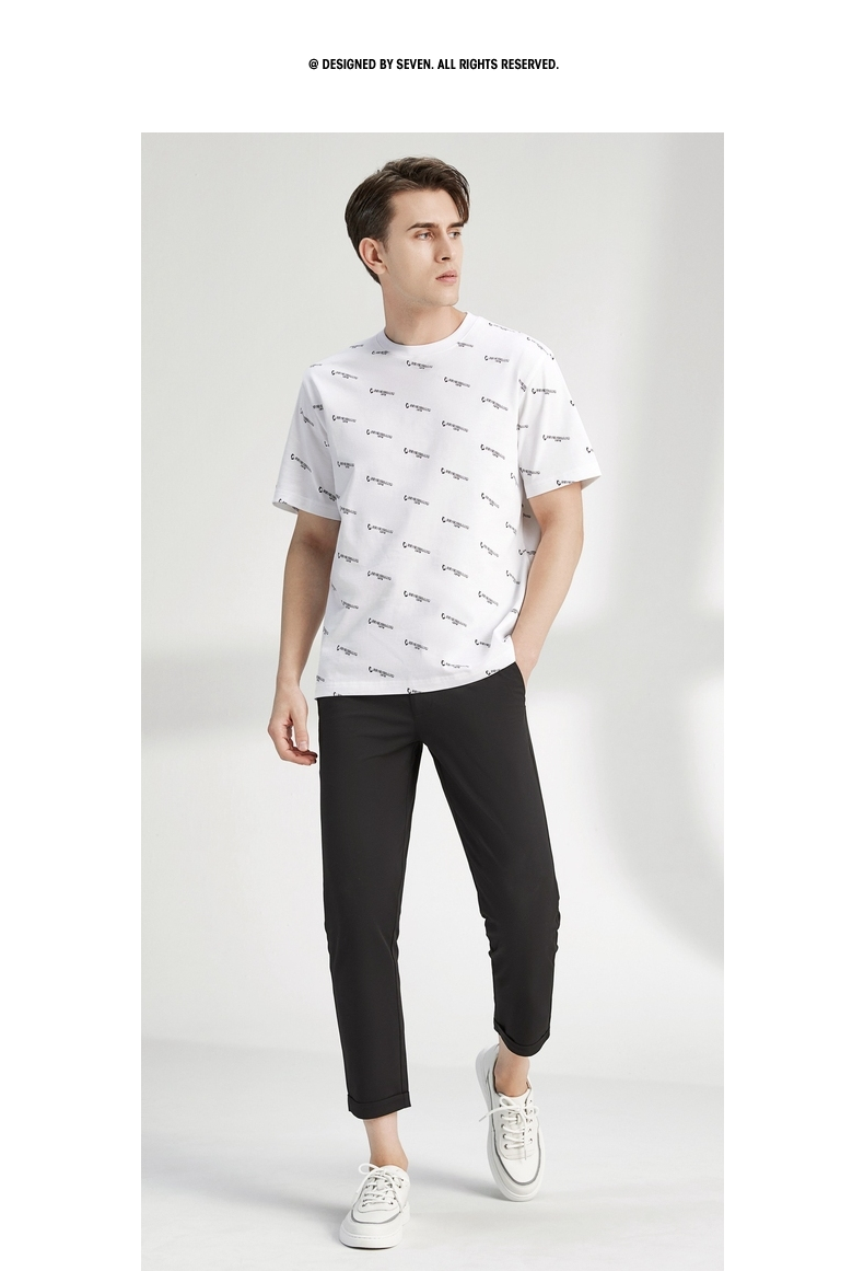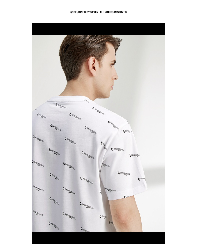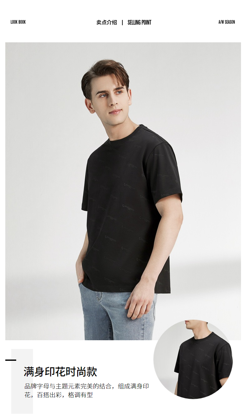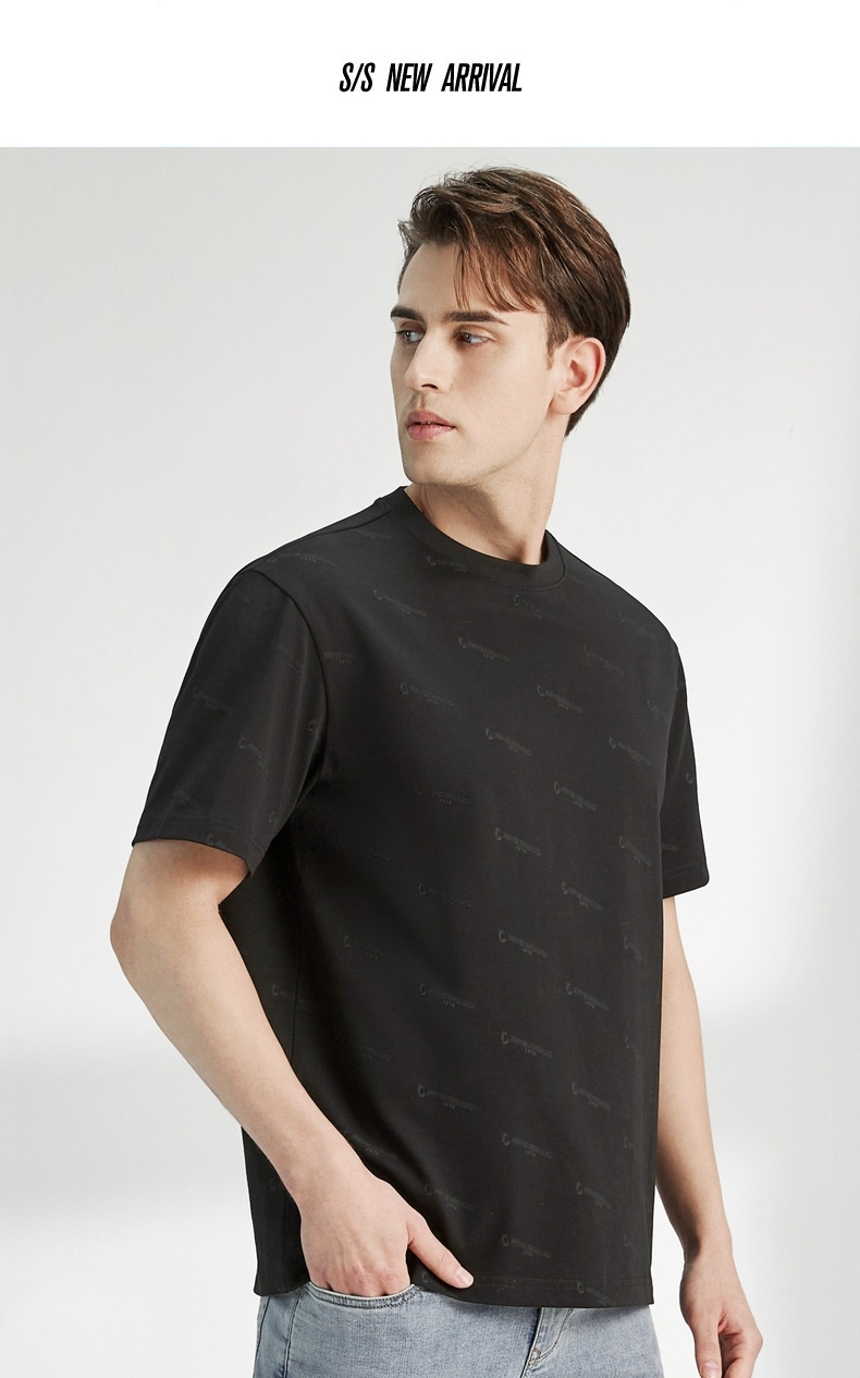 柒牌男装短袖t恤夏季新款纯棉圆领字母满印男休闲百搭宽松体恤衫 122T70970