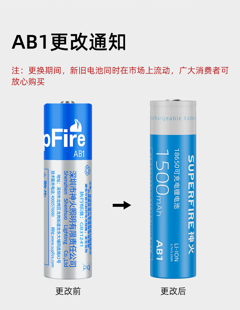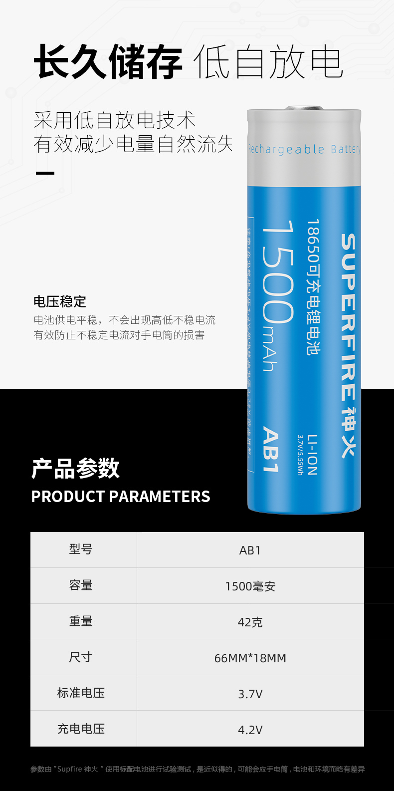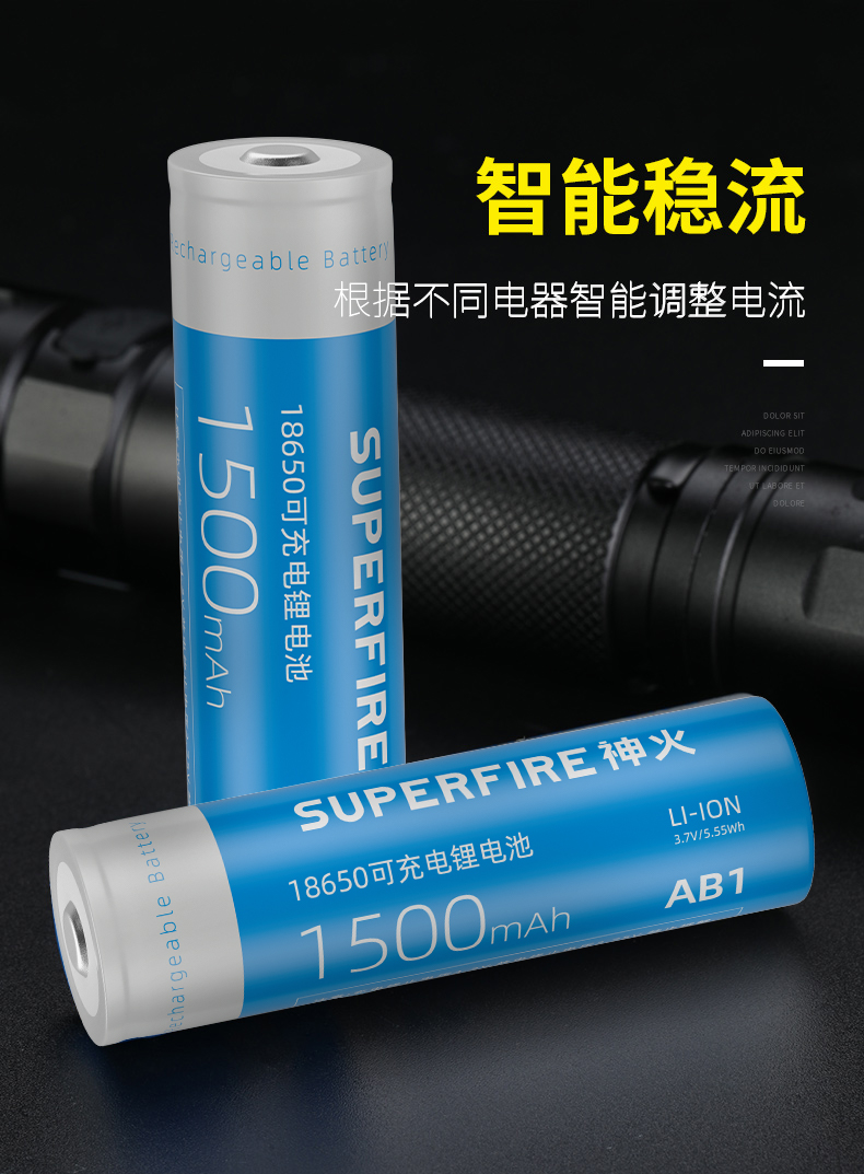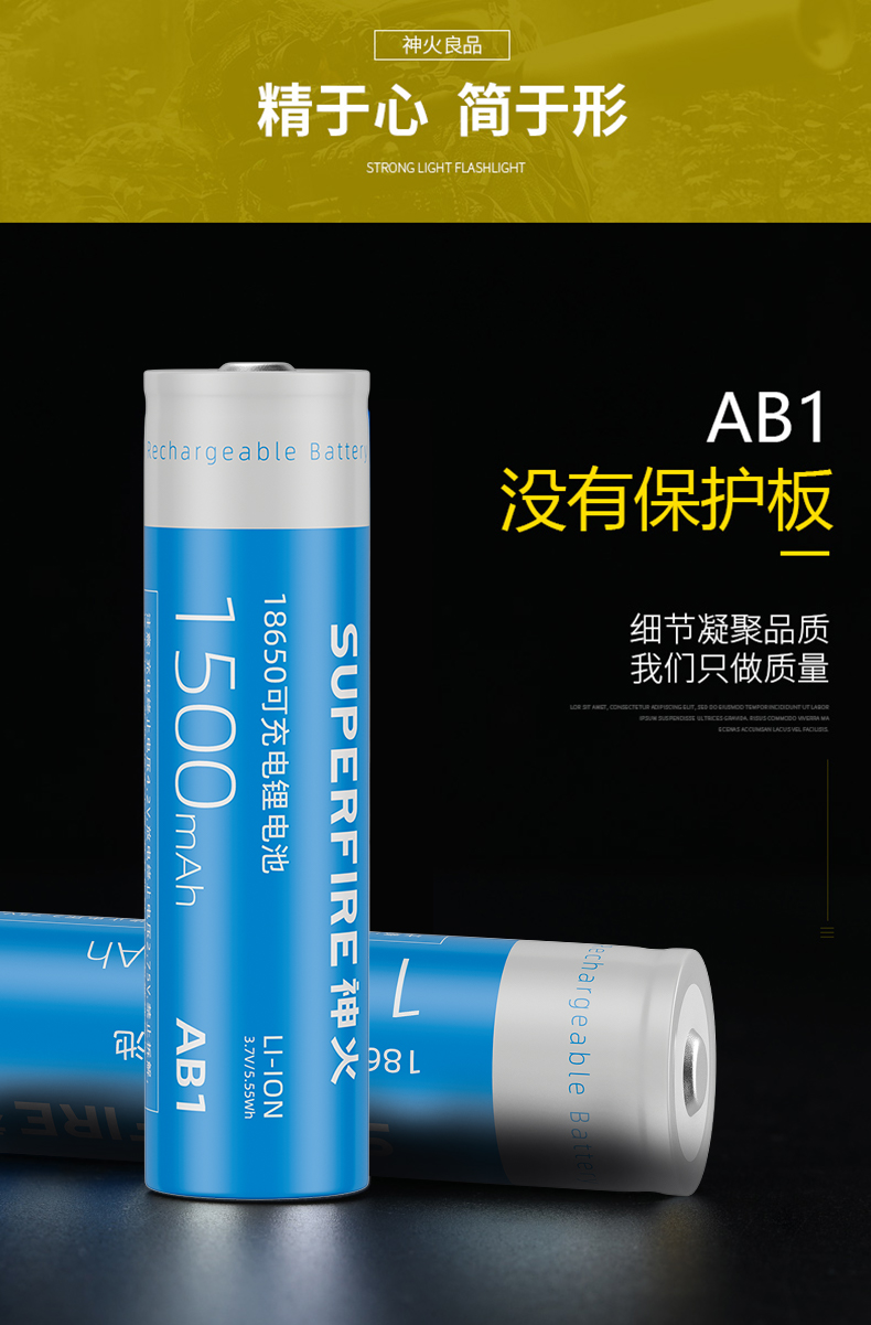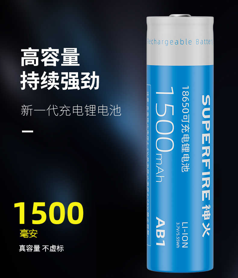 SUPERFIRE神火AB1锂电池原装正品18650电池3.7V强光手电筒充电电池