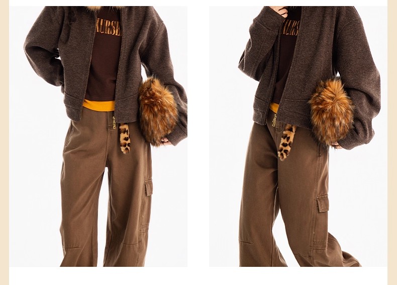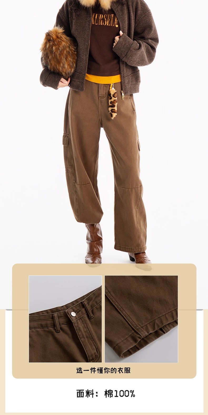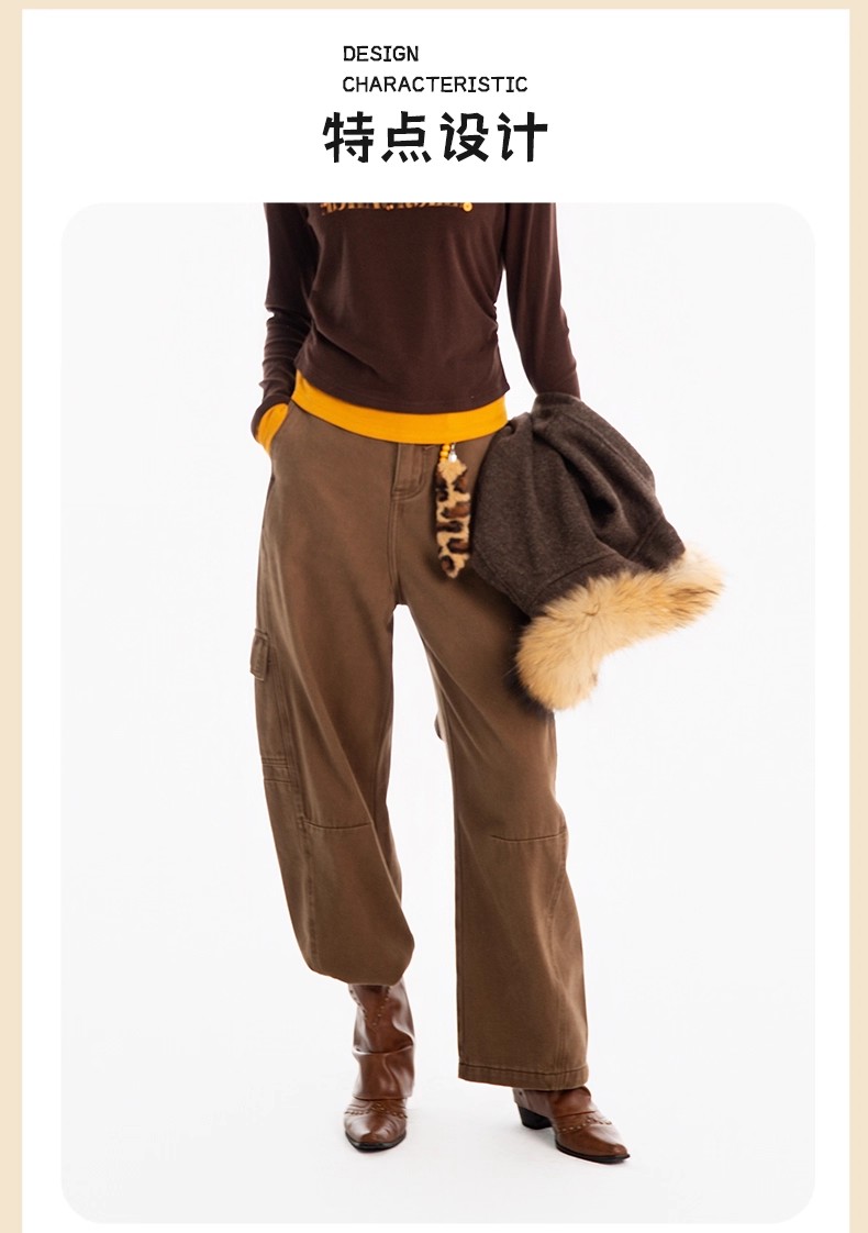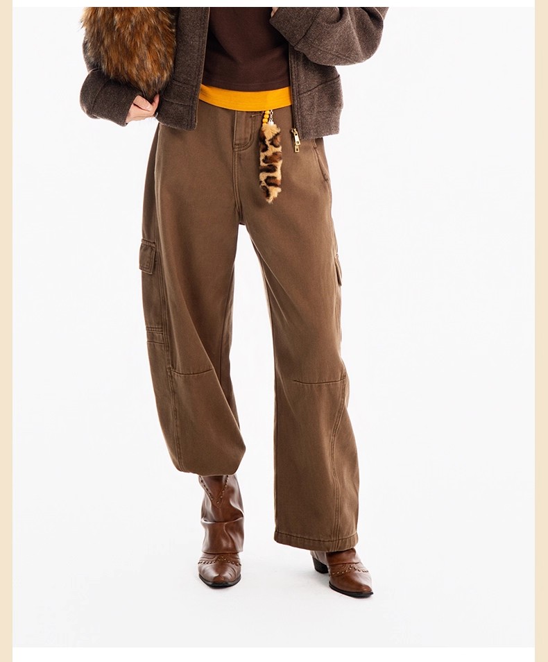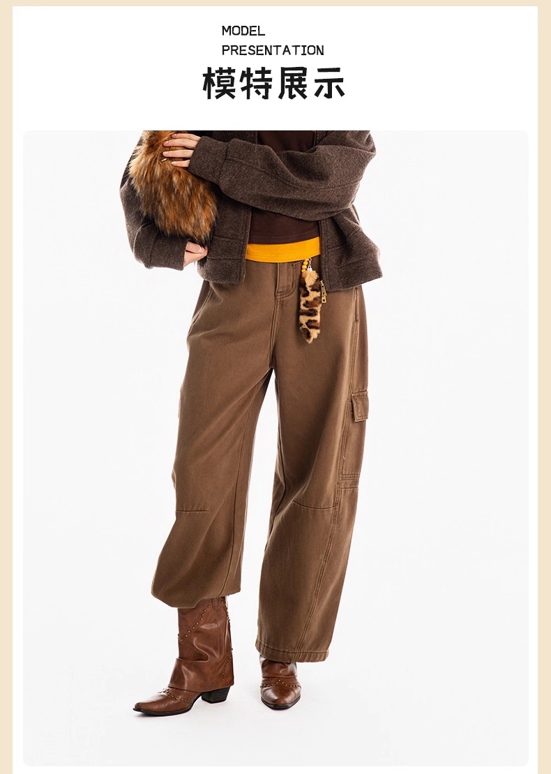 【门店同款】ENJOY冬季侧口袋磨毛工装弯刀裤 167450126