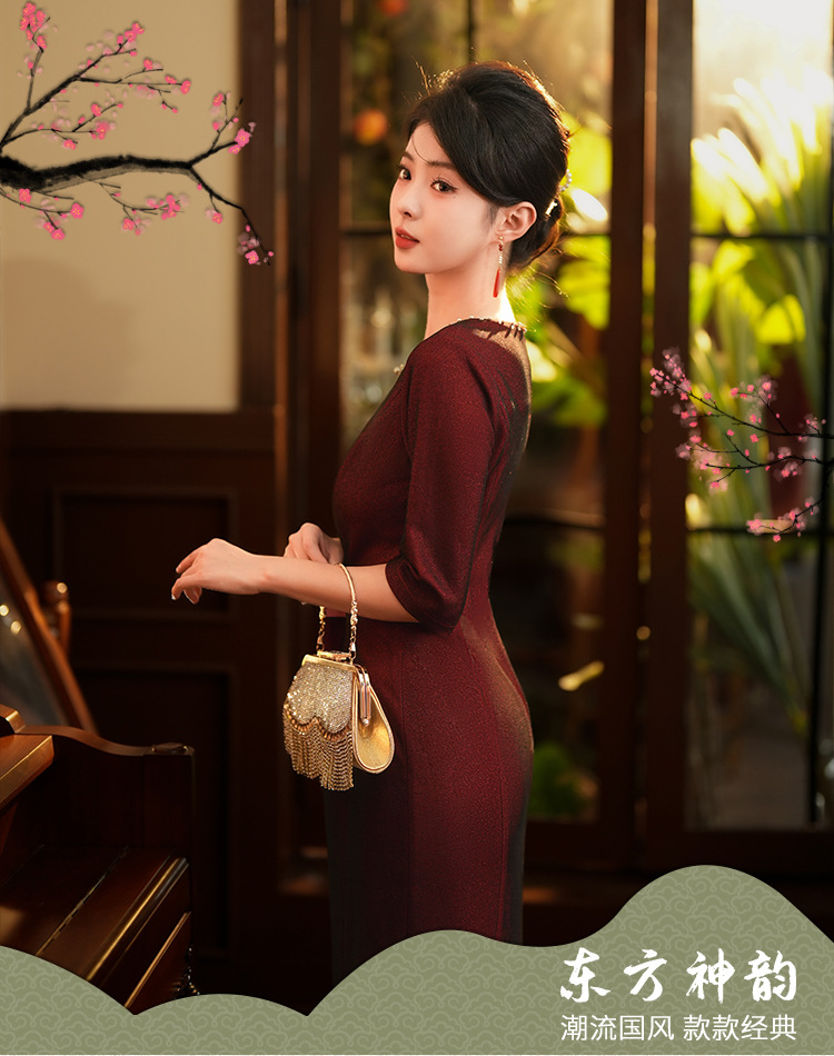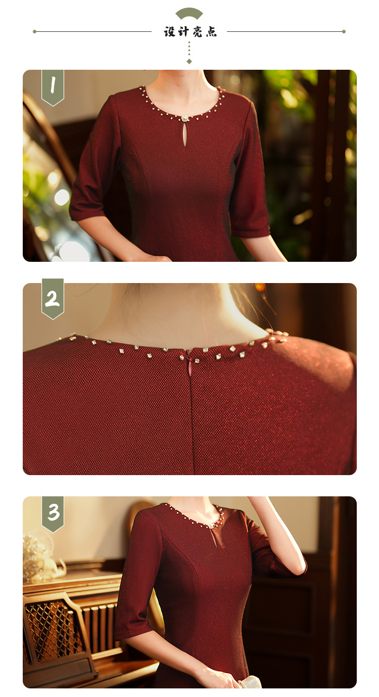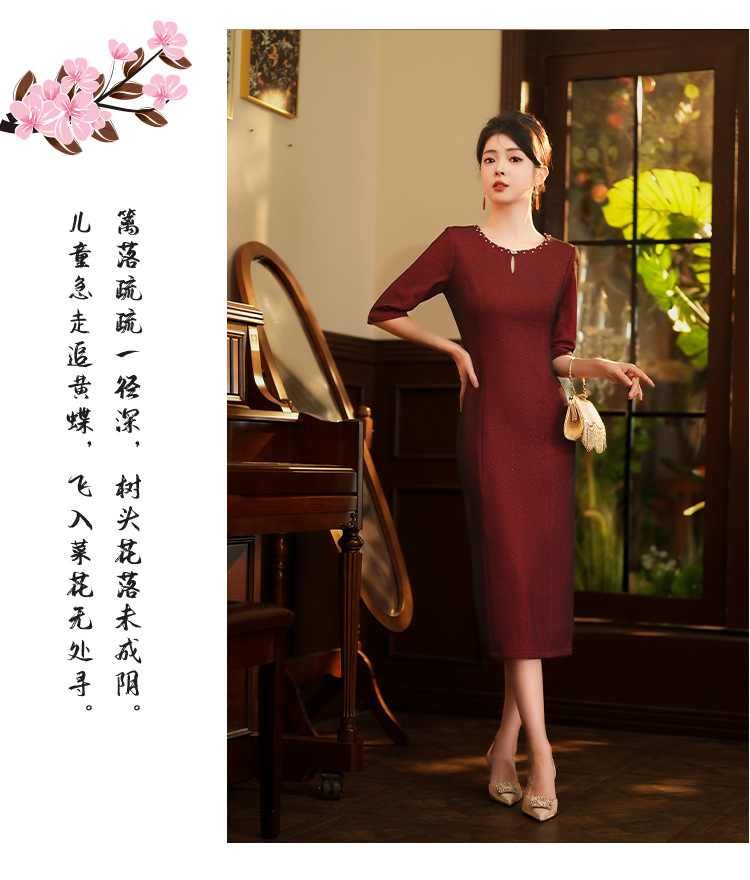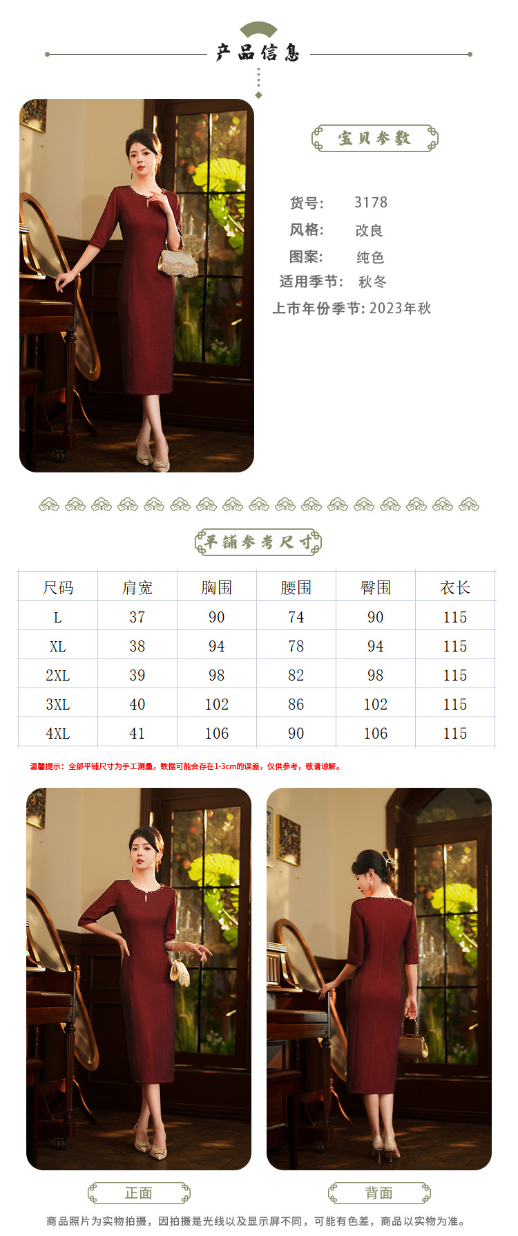 妈妈装秋冬款旗袍裙,小长款宴会装优雅气质旗袍裙单层复古旗袍JLM-3178