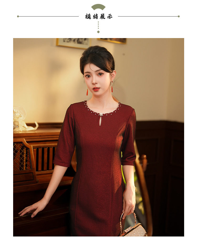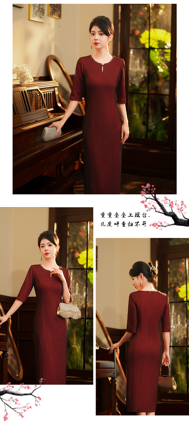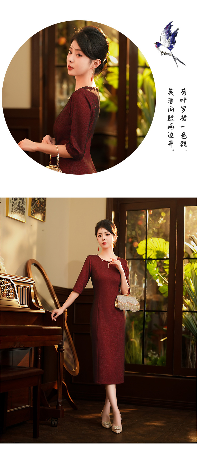 妈妈装秋冬款旗袍裙,小长款宴会装优雅气质旗袍裙单层复古旗袍JLM-3178