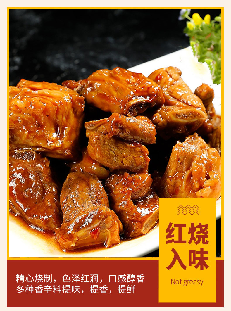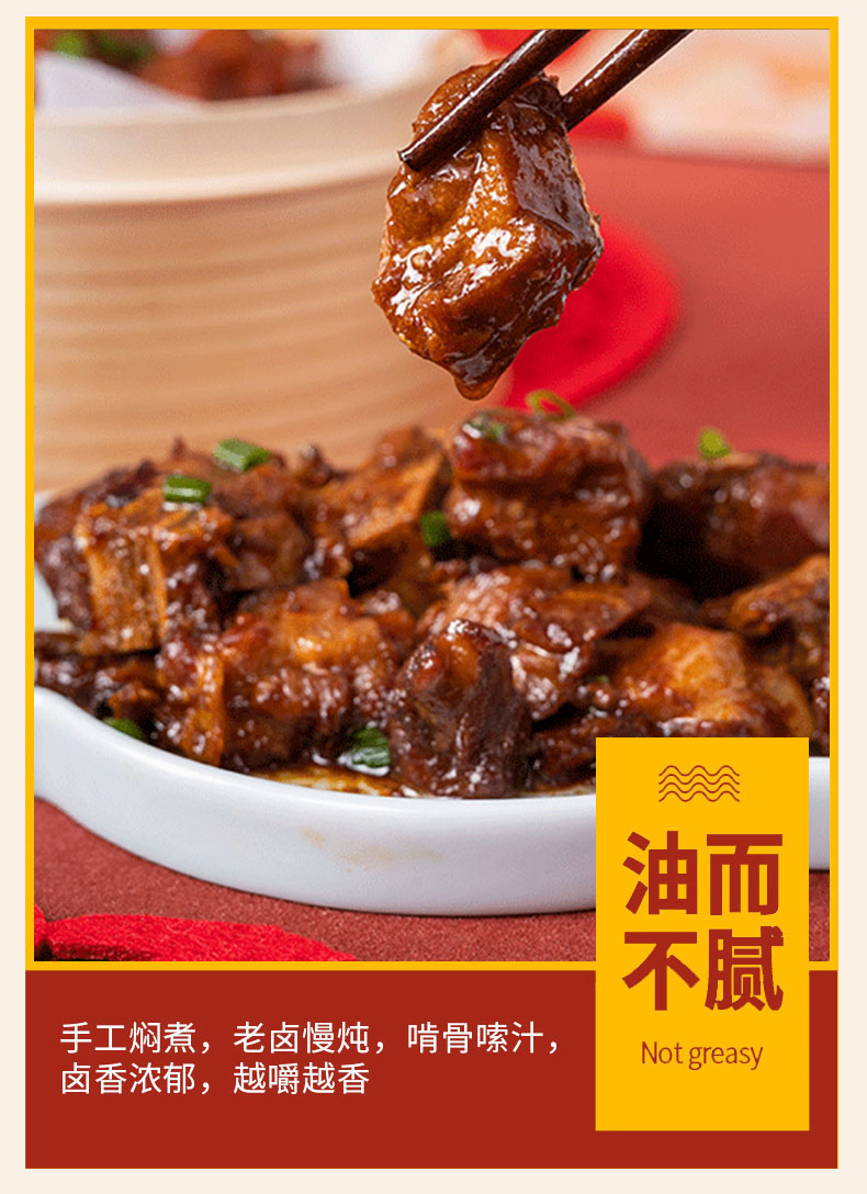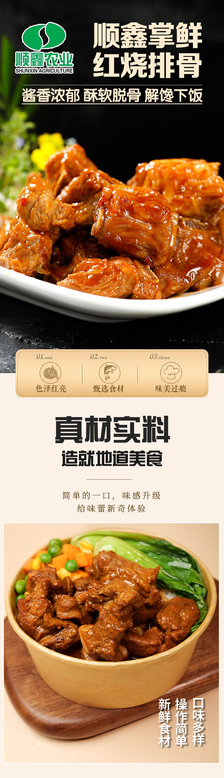 顺鑫掌鲜·红烧排骨,12袋组合,顺鑫精选优质排骨,低脂低盐健康配方,多味香辛料调制,提鲜,红烧入味,色泽红润,肉多骨少,酱香浓郁,酥软脱骨,解馋下饭D