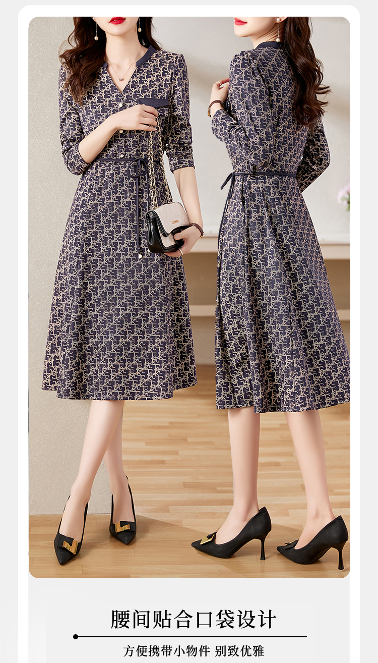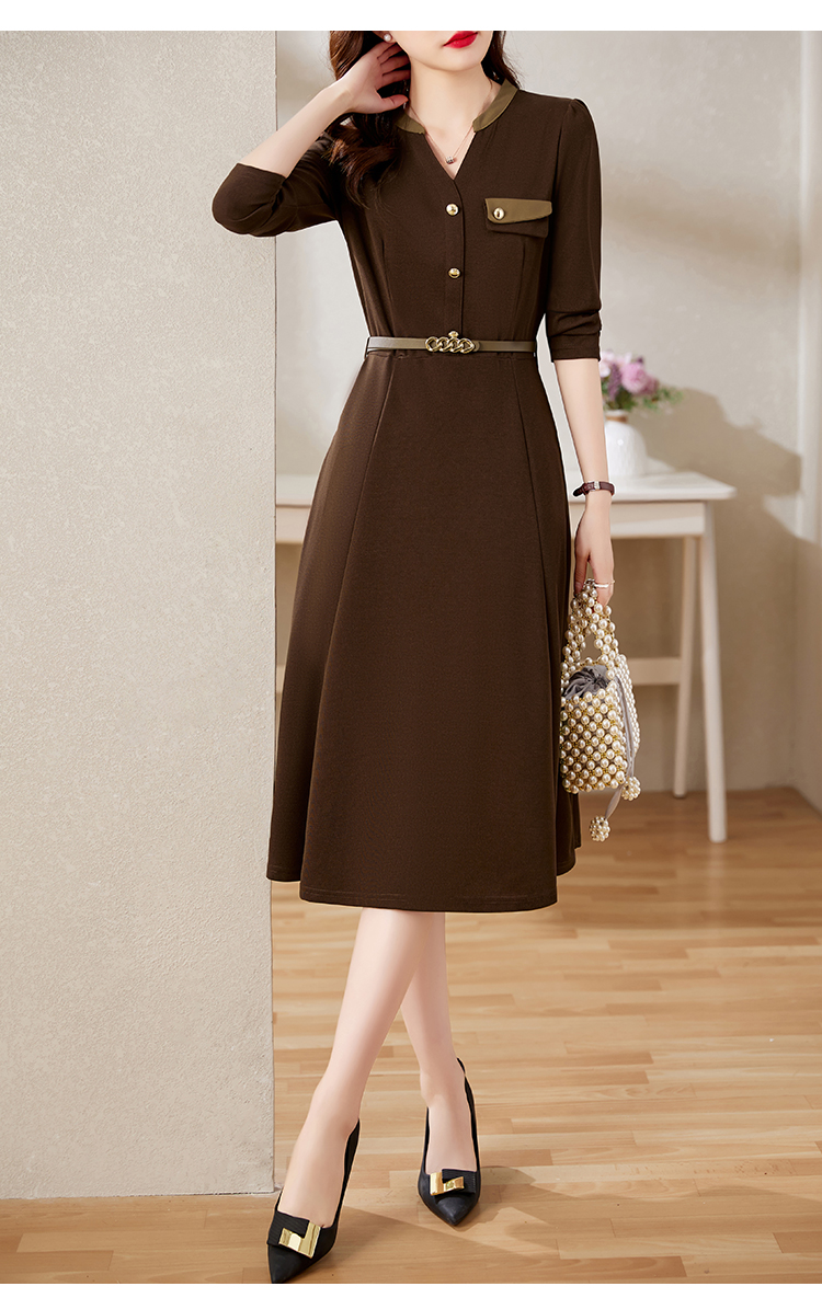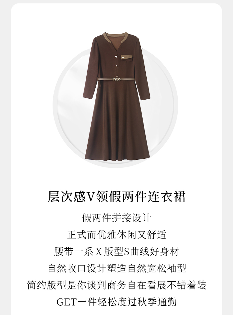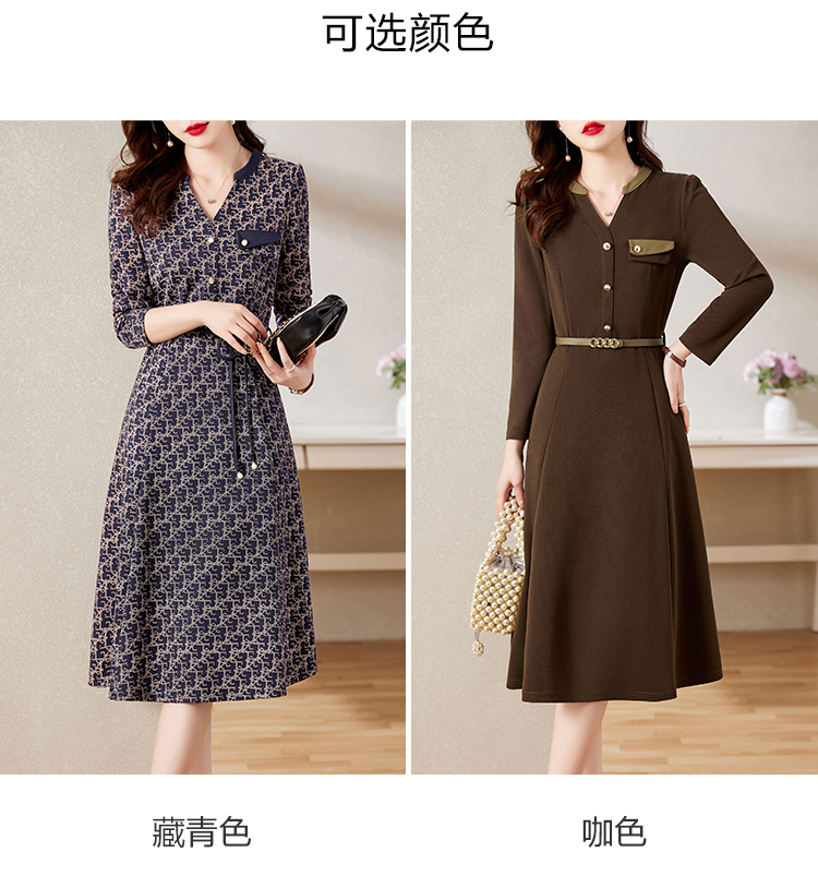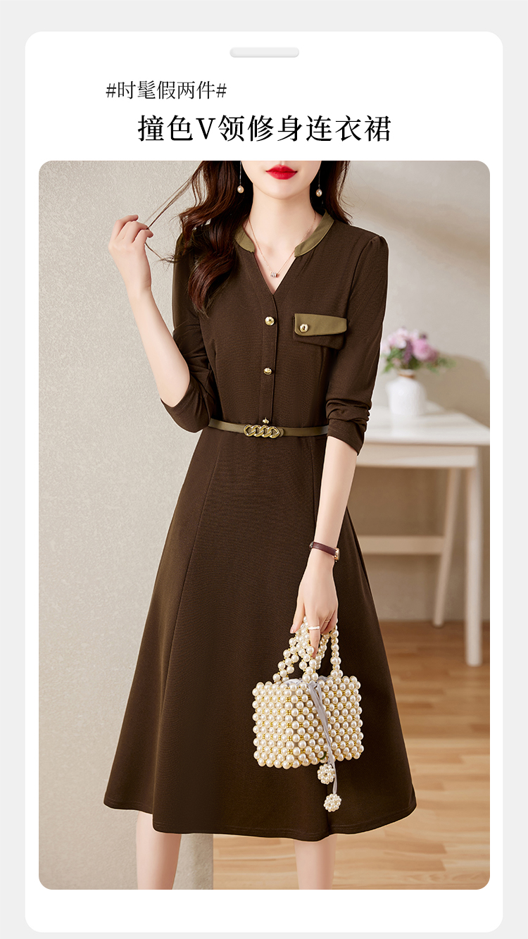 时尚修身,V领修身显瘦连衣裙(配腰带)HR-LEYX8902-1