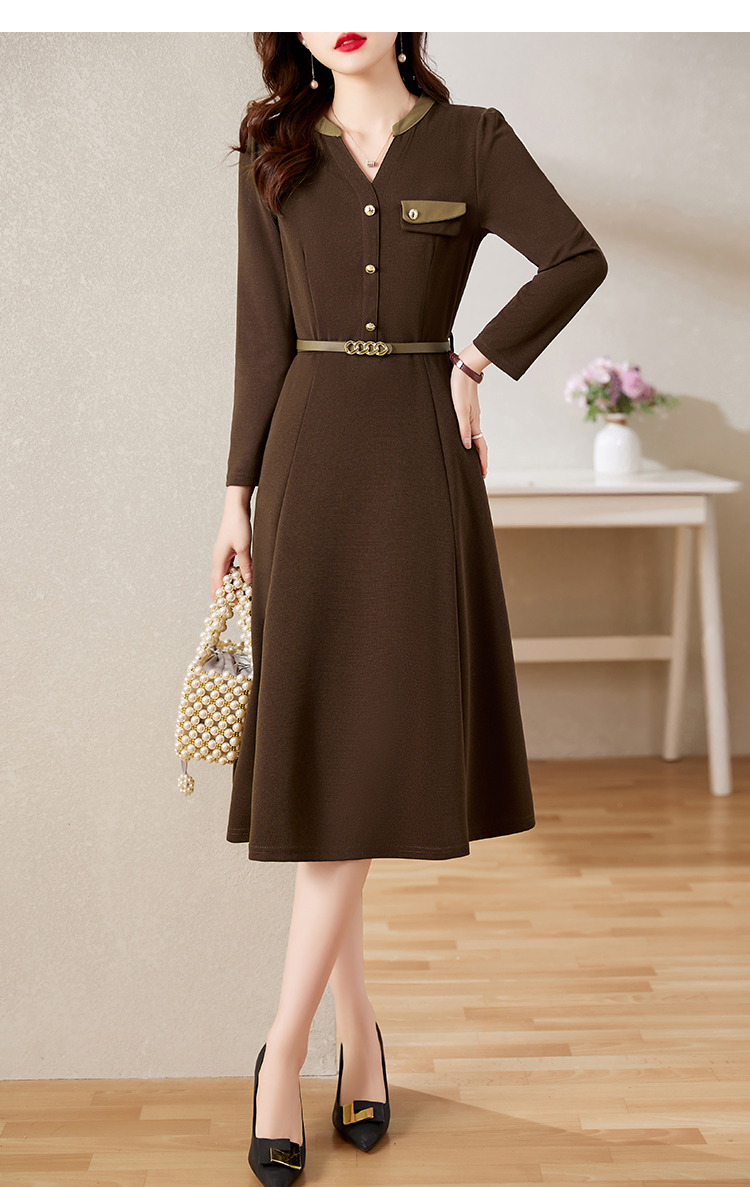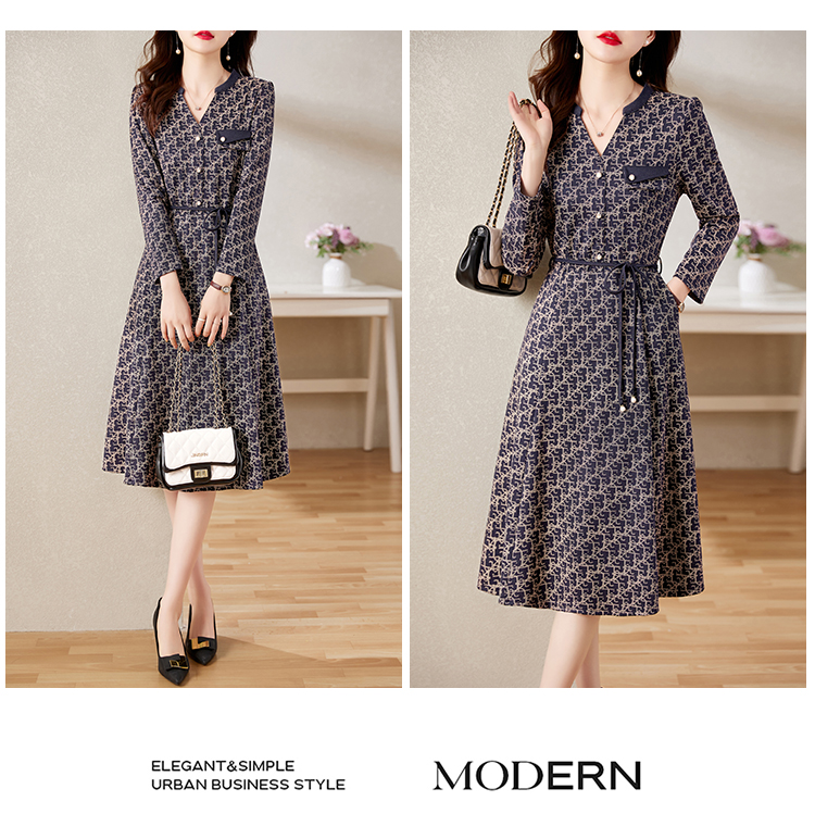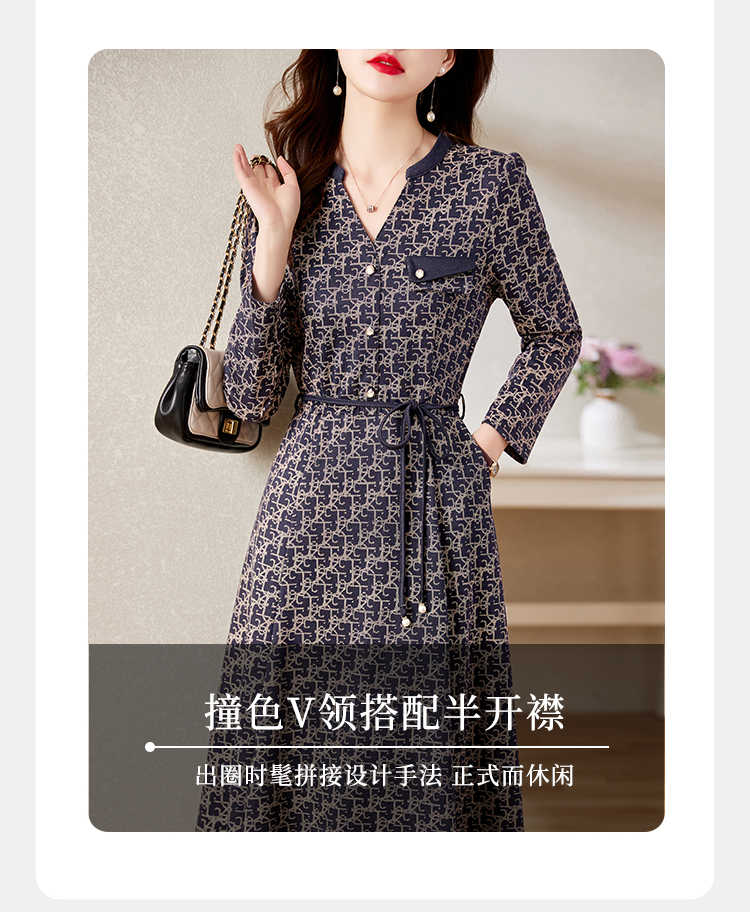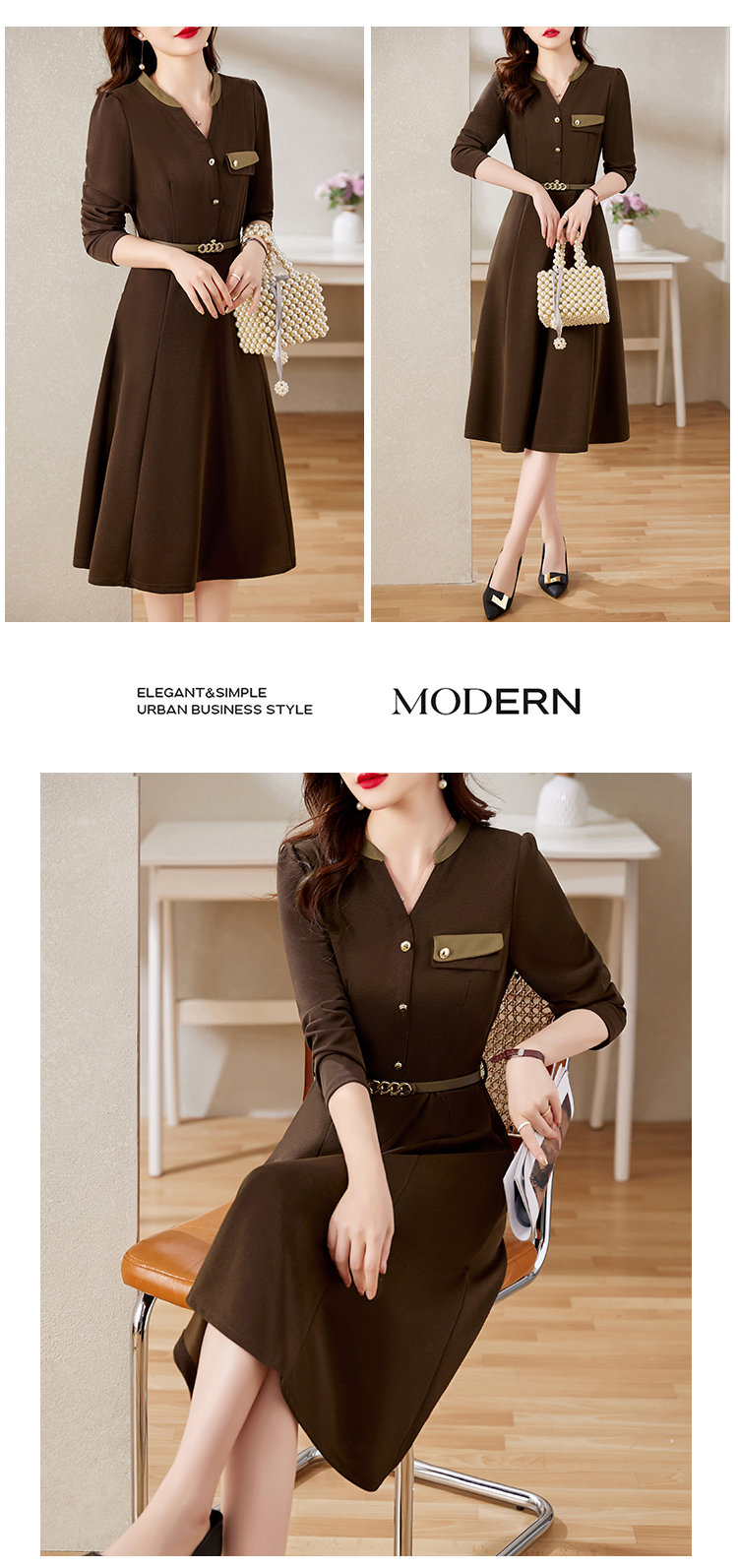 时尚修身,V领修身显瘦连衣裙(配腰带)HR-LEYX8902-1