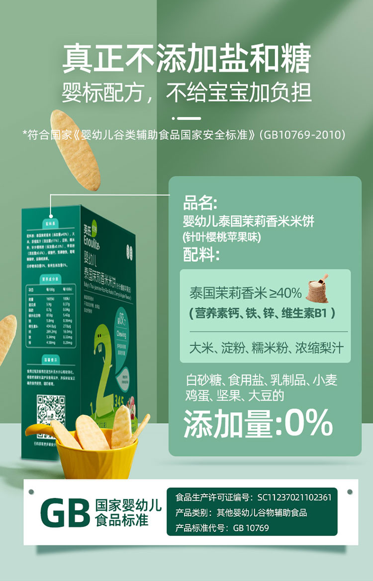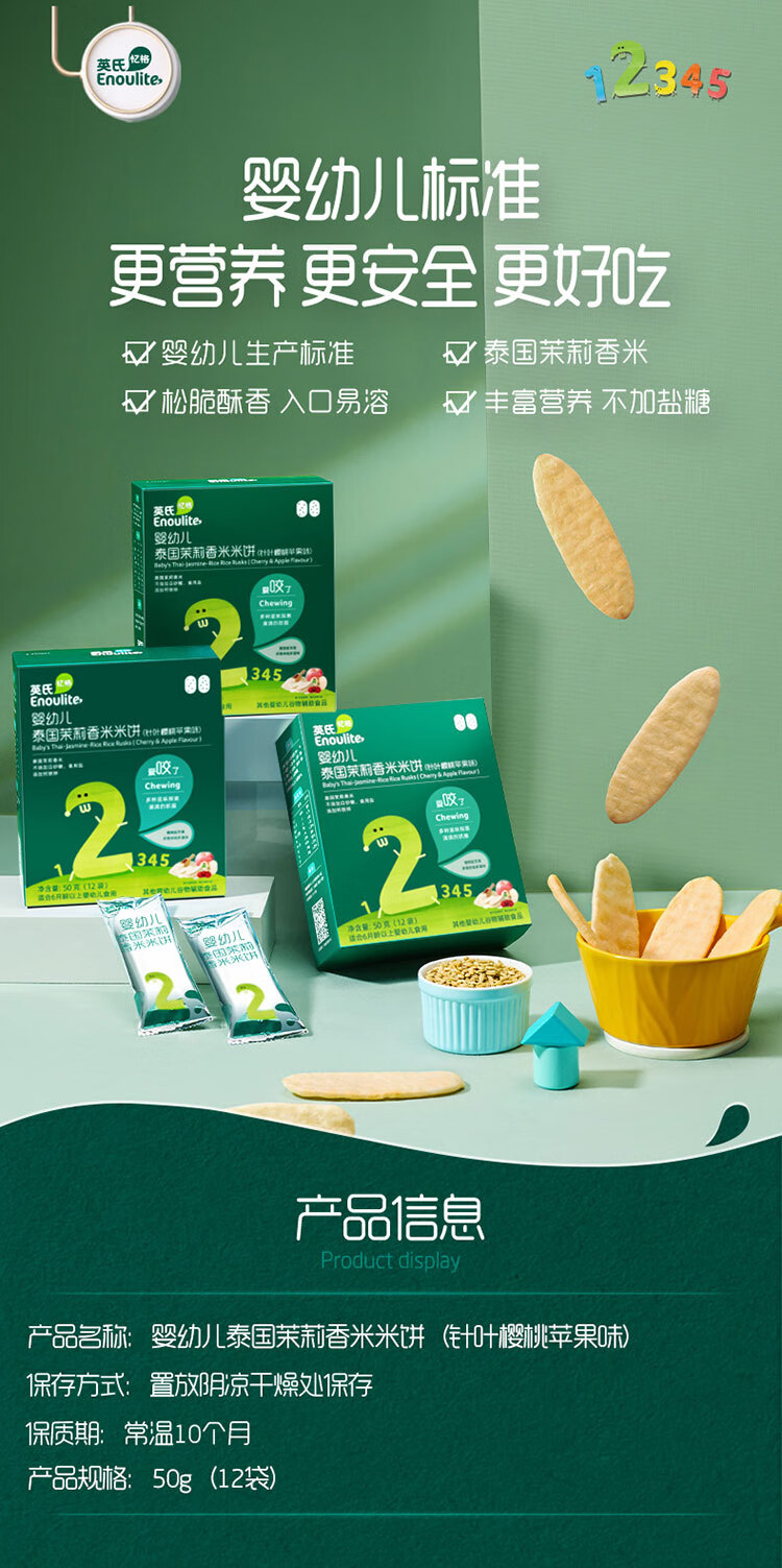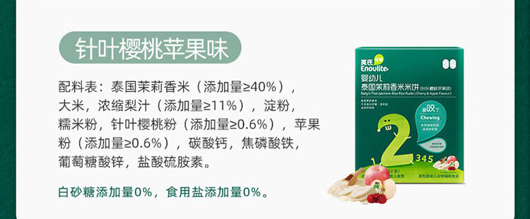 英氏婴幼儿茉莉香米米饼针叶樱桃 50g/盒