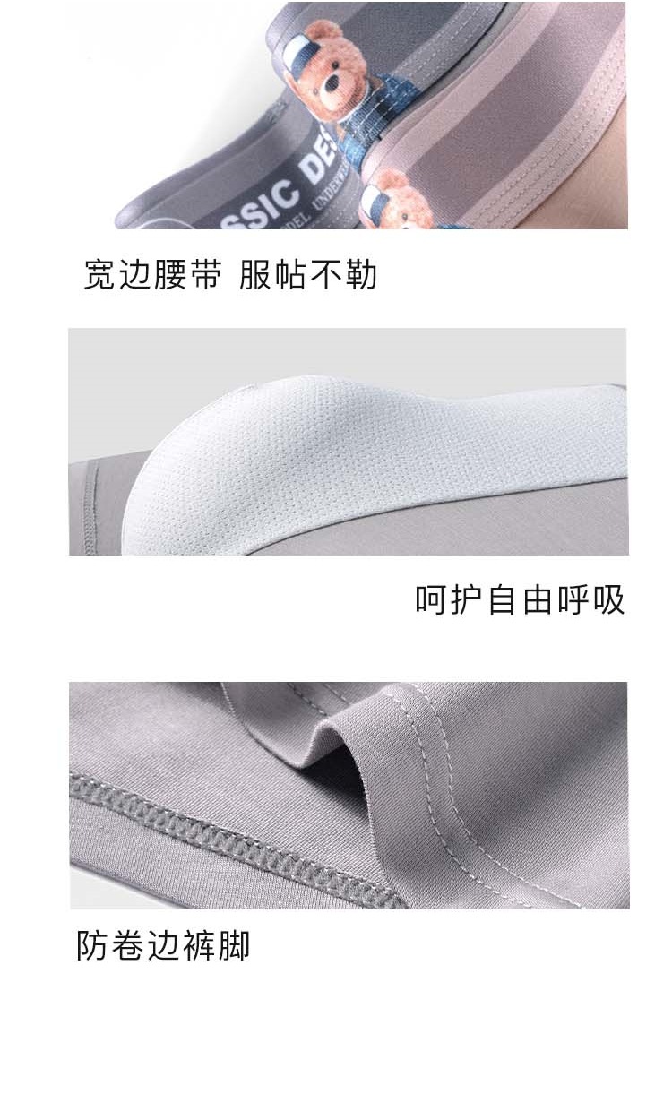 【印花腰带!打破单调】莫代尔男士内裤春夏透气抑菌平角裤裤衩大码男生宽松轻薄四角短裤。ry