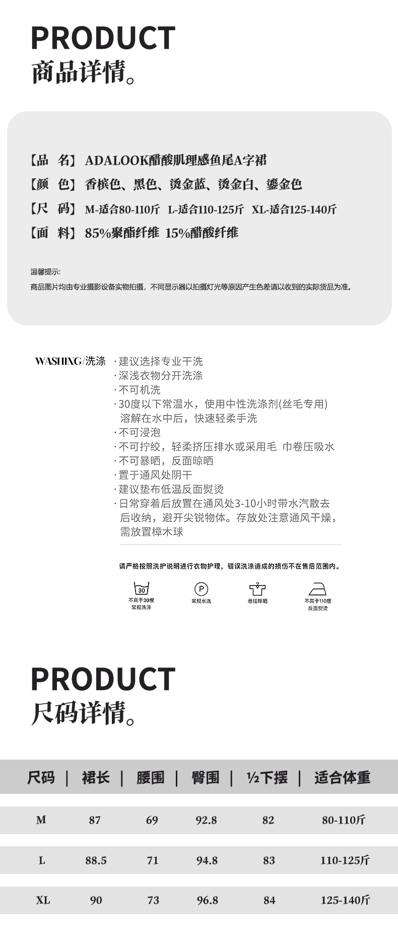 【ADALOOK】醋酸肌理感鱼尾A字裙