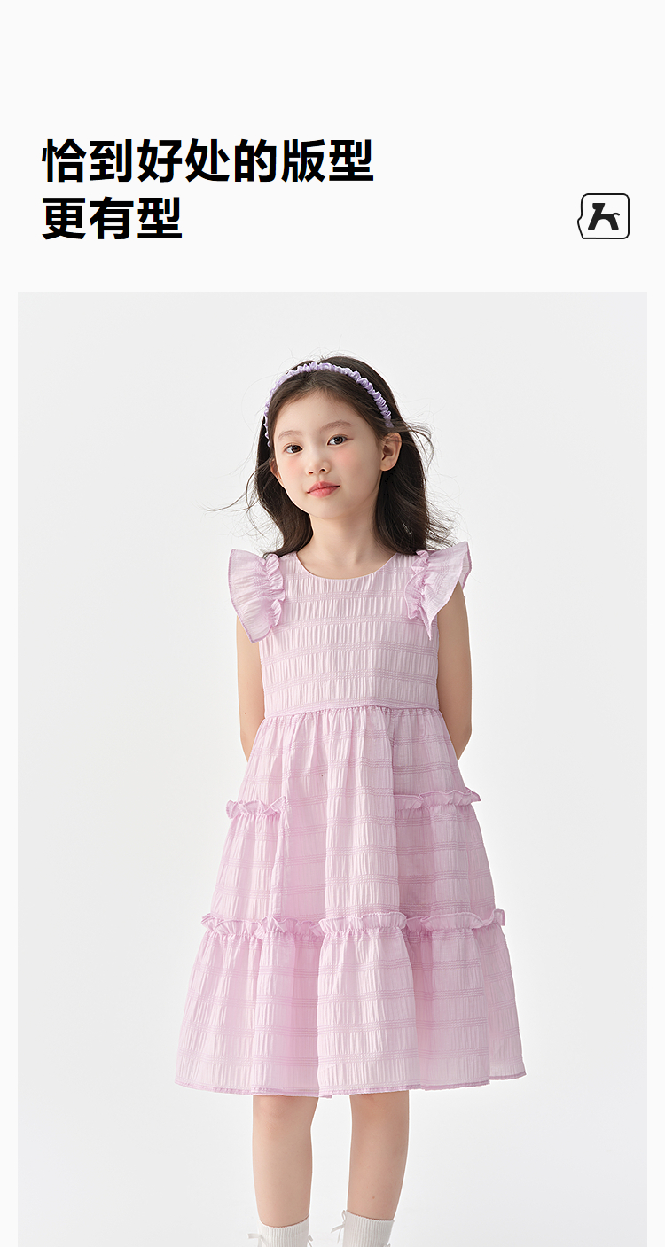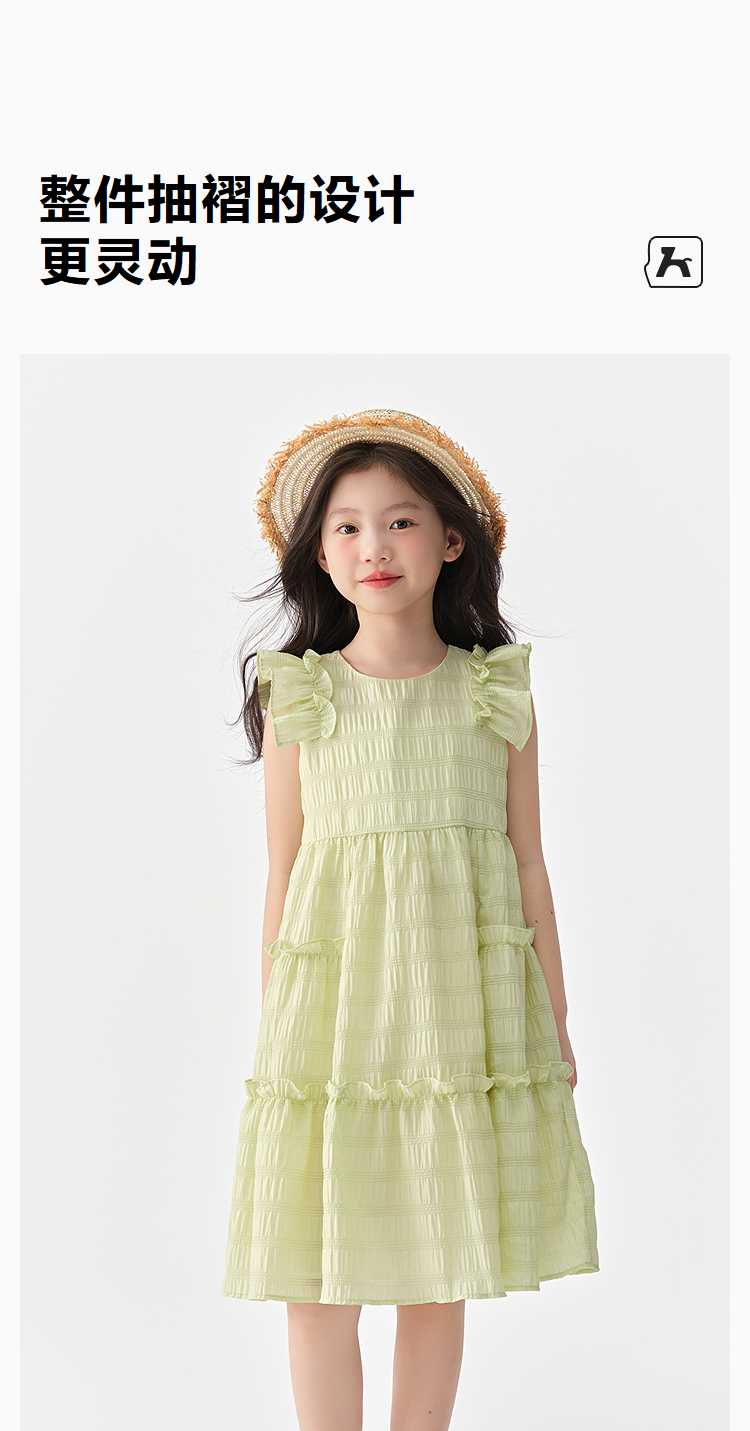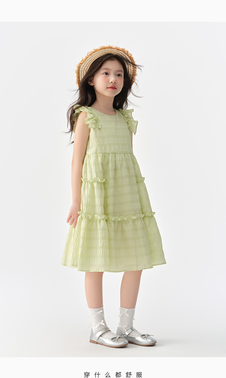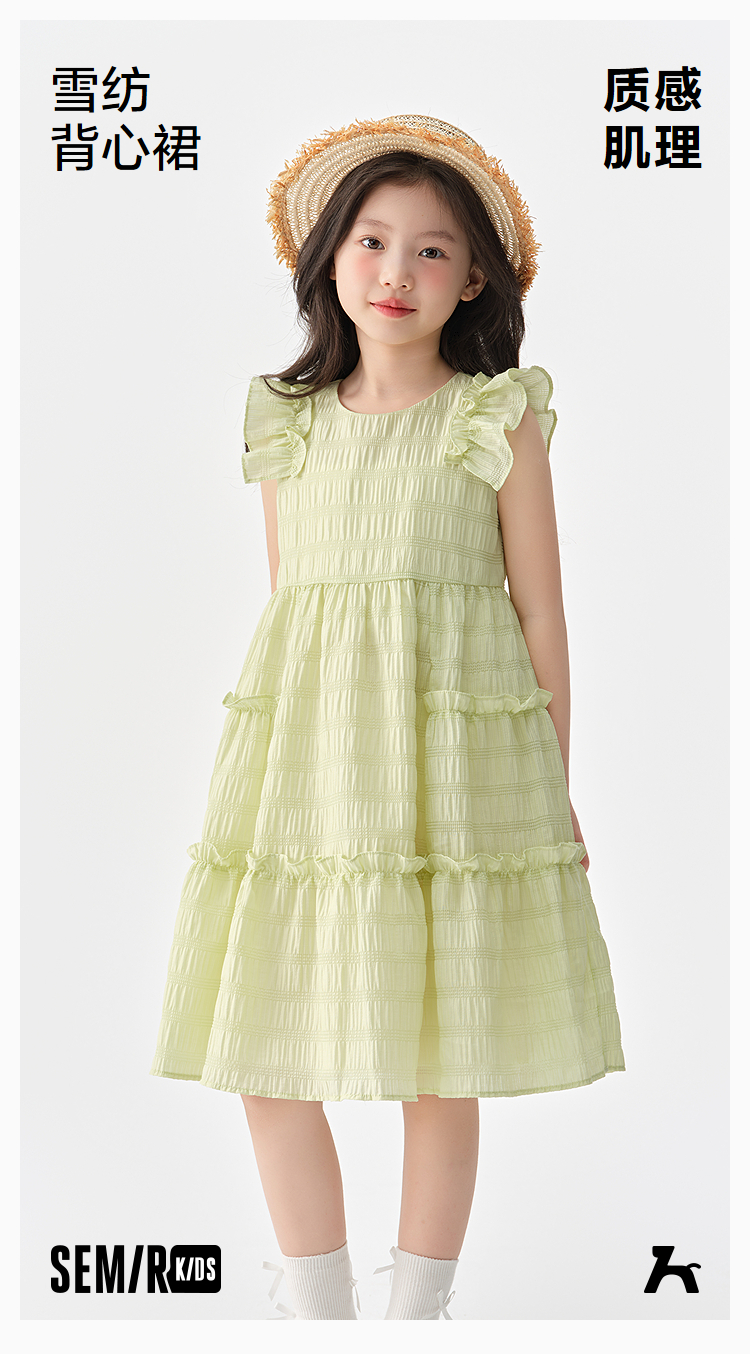 森马儿童连衣裙2025夏季新款雪纺裙女童背心裙小飞袖裙子甜美纯色