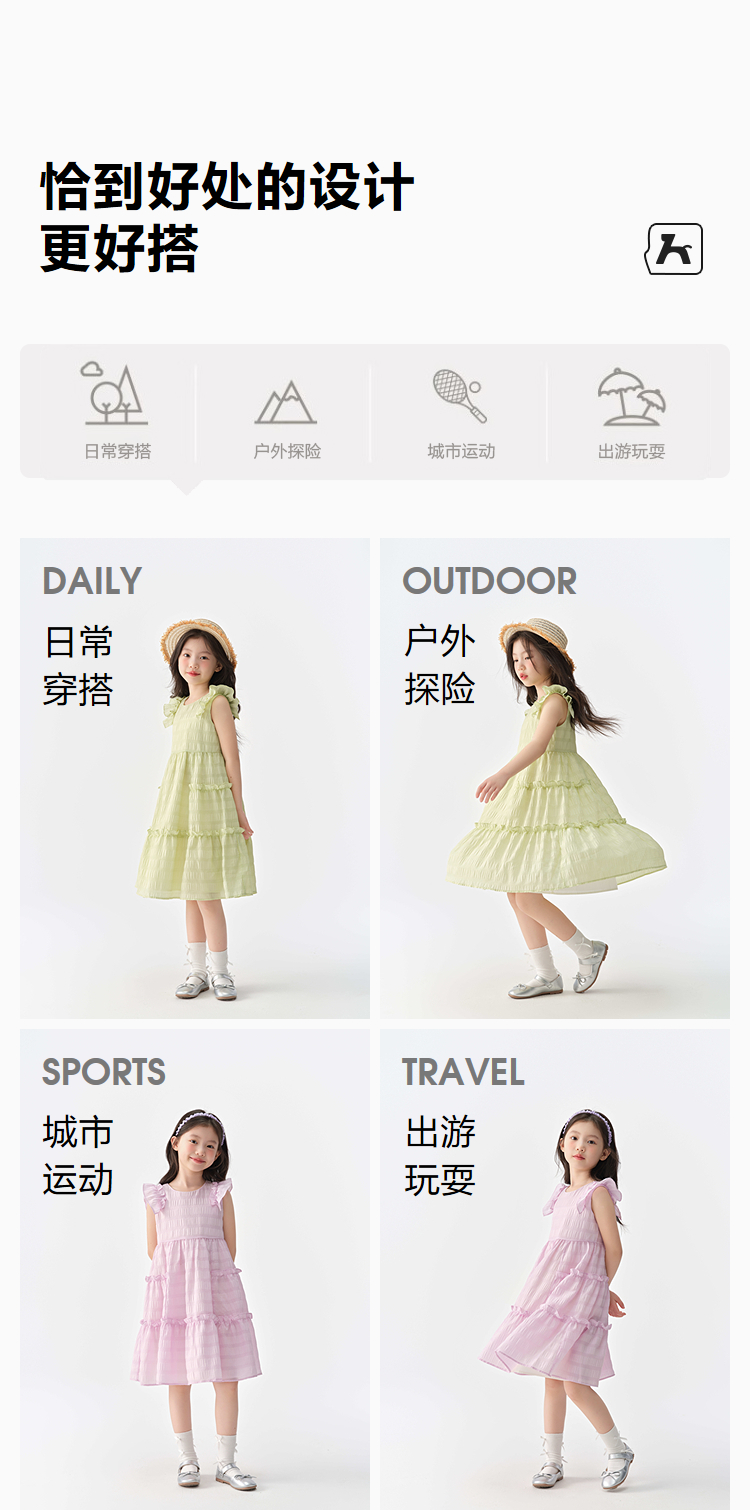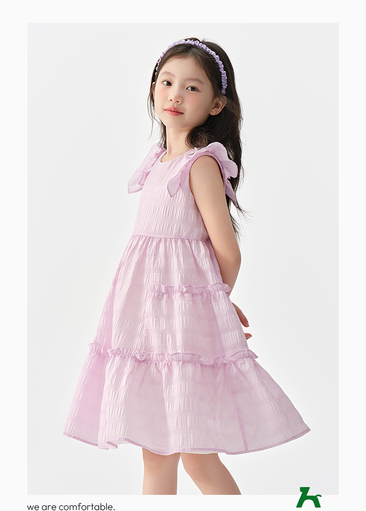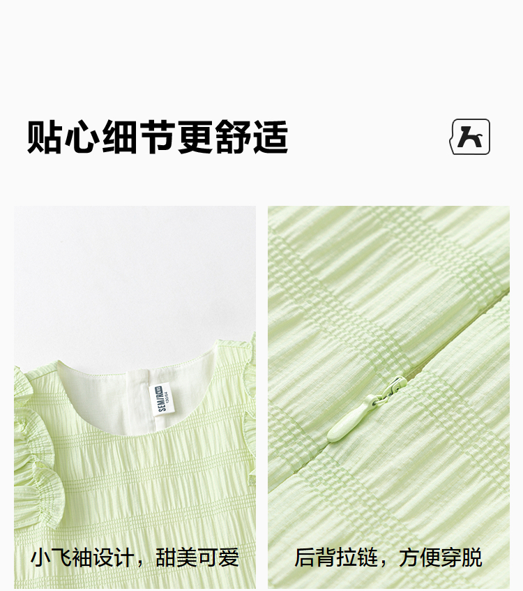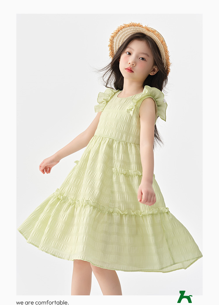 森马儿童连衣裙2025夏季新款雪纺裙女童背心裙小飞袖裙子甜美纯色
