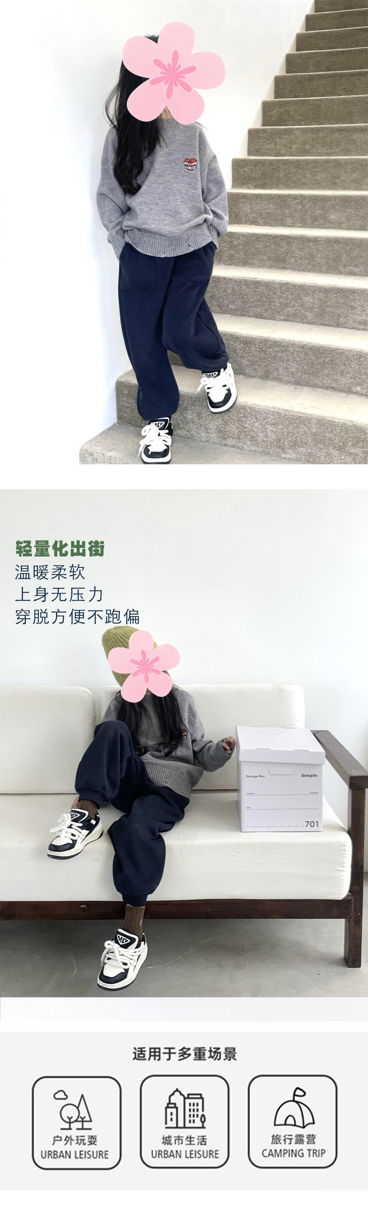 特厚加绒🔥,温暖舒服 宝妈们闭眼入! 这也是一条冬天必入的运动裤 因为它真的是一条超级百搭又实穿的裤子 穿上就不想脱下来呢 休闲宽松版型,运动感十足,很好穿脱 一条可以代替校服裤子的卫裤 很好穿,小朋友一定要拥有