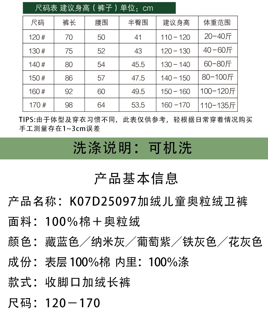 划重点,120-170码,中大童加绒卫裤!!根据尺码表的衣长和建议身高选码!!抢到即赚到!!挑战全网性价比!外套工艺复杂,发货3-7天!